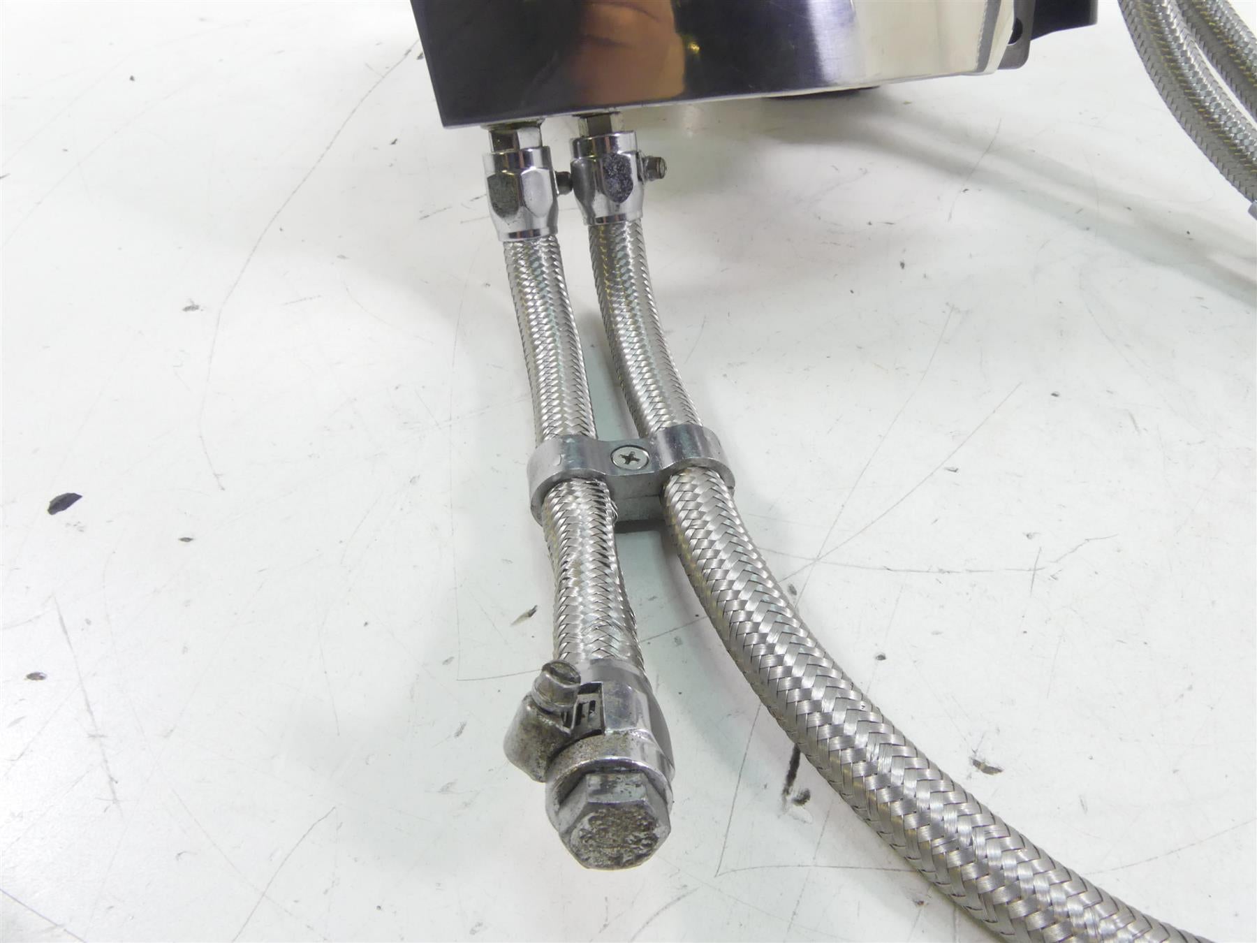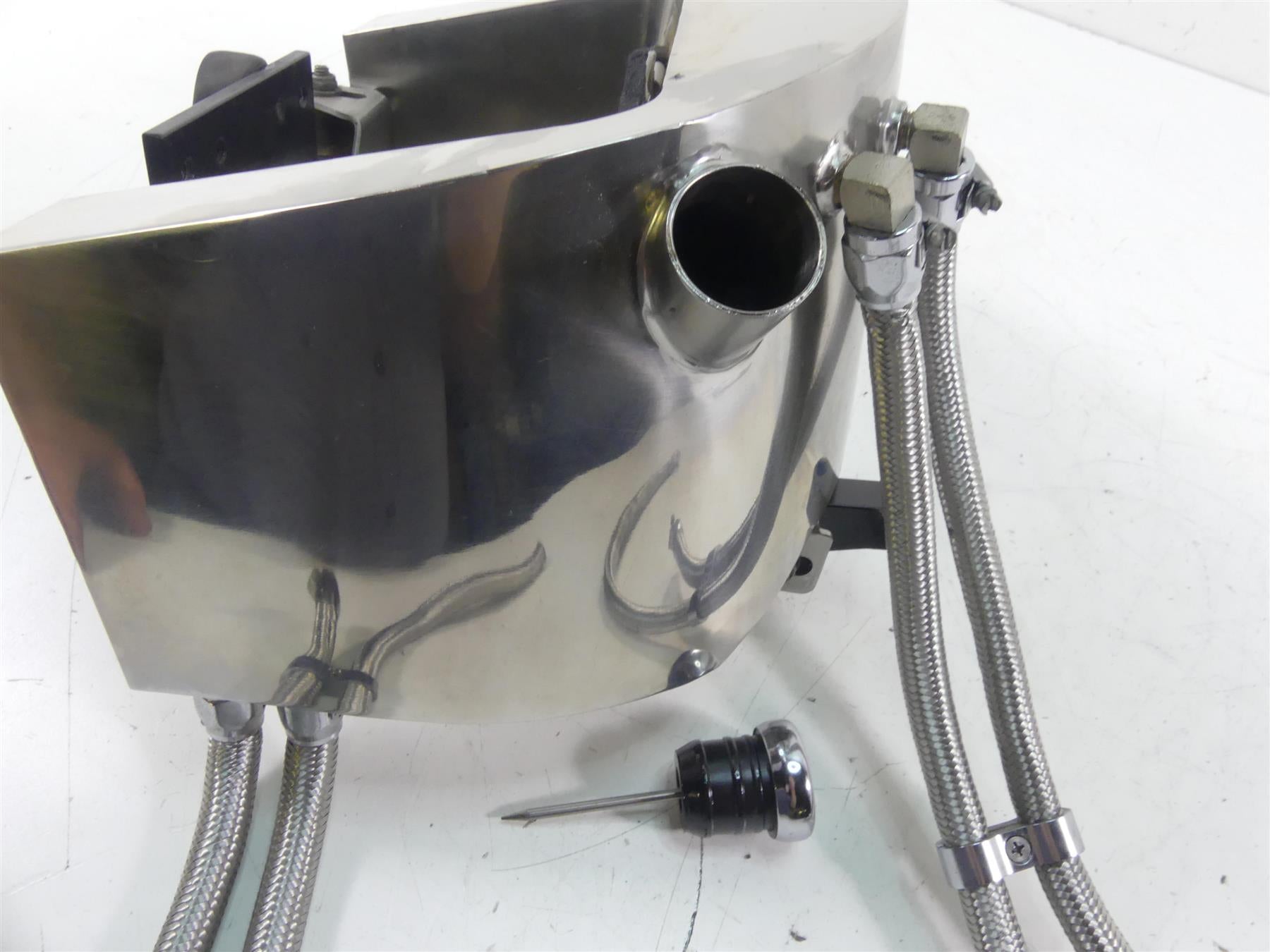 This Polished Stainless Steal Oil Tank & Lines was parted off the described Bike that had 3126 original miles at the time of disassembly.