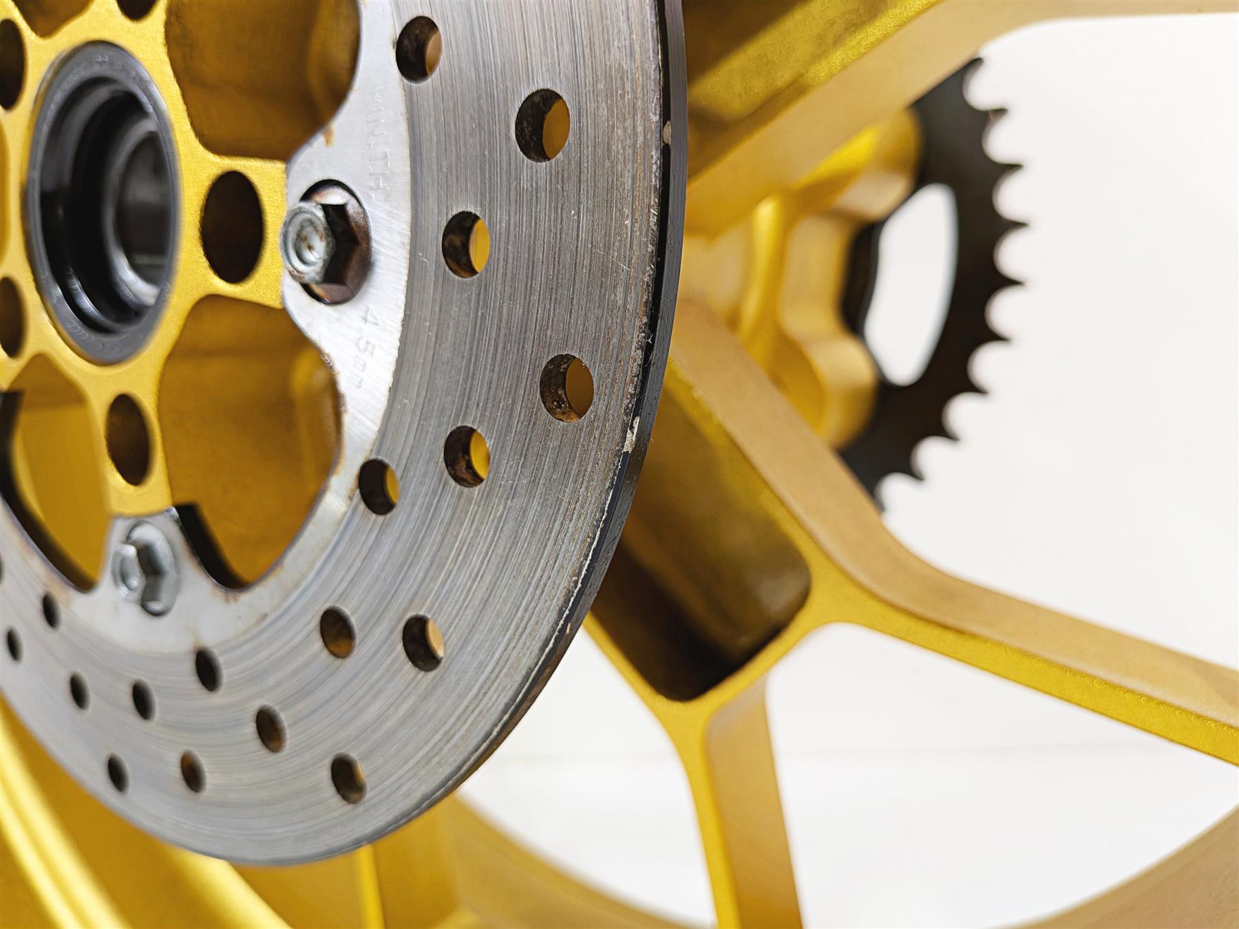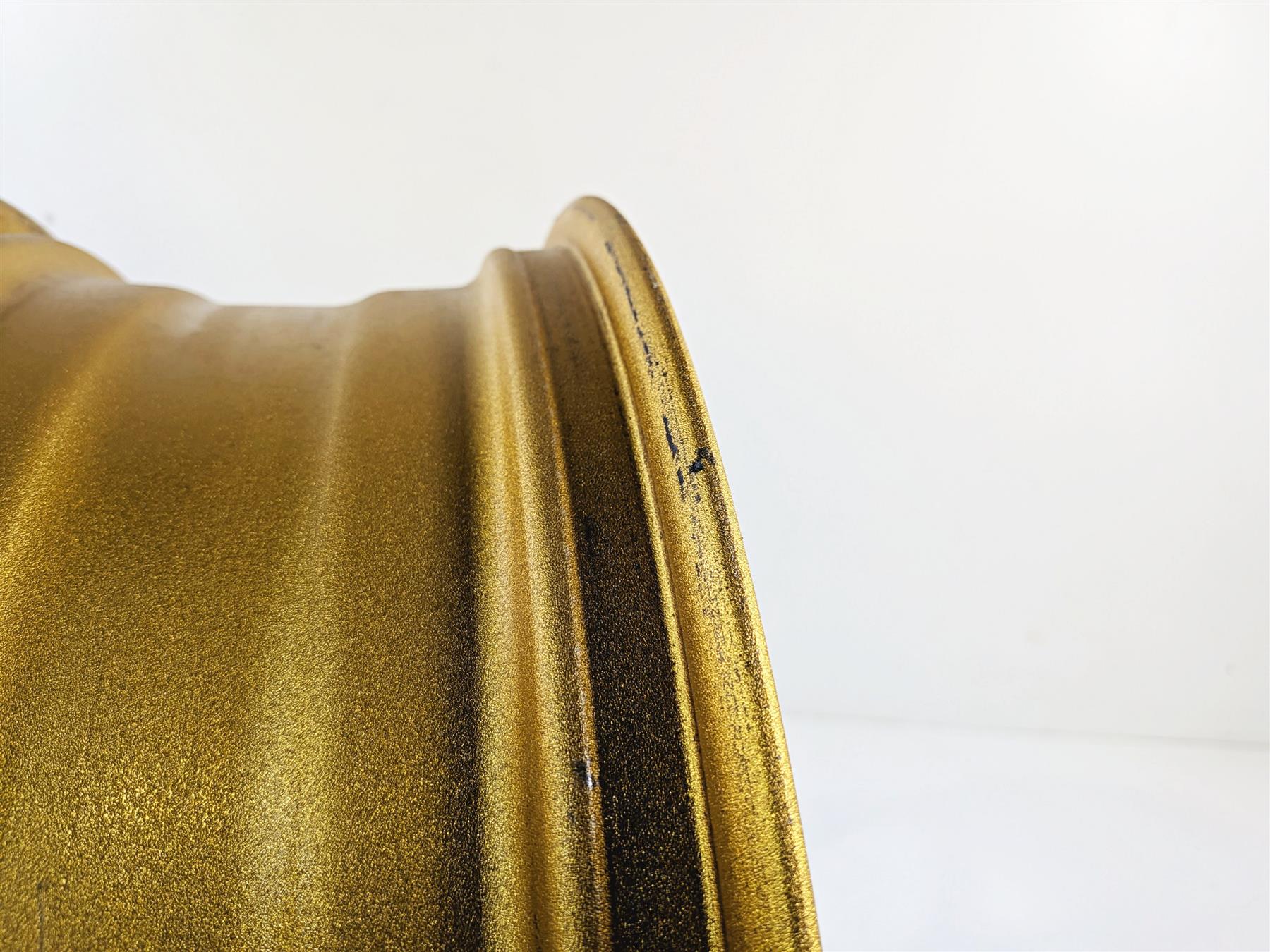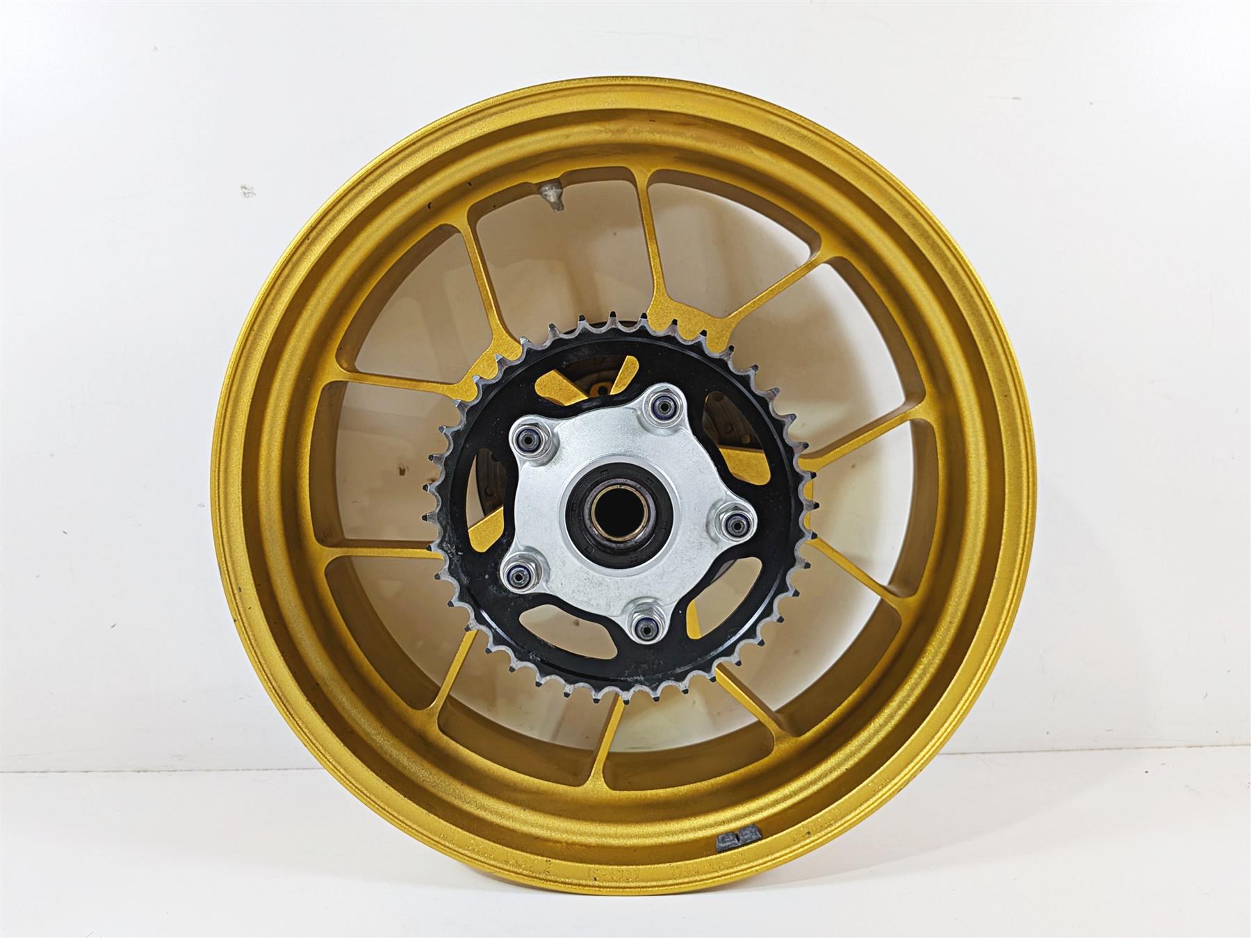 This Rear Wheel Rim 17x6 Gold Evo Forged was parted off the described Bike that had 9581 original miles at the time of disassembly.