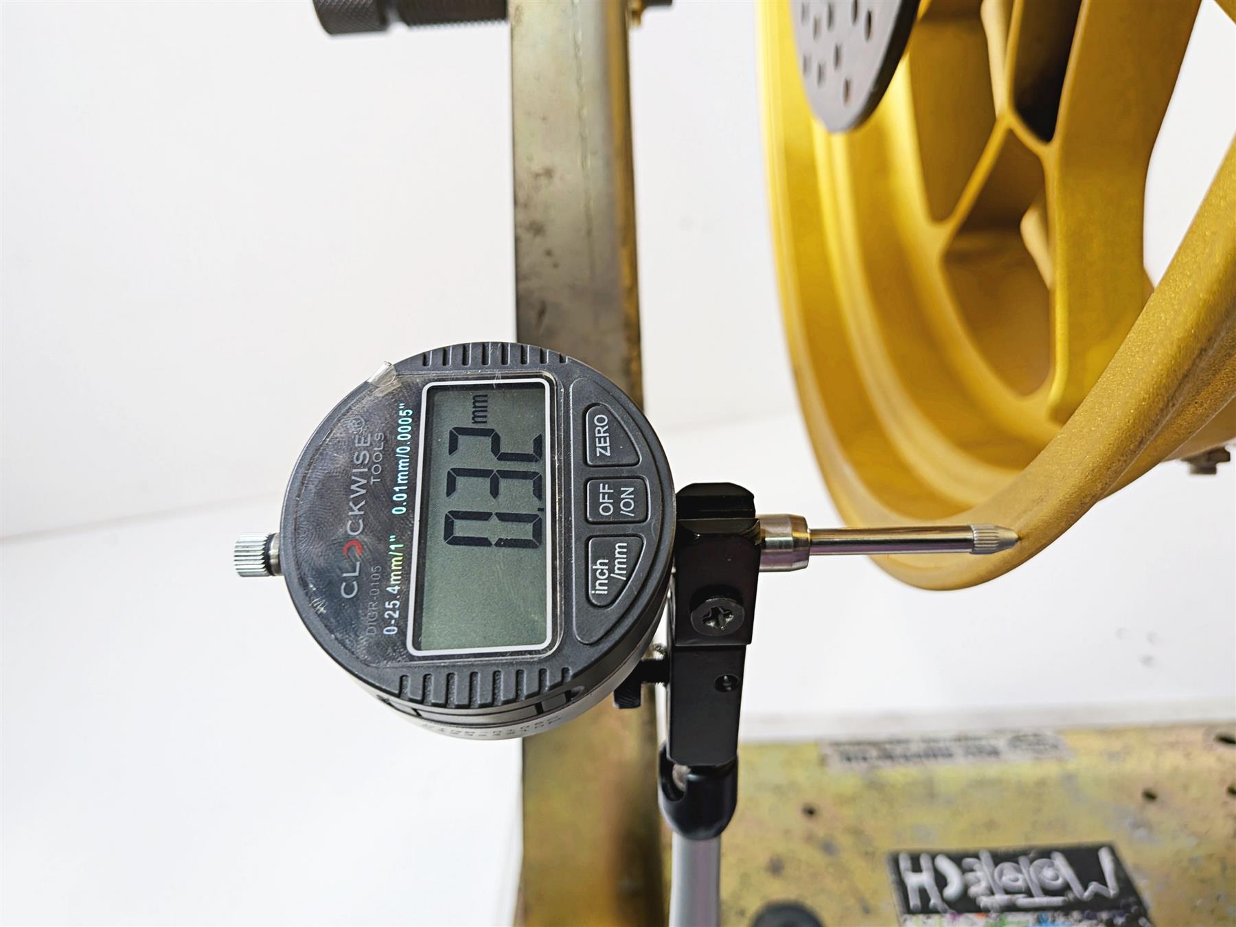 Comments: we consider a .32mm runout as straight. The wheel is in great shape without dents or rash or damage. Just a few paint knicks only