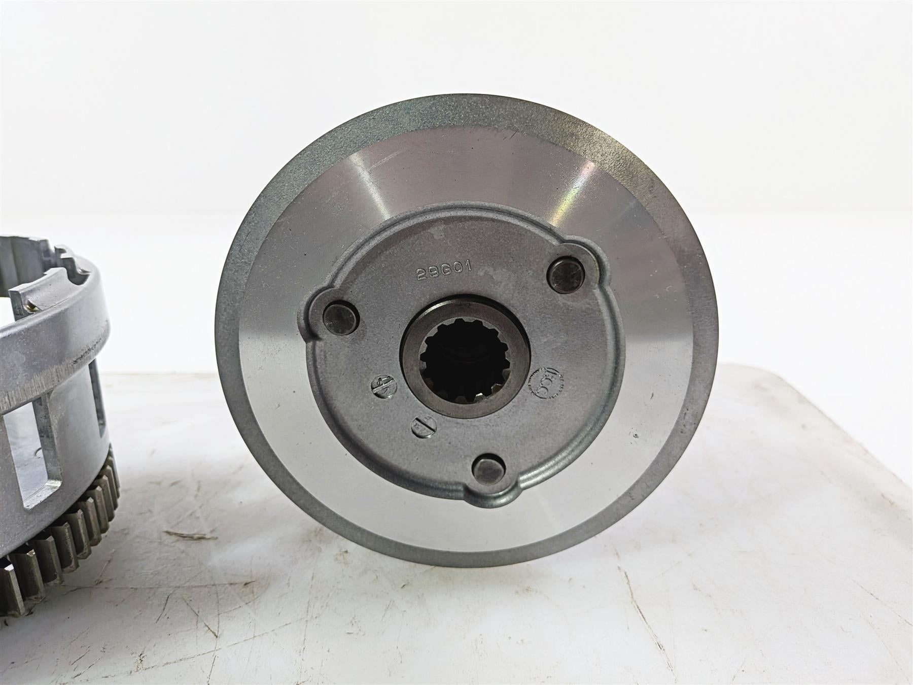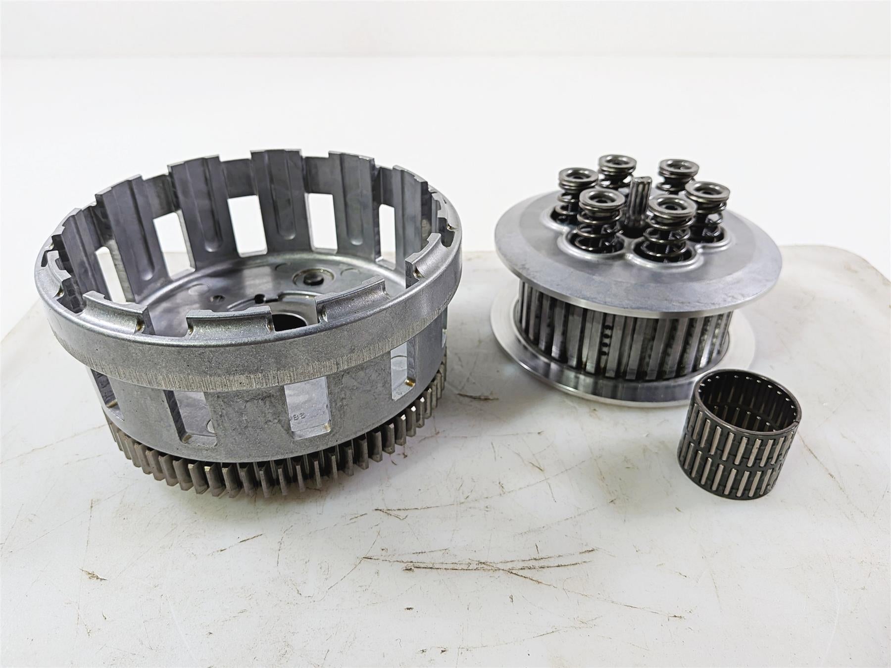 All pictures are of the actual used Clutch Basket & Pressure Plate With Springs you will receive. Every part is carefully inspected. Any significant damage or heavy wear is clearly shown in the photos.