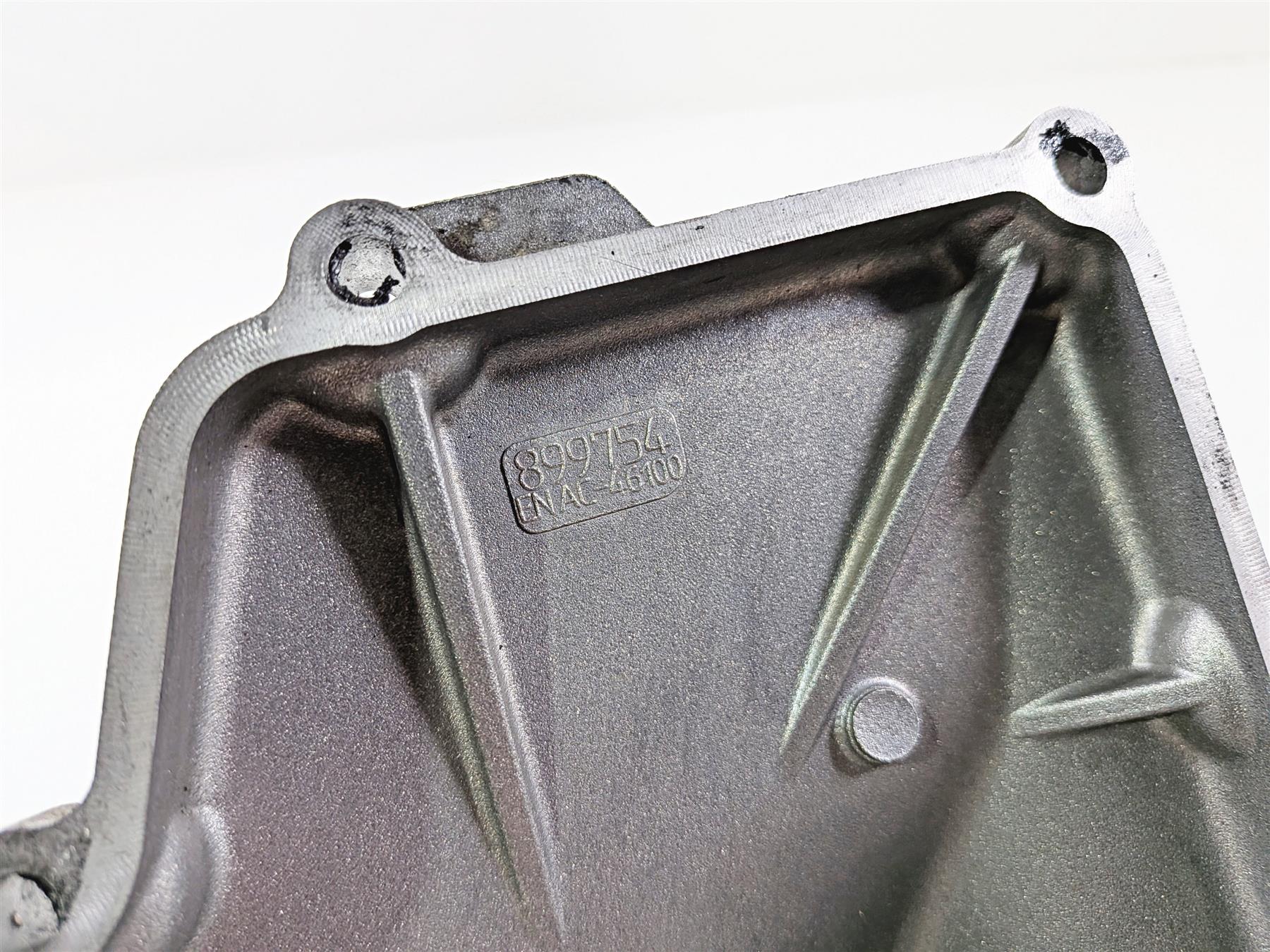 This used Engine Bottom Cover Oil Pan was removed from a 2014 Aprilia RSV4 RR Racing Factory with 14179 original miles at disassembly.