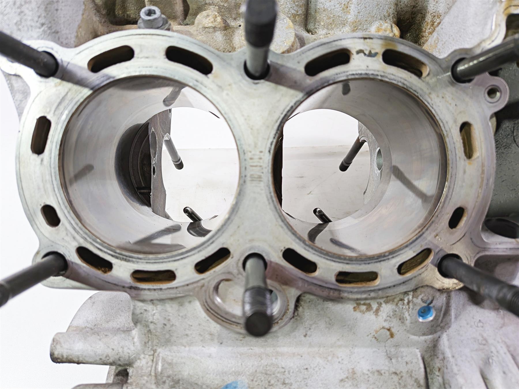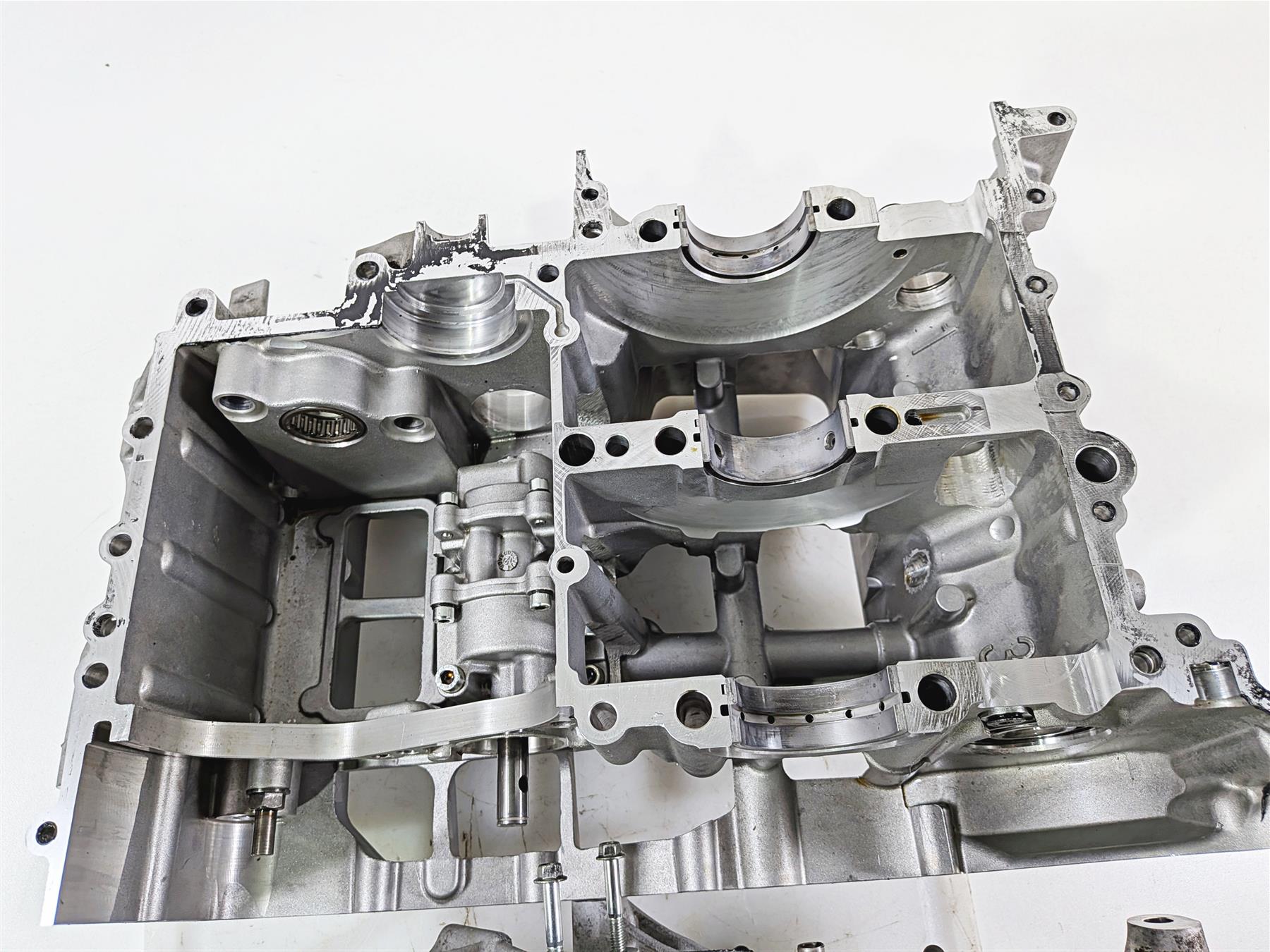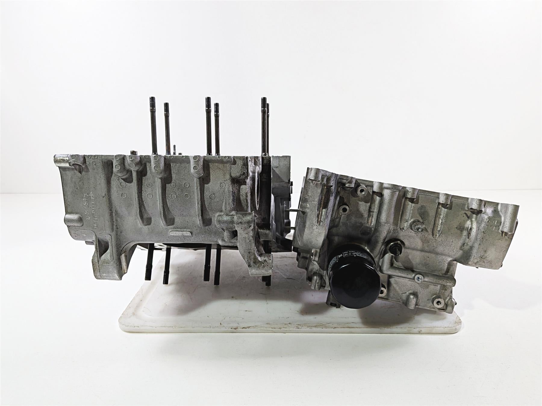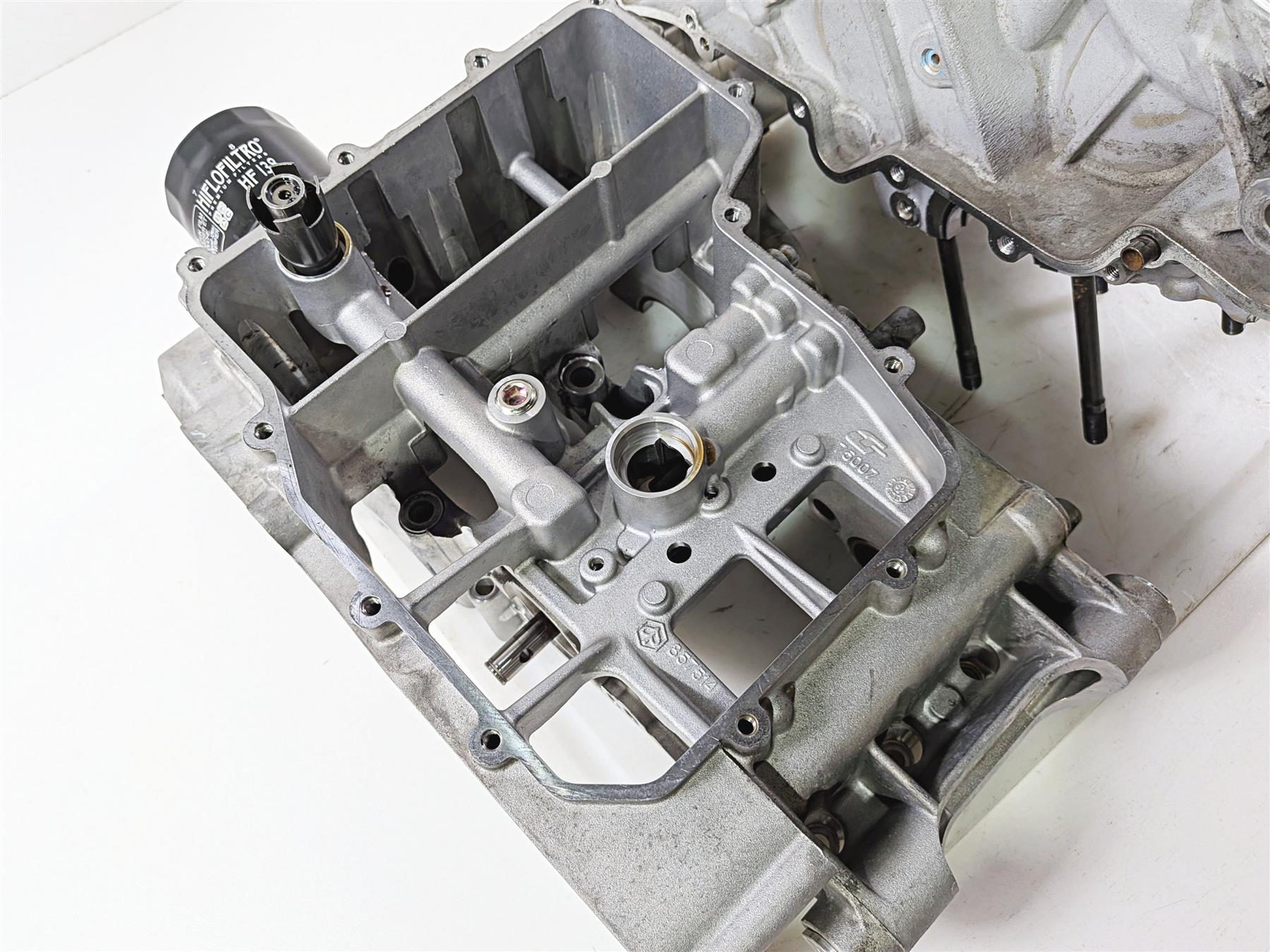 This used Engine Crankcase Crank Case Jug Set was removed from a 2014 Aprilia RSV4 RR Racing Factory with 14179 original miles at disassembly.