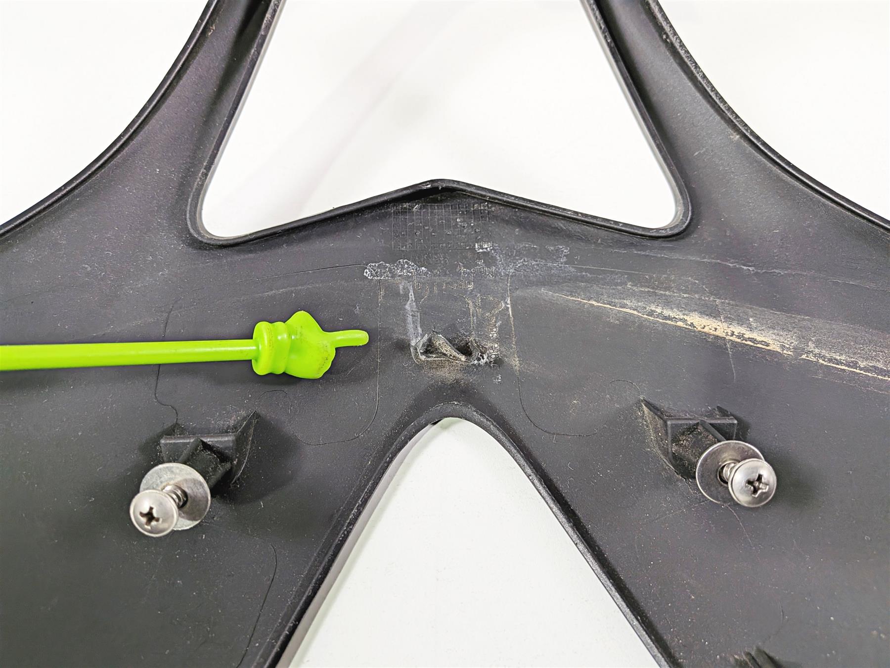 Comments: has a couple of scratches. No rash . The inner front center tab is bent. It will still mount in place fine