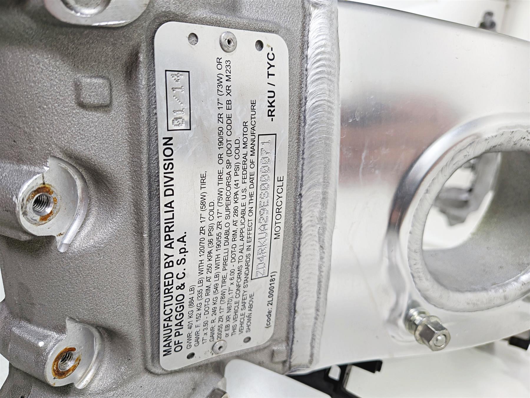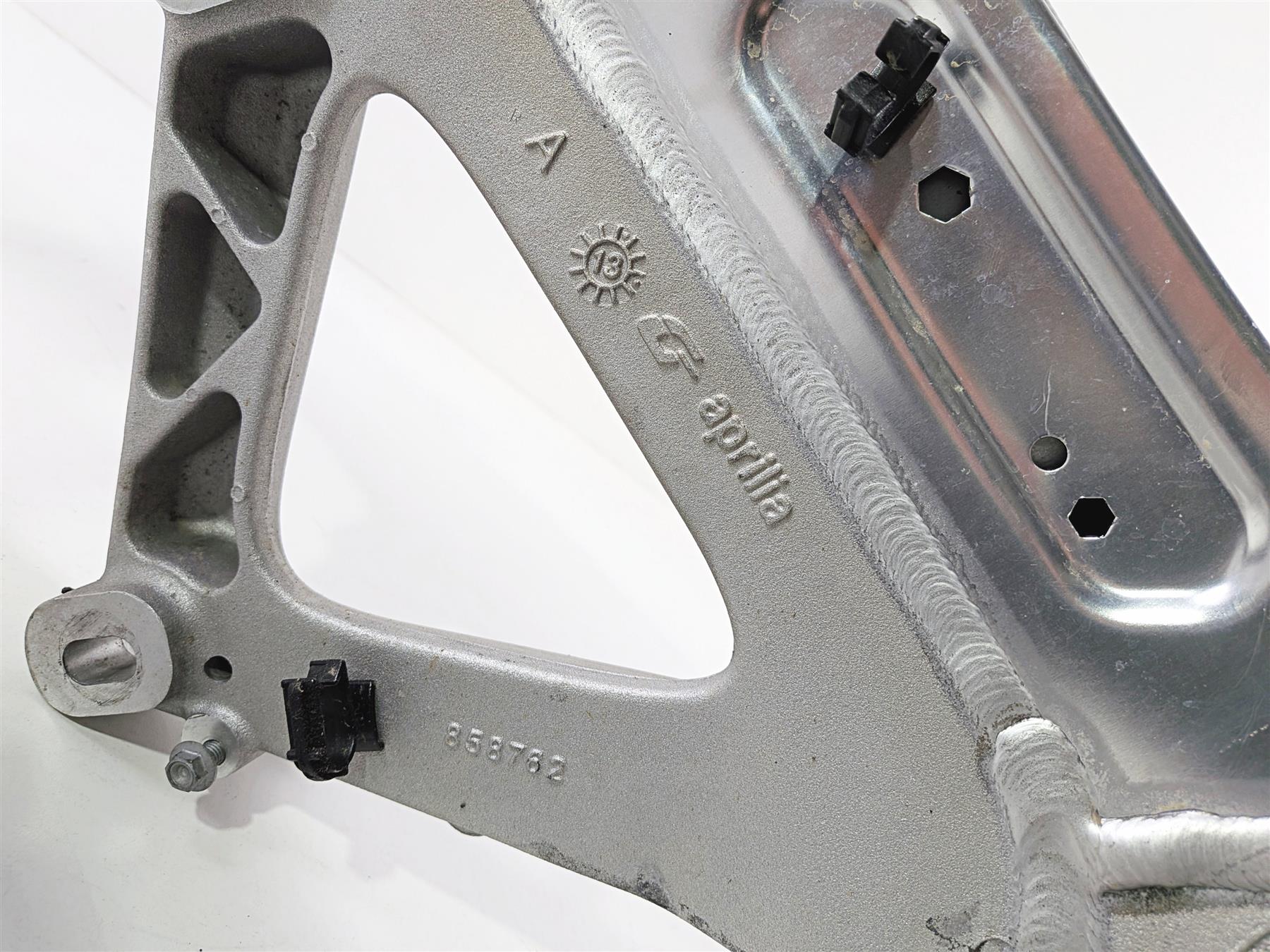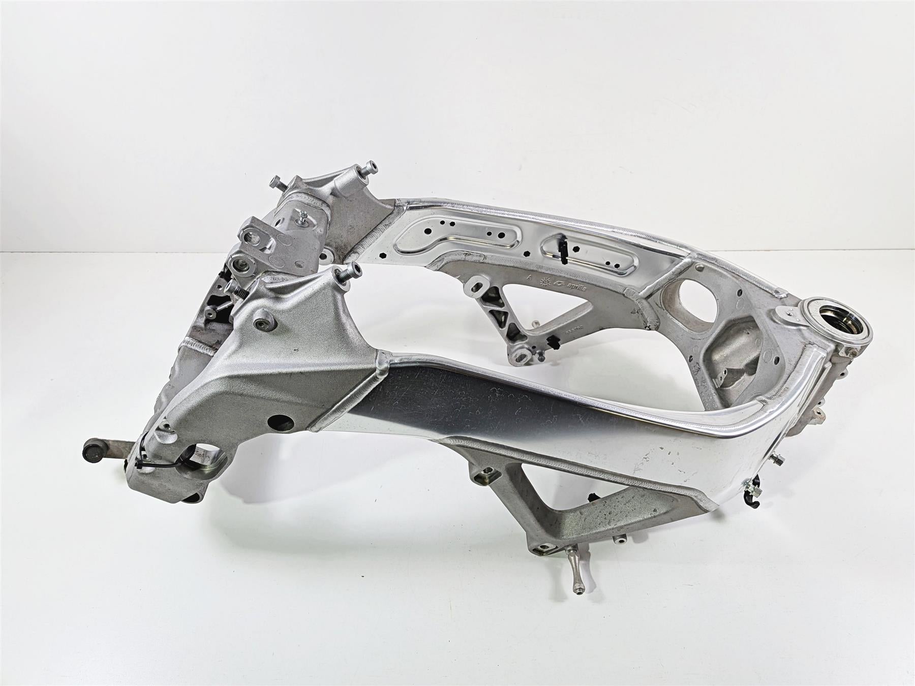 This used Straight Main Frame Chassis was removed from a 2014 Aprilia RSV4 RR Racing Factory with 14179 original miles at disassembly.