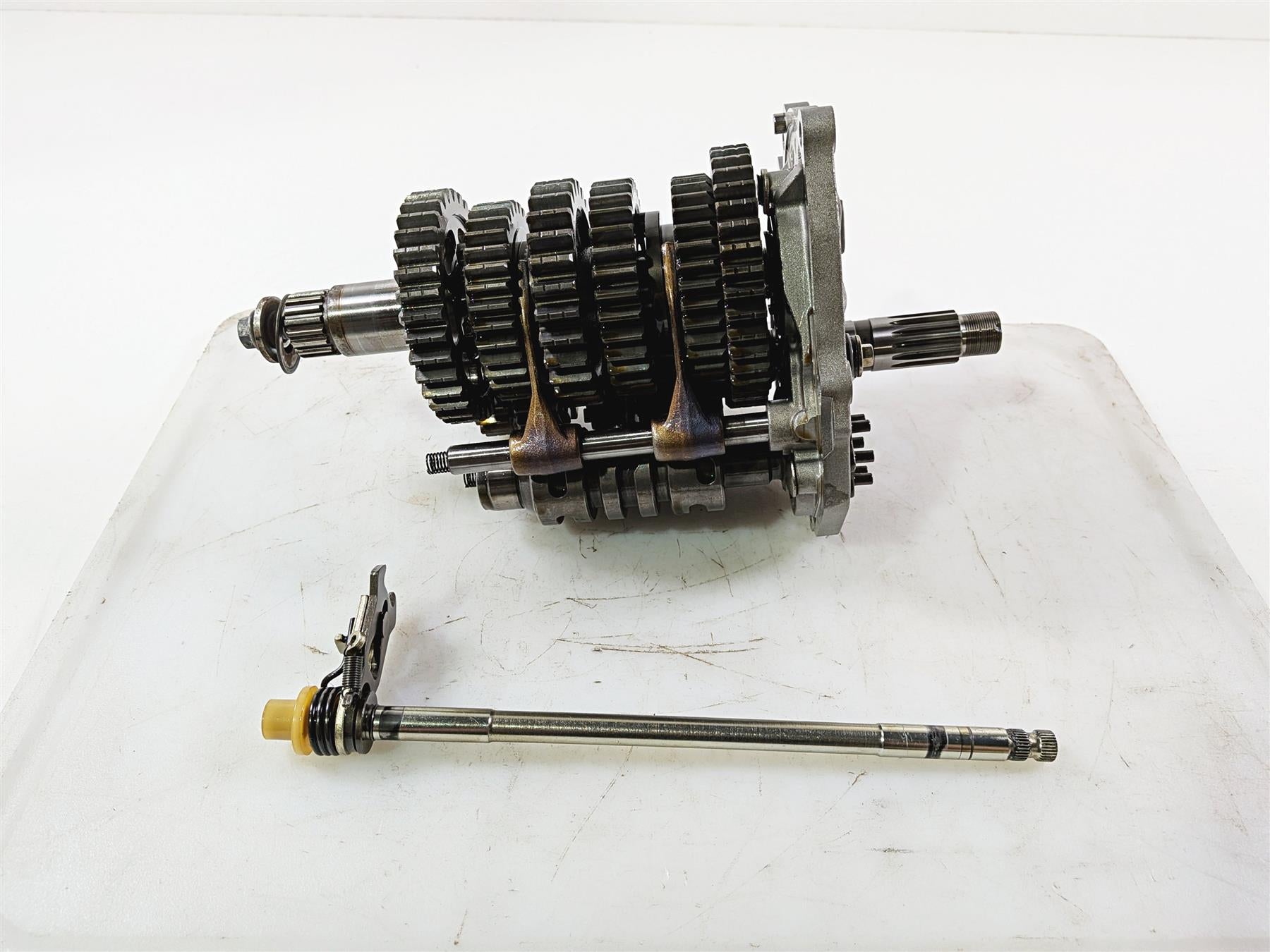 All pictures are of the actual used Transmission Gear Pack Shift Drum -Tested you will receive. Every part is carefully inspected. Any significant damage or heavy wear is clearly shown in the photos.
