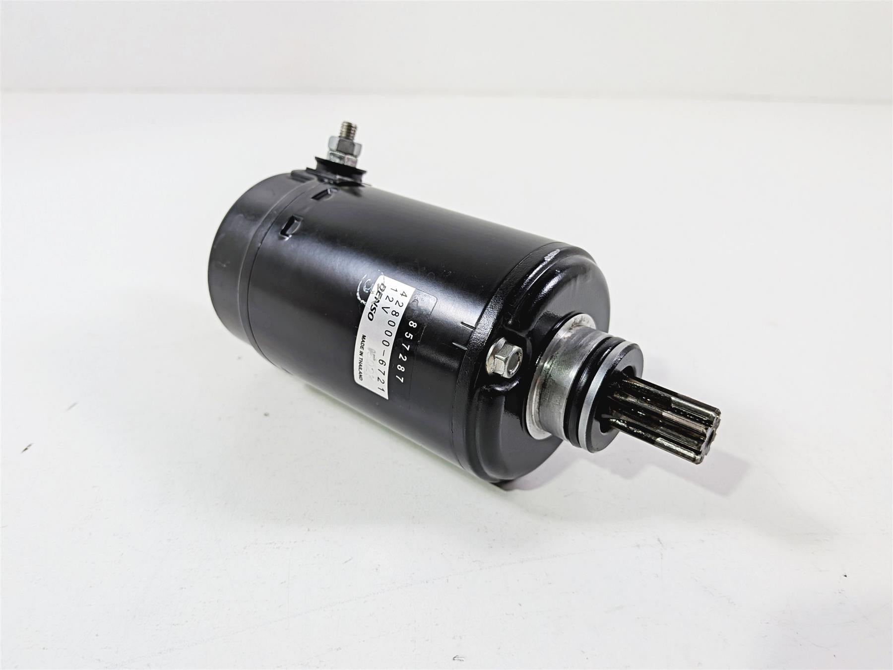 This used Denso Engine Starter Motor was removed from a 2014 Aprilia RSV4 RR Racing Factory with 14179 original miles at disassembly.