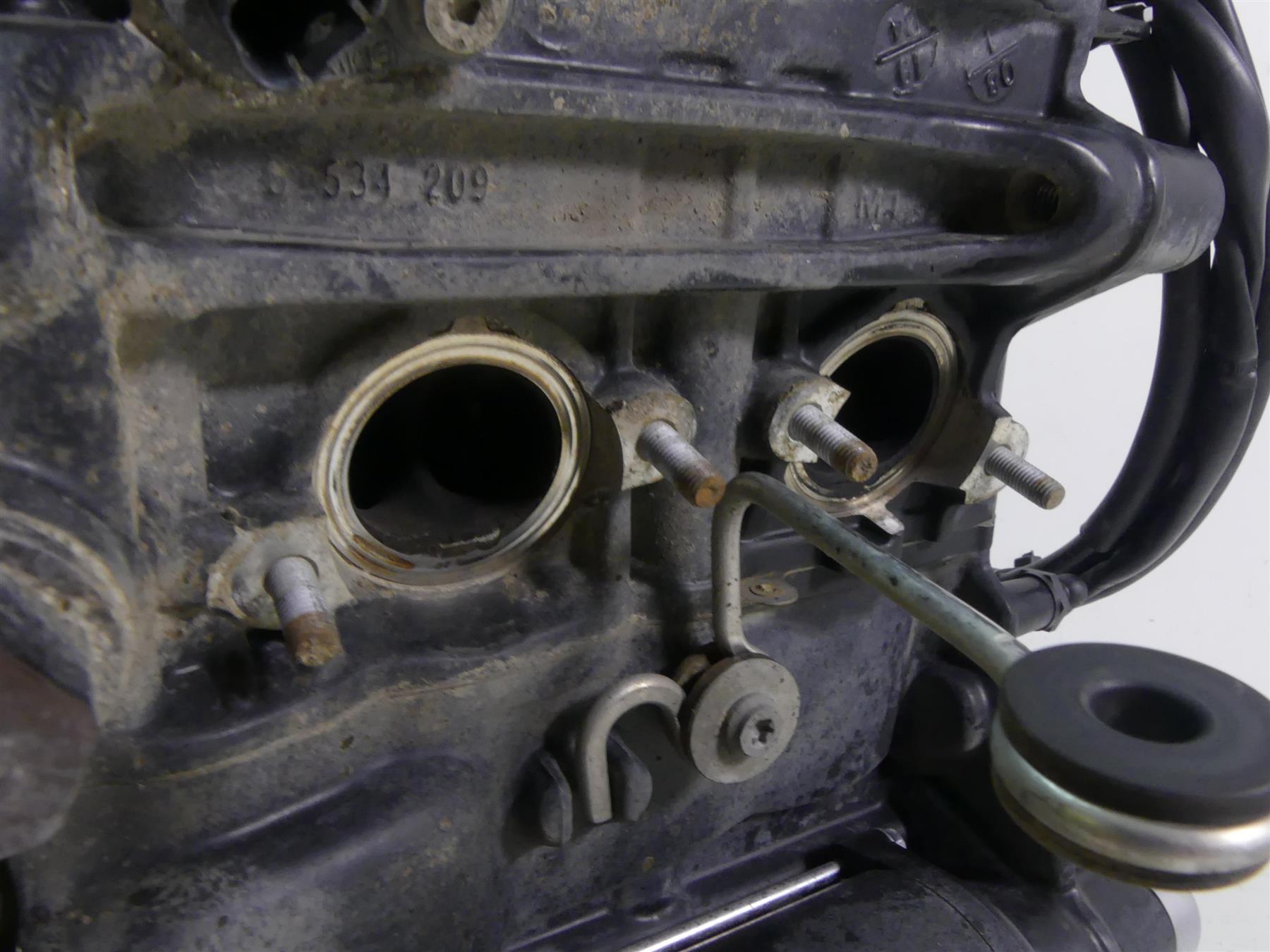 Comments: This motor runs good without problems. Shows good compression on both cylinders as well. Transmission shifts normal through all gears. It does show some scruffs and scratches but no cracks or case damage.