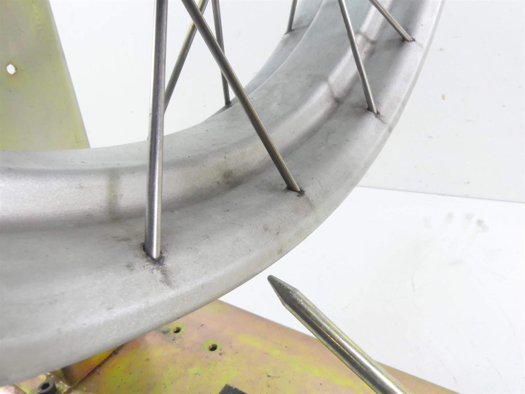 This Straight Front Spoke Wheel Rim 19x3 was parted off the described Bike that had 62936 original miles at the time of disassembly.