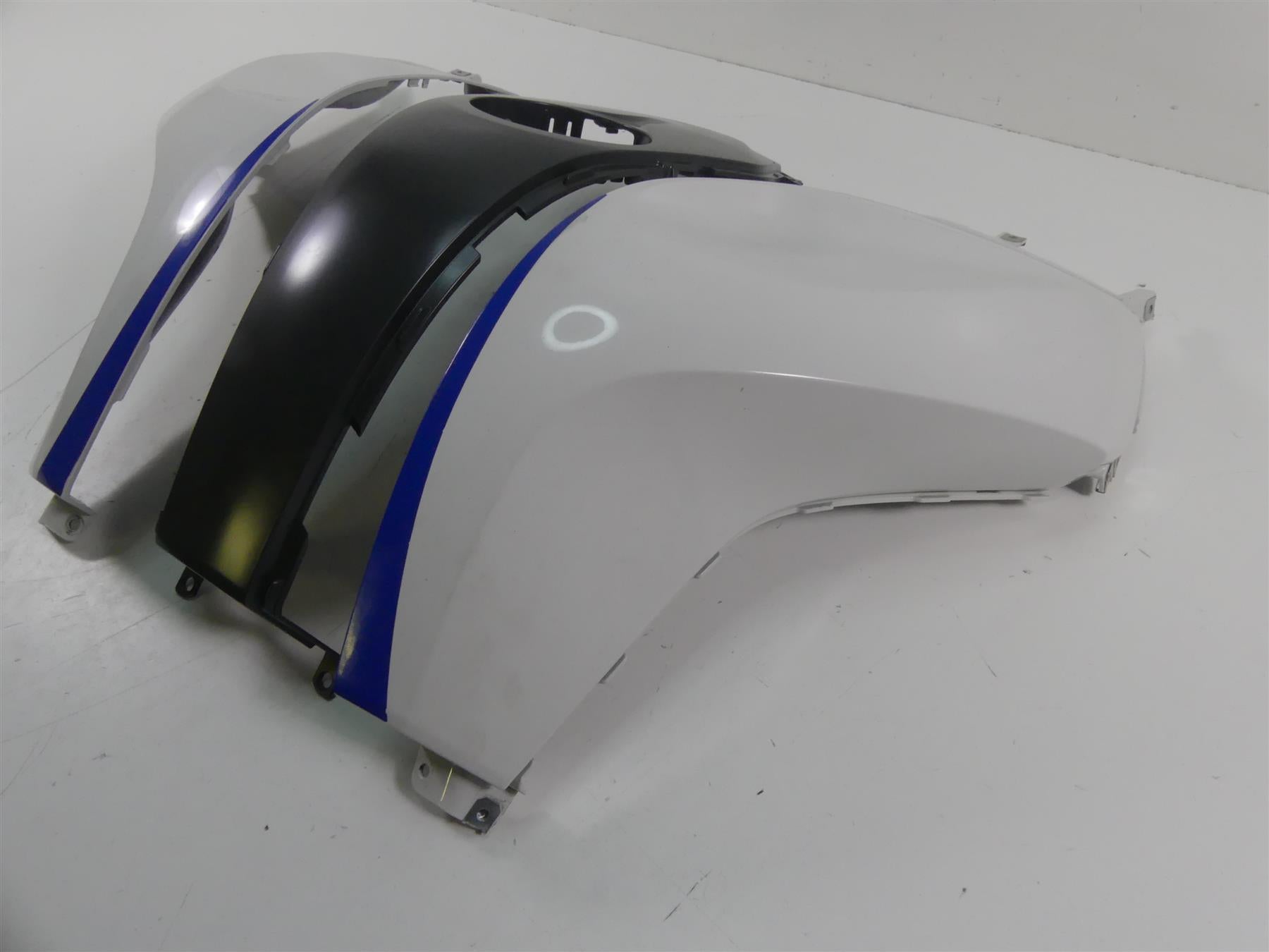 This Left Right Tank Cover Fairing Set Alpinweiss was parted off the described Bike that had 25854 original miles at the time of disassembly.