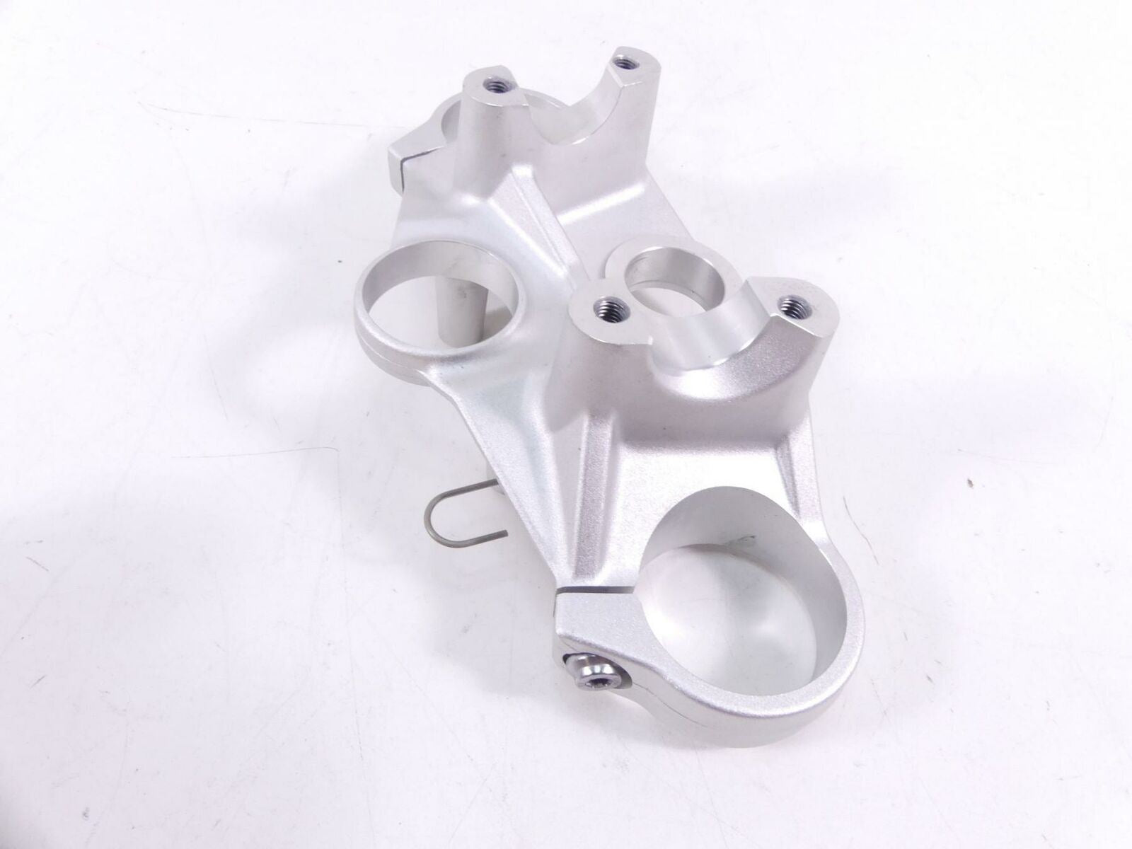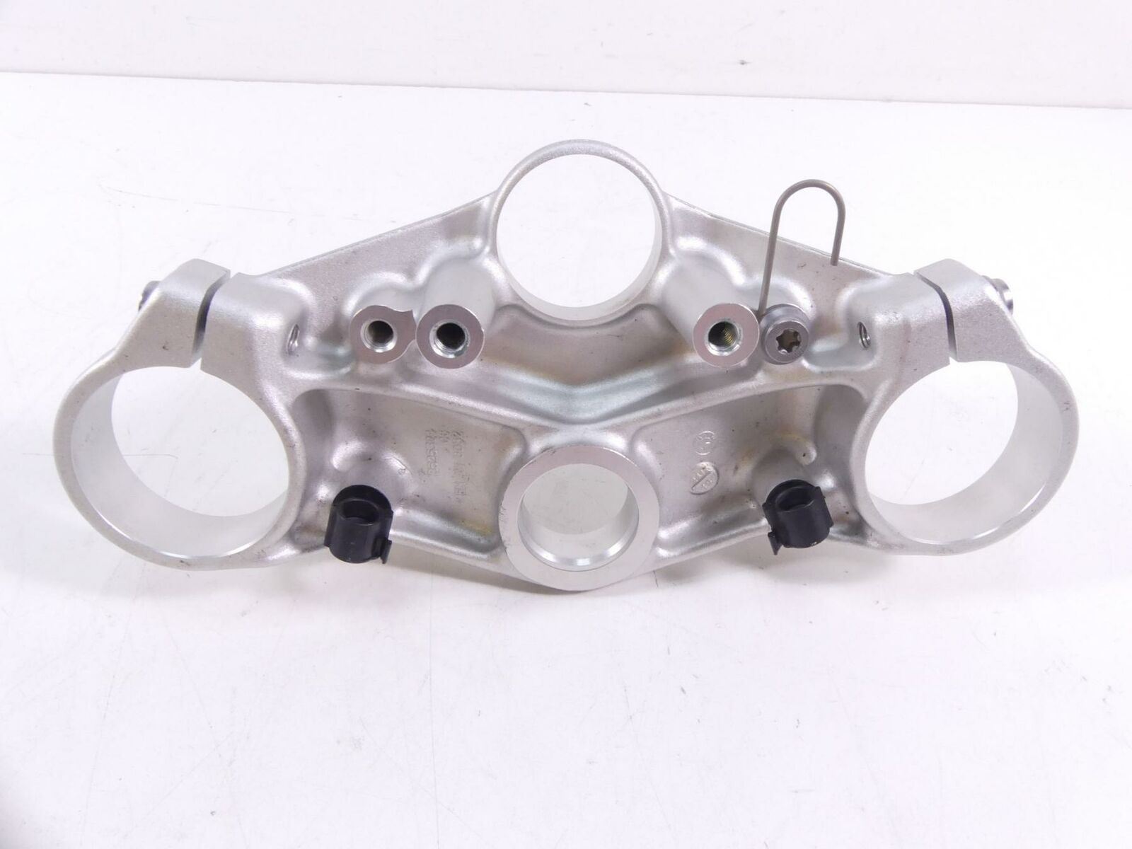 This Upper Triple Tree Steering Clamp 55mm was parted off the described vehicle that had 21182 original miles at the time of disassembly.