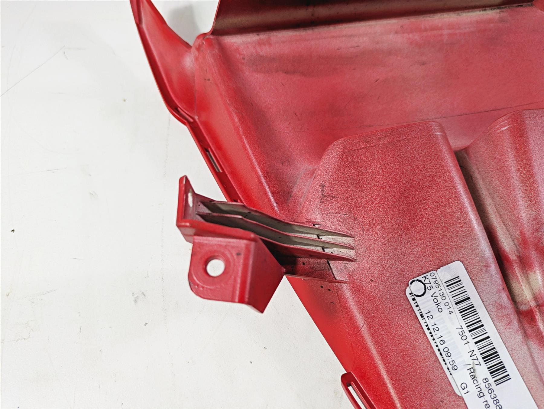 This Upper Front Fender Racing Red was parted off the described Bike that had 30106 original miles at the time of disassembly.