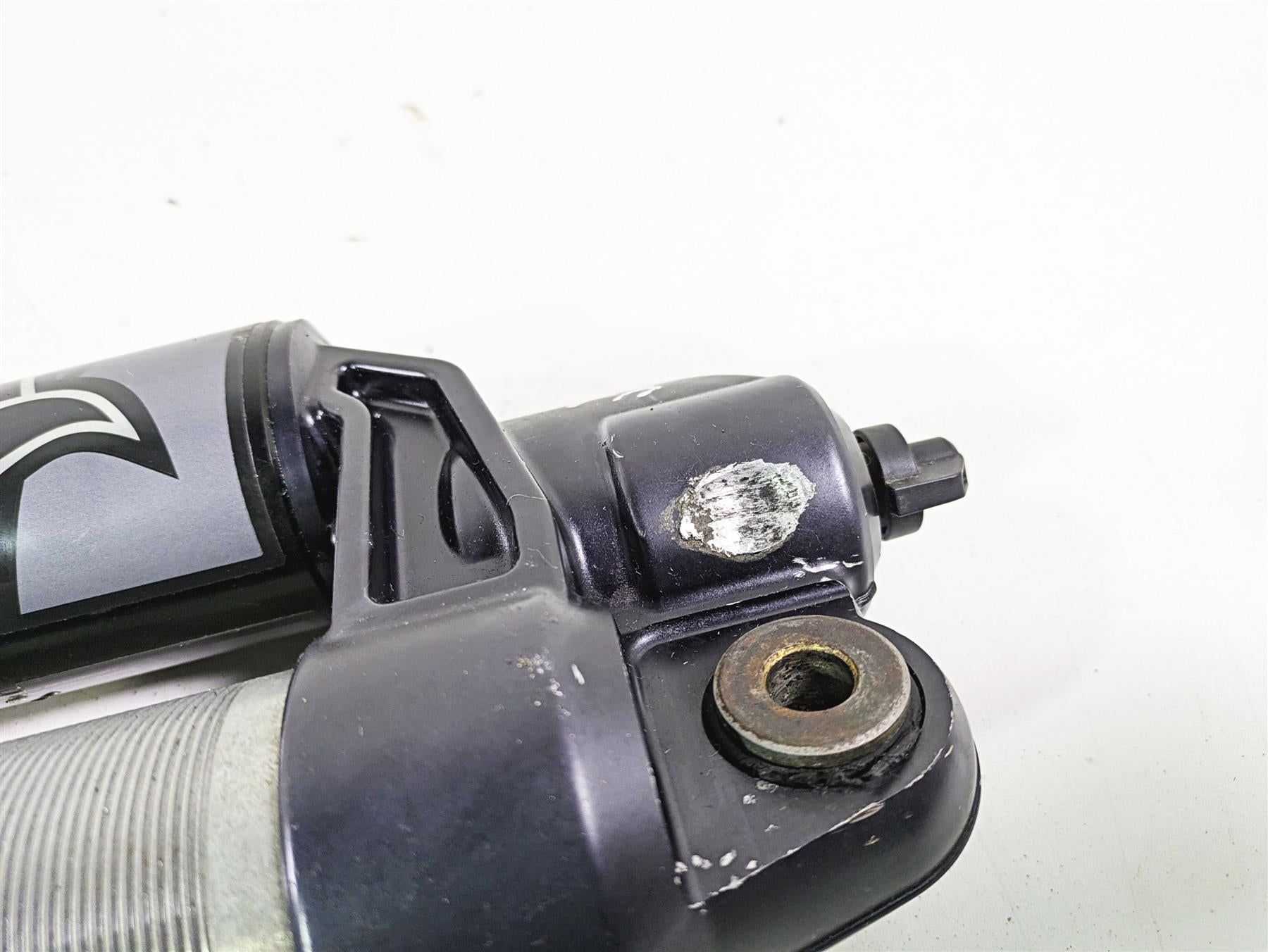 Comments: This shock is straight and does not leak. The travel area shows no heavy wear. Shows surface rust. Shows rub mark at top.