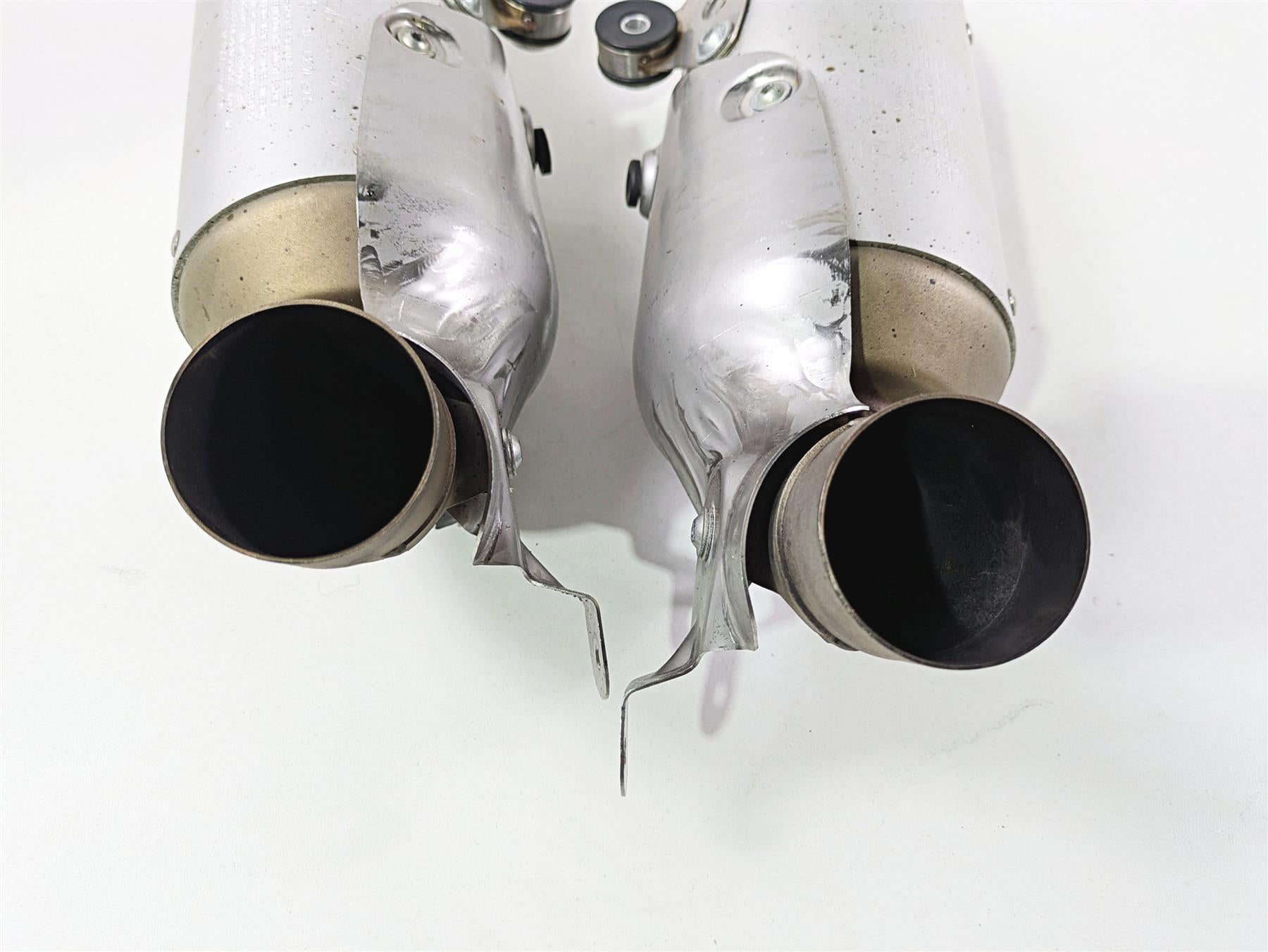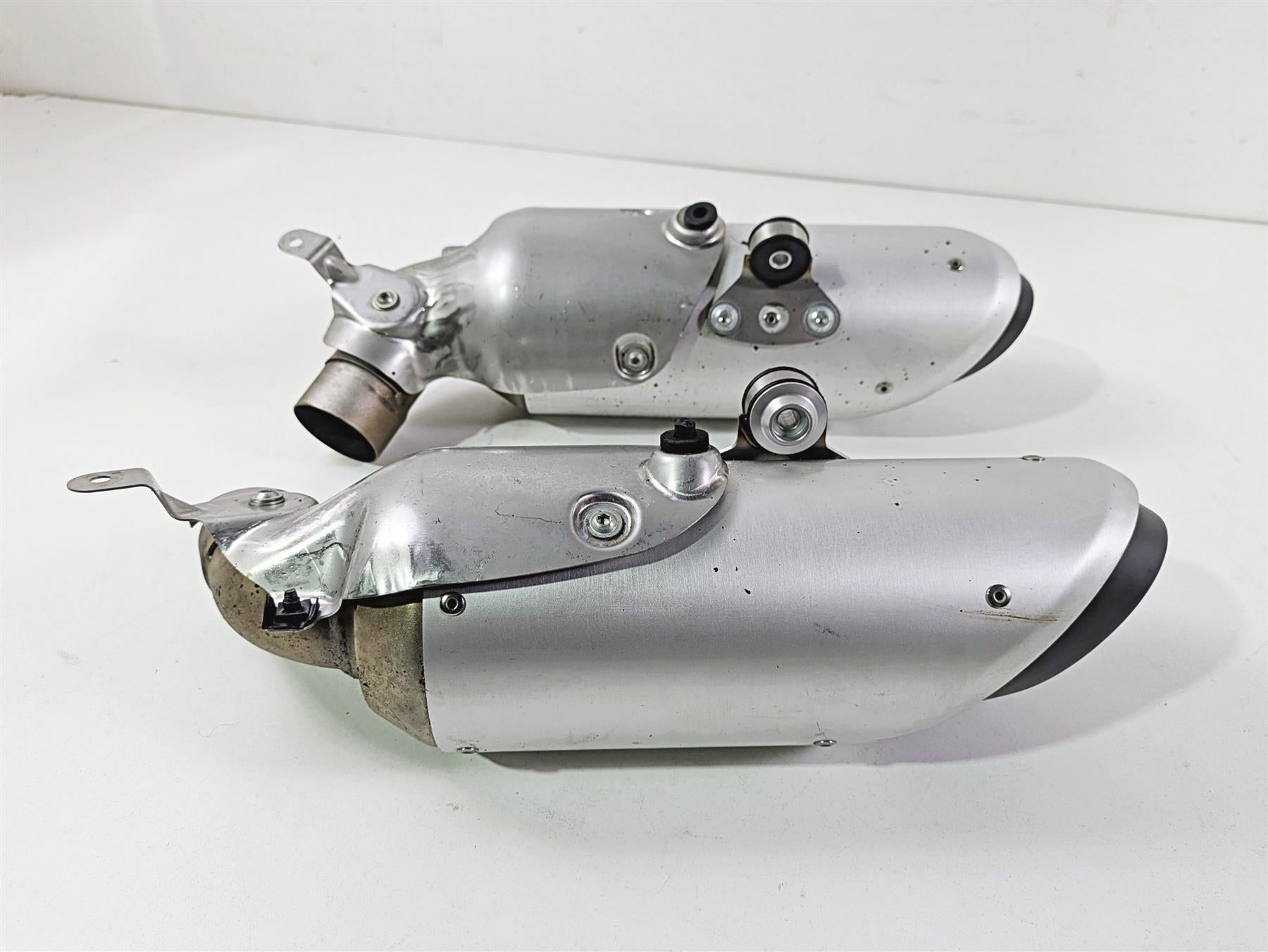 This Exhaust Muffler Silencer Set was parted off the described Bike that had 4336 original miles at the time of disassembly.