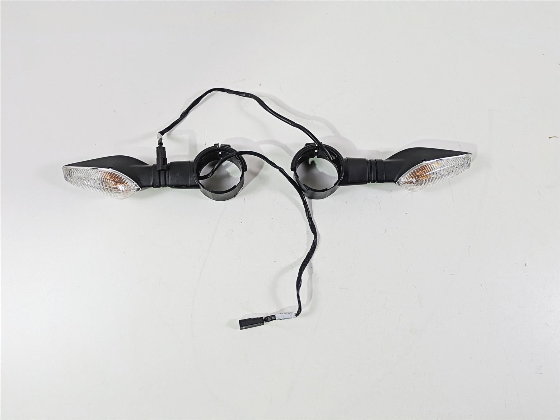 This Front Blinker Turn Signals & Clamps Set was parted off the described Bike that had 4700 original miles at the time of disassembly.