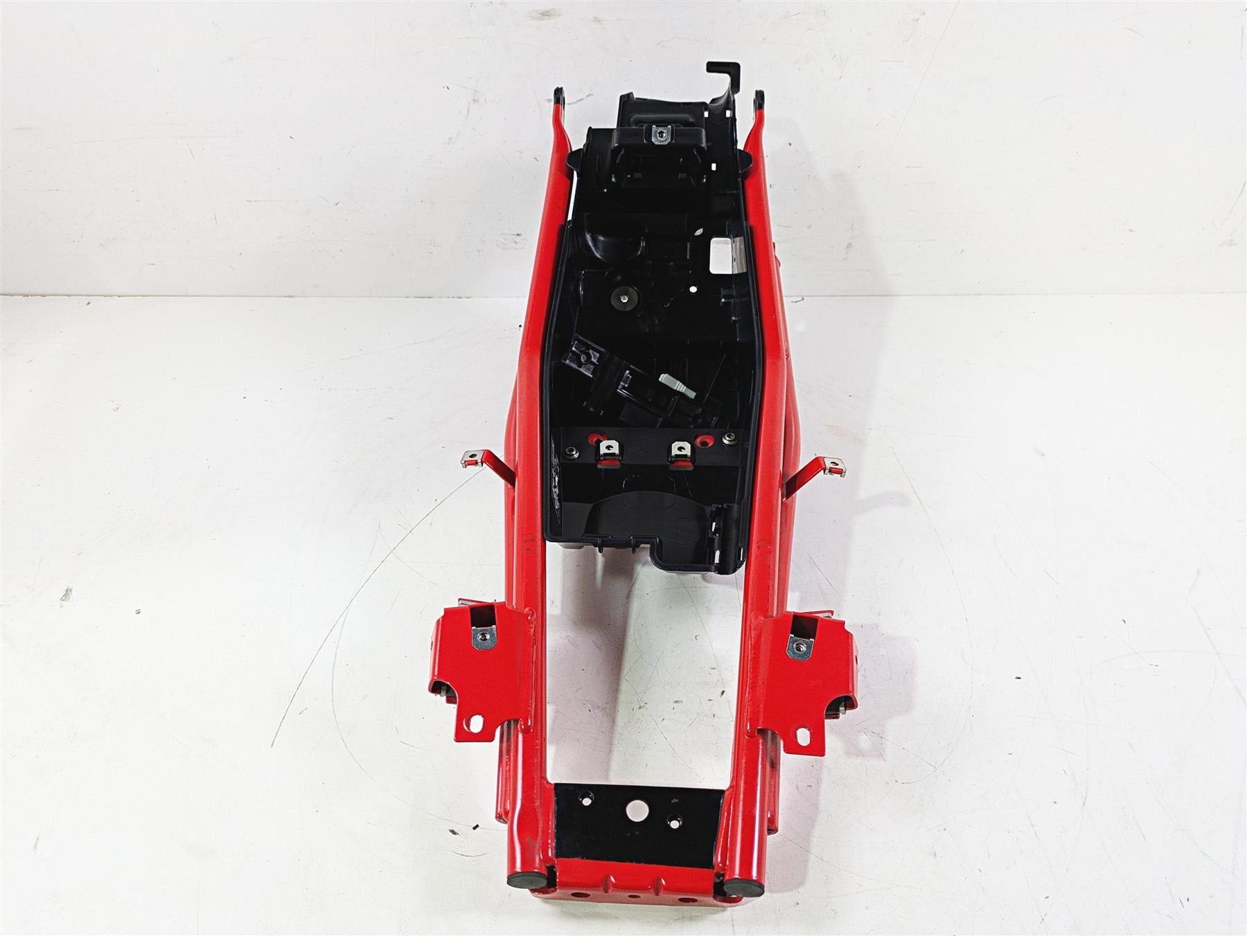 This Red Straight Rear Subframe & Inner Fender was parted off the described Bike that had 4607 original miles at the time of disassembly.
