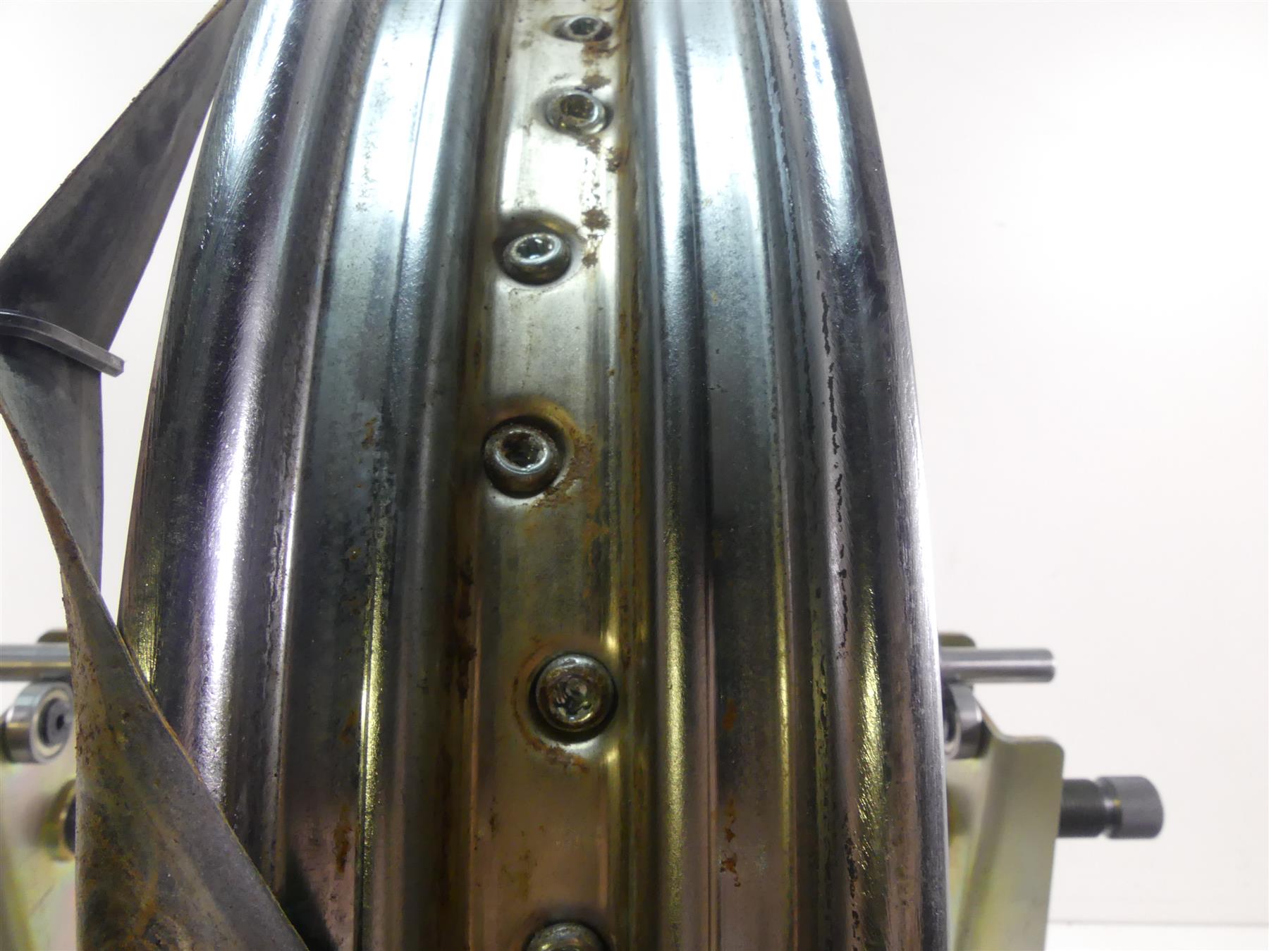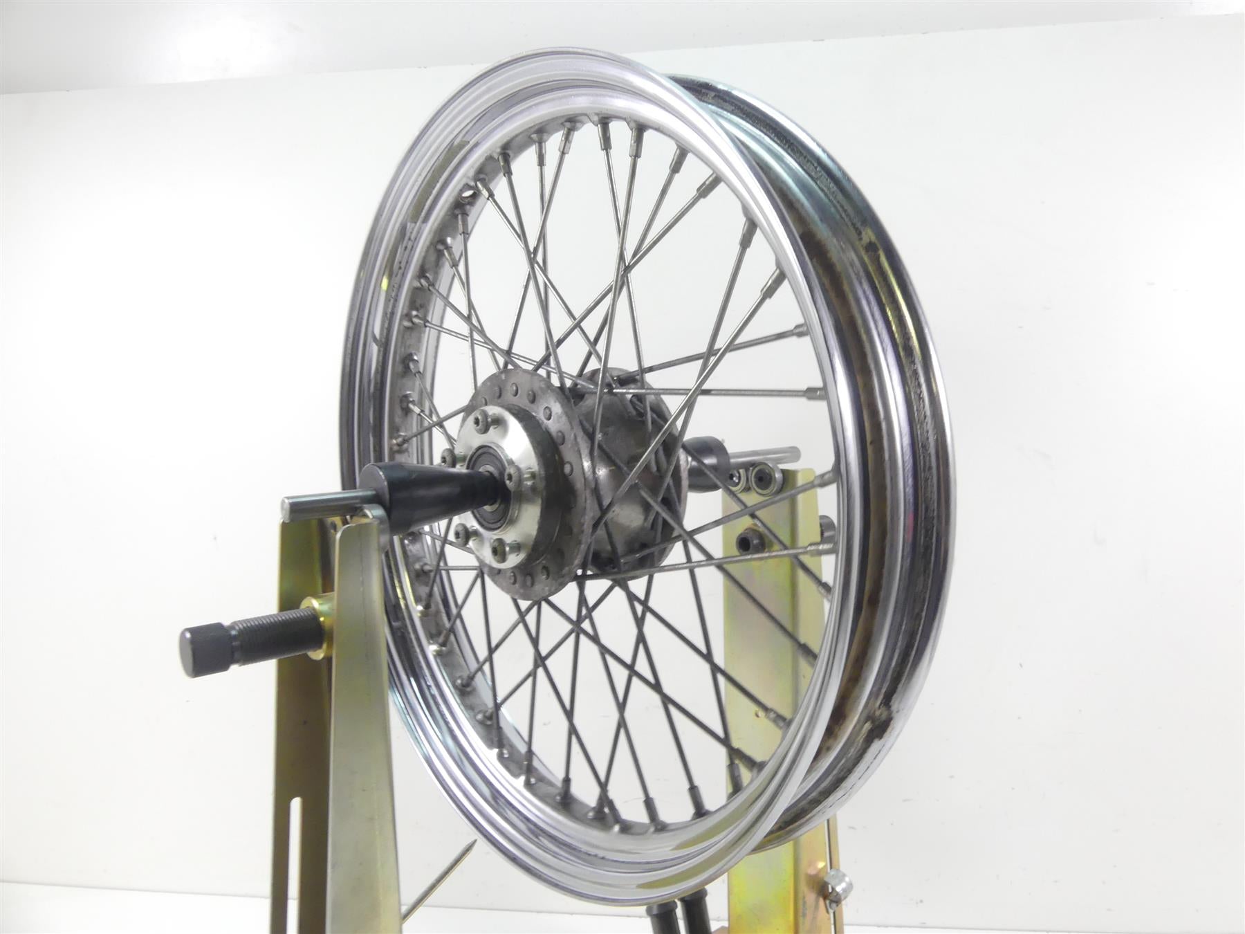 This Front Chrome Wheel Rim 19x2.5 was parted off the described Bike that had unknown original miles at the time of disassembly.