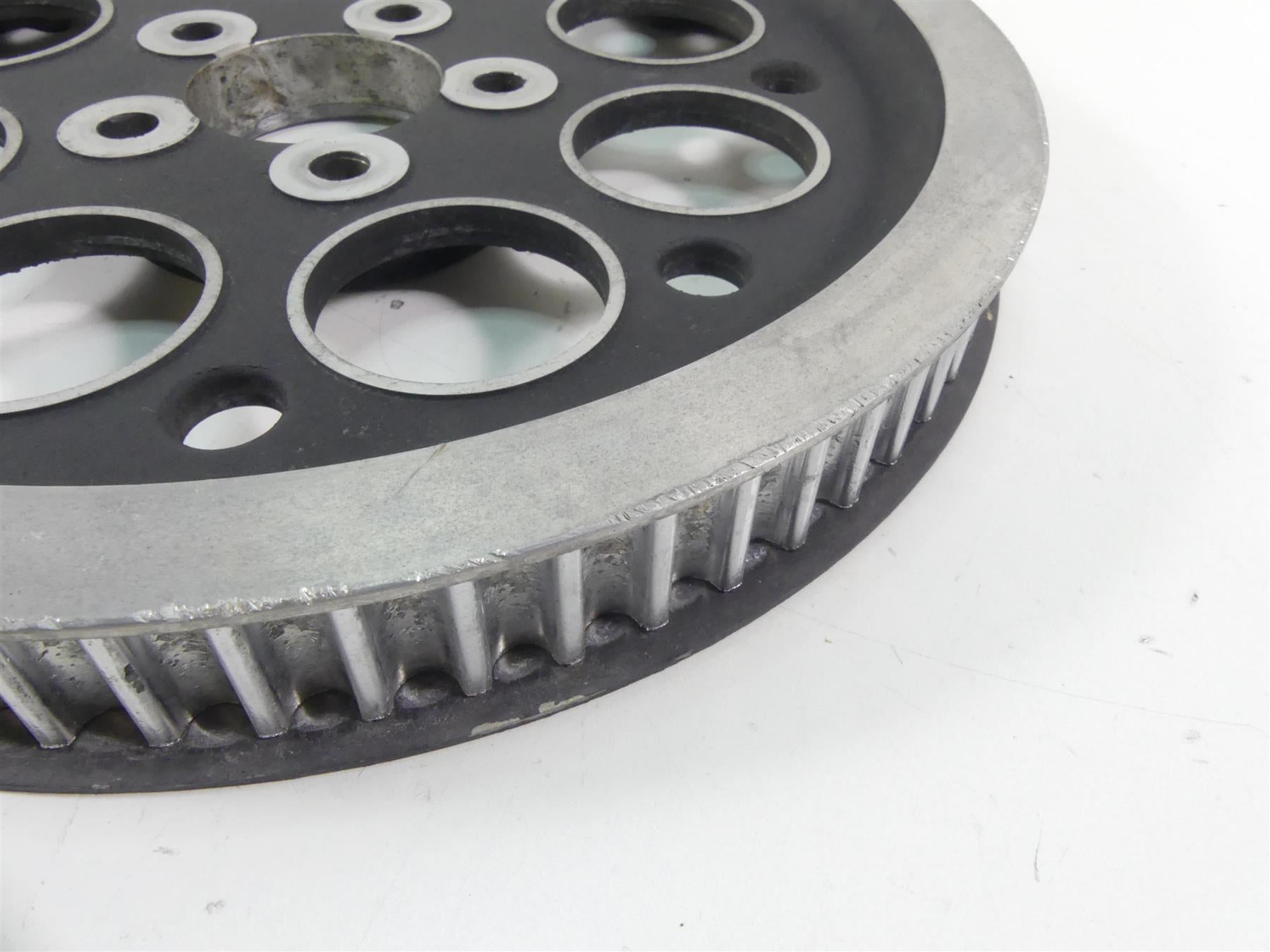 This Rear Drive Belt Pulley 70T 1 1/8" was parted off the described Bike that had 18378 original miles at the time of disassembly.
