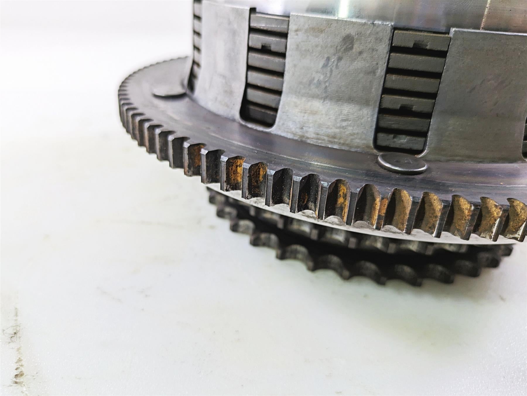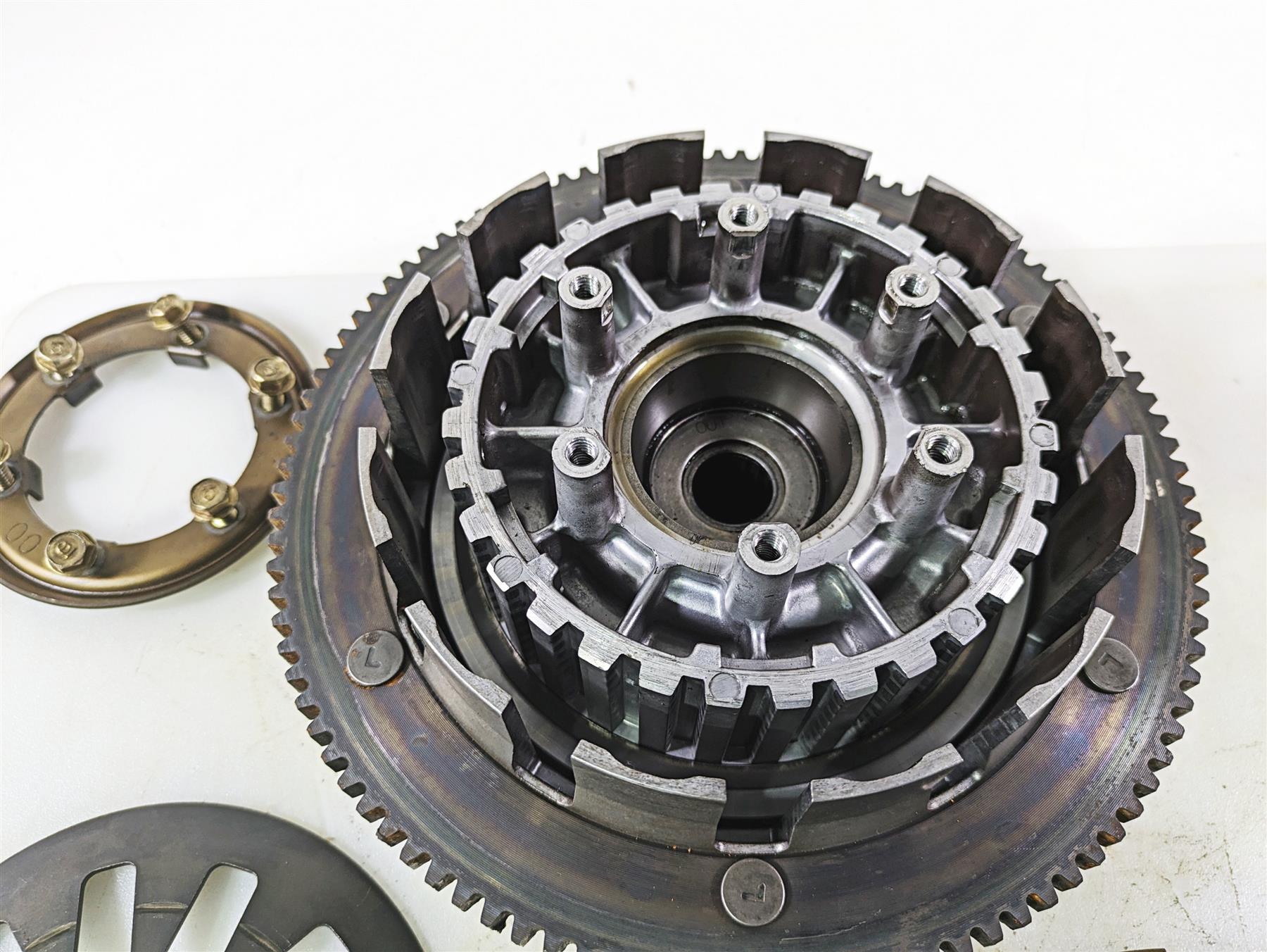 This Primary Drive Clutch Basket Set was parted off the described Bike that had 40726 original miles at the time of disassembly.