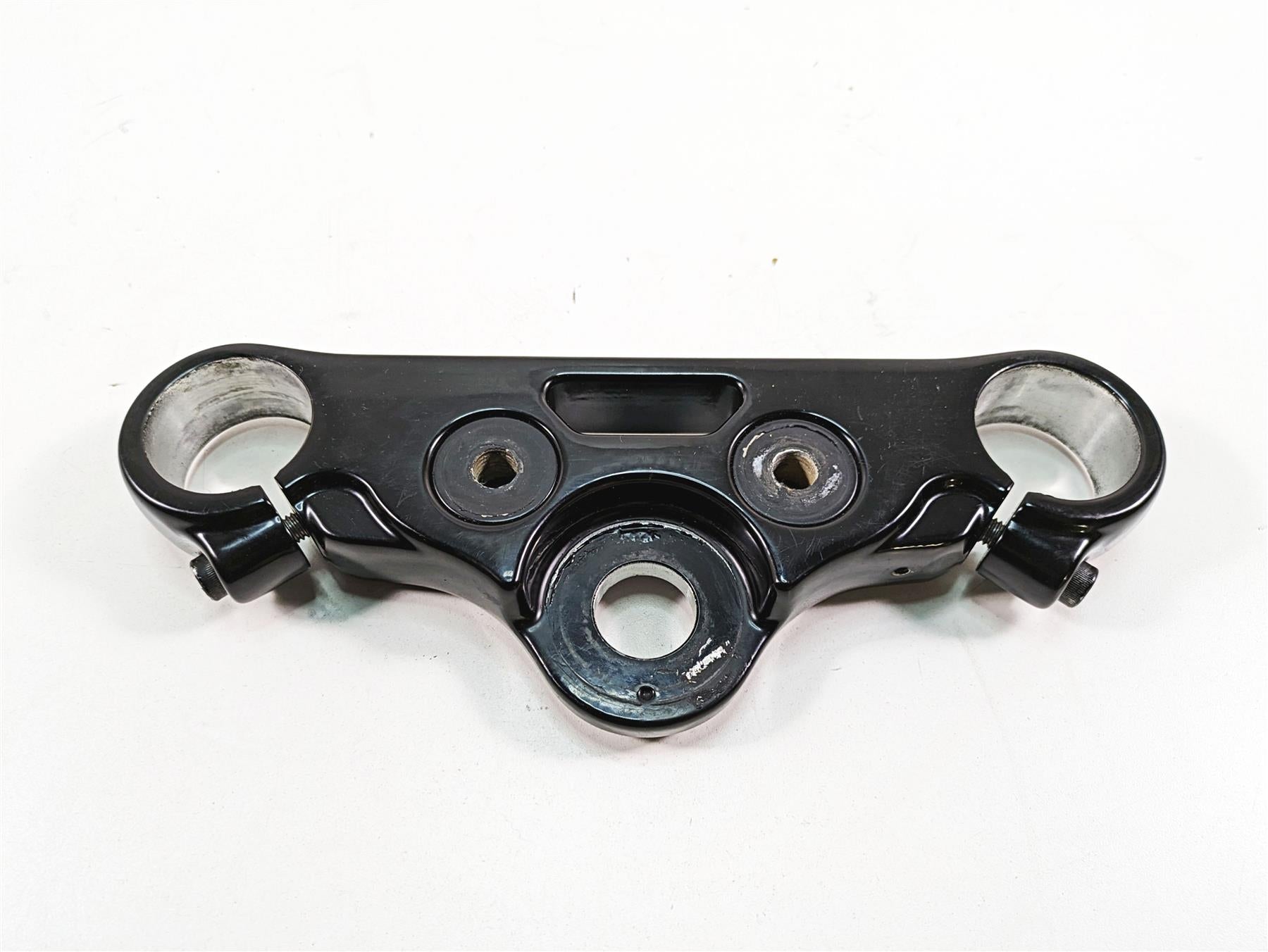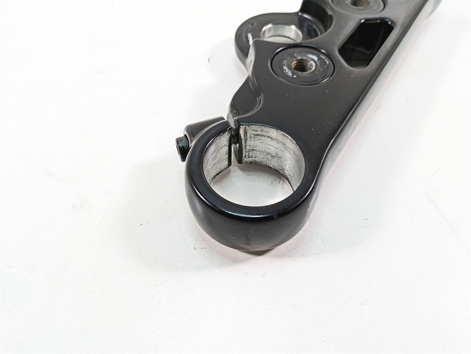This Upper Triple Tree Steering Clamp 49mm was parted off the described Bike that had 10699 original miles at the time of disassembly.