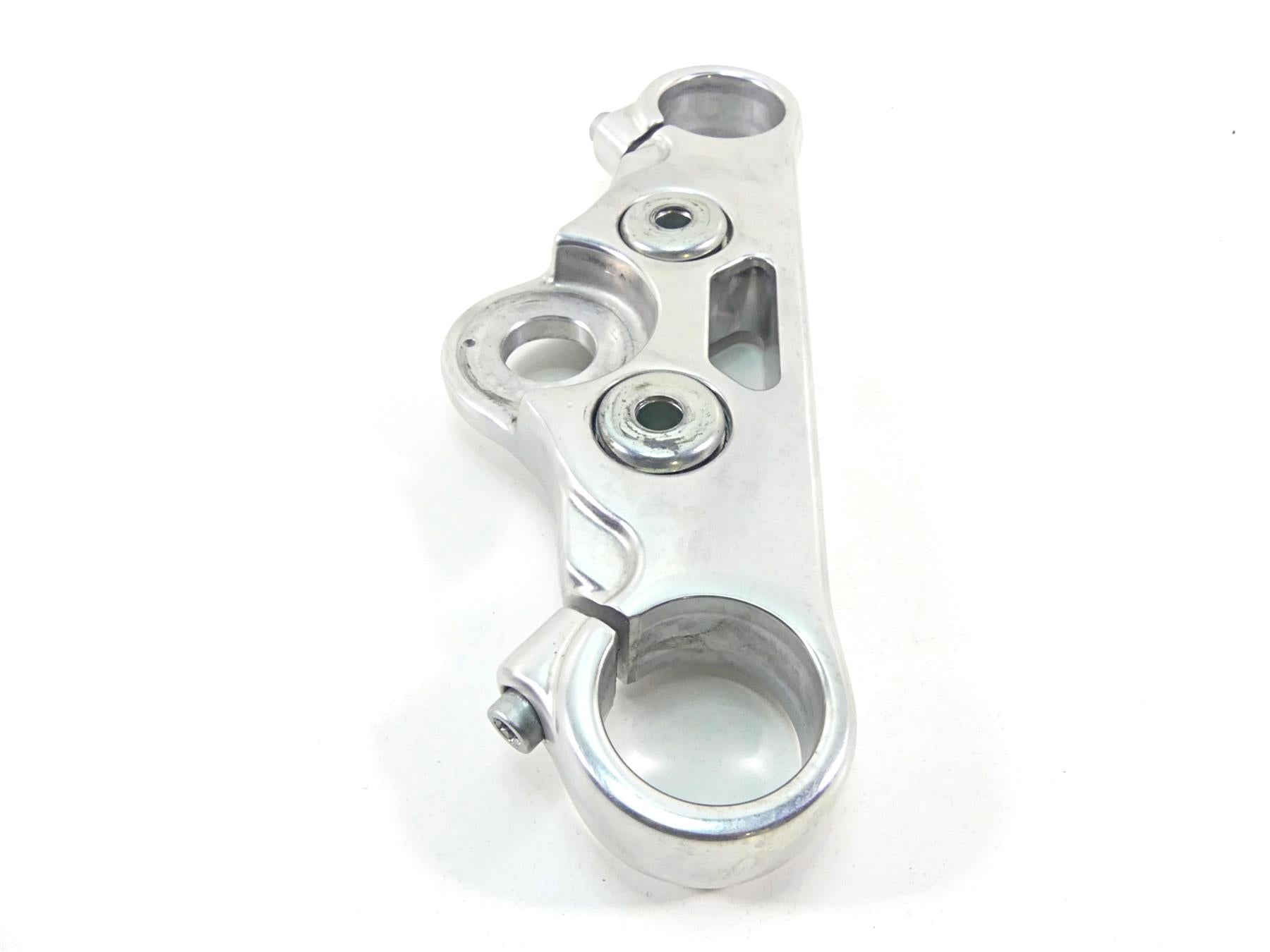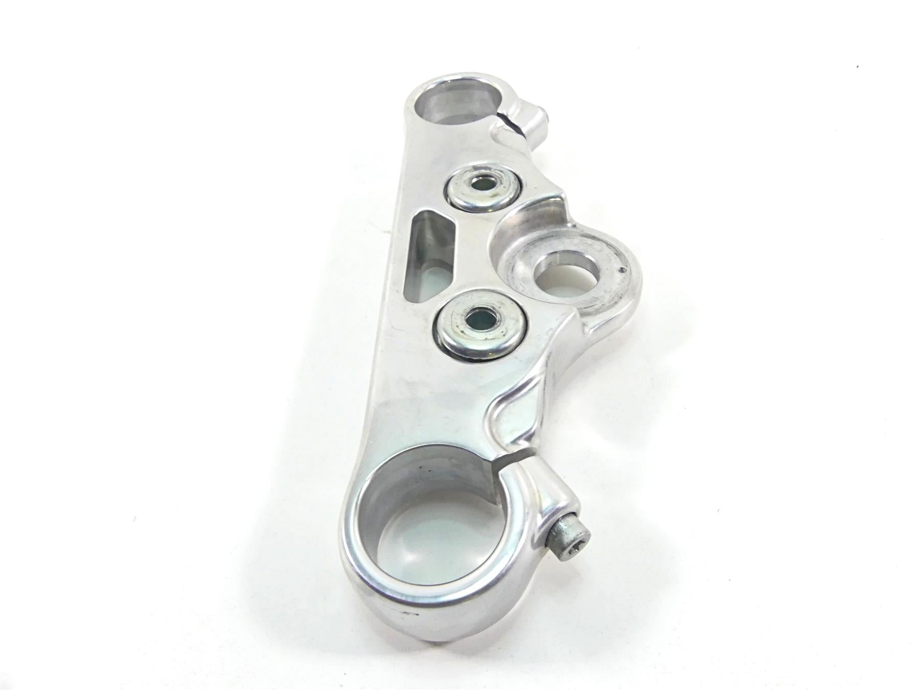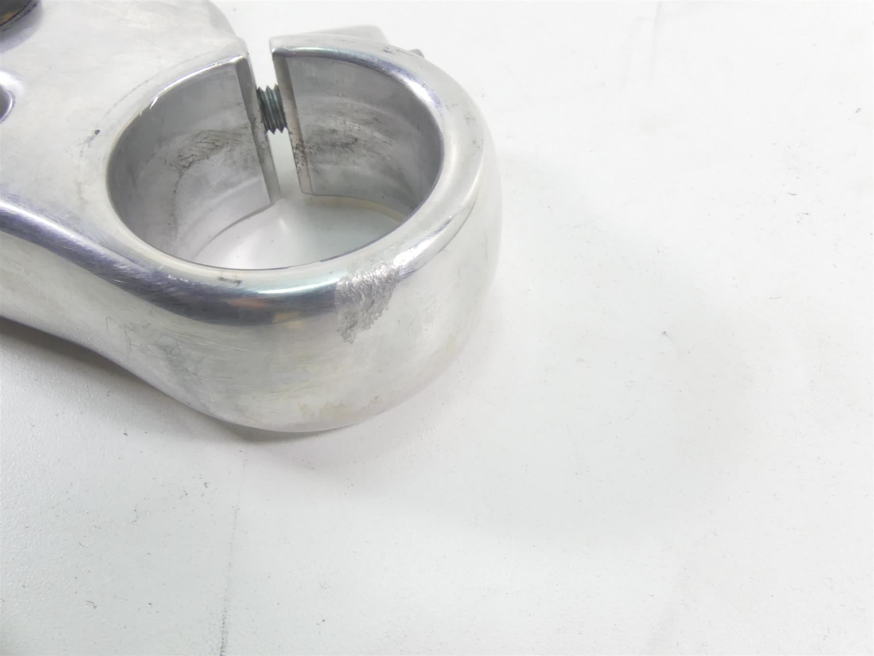 This Upper Triple Tree Steering Clamp 49mm was parted off the described Bike that had 3663 original miles at the time of disassembly.
