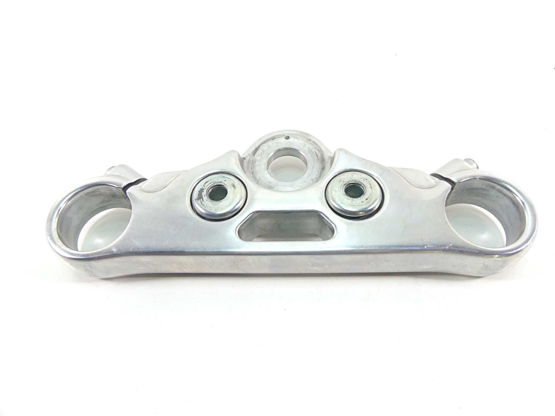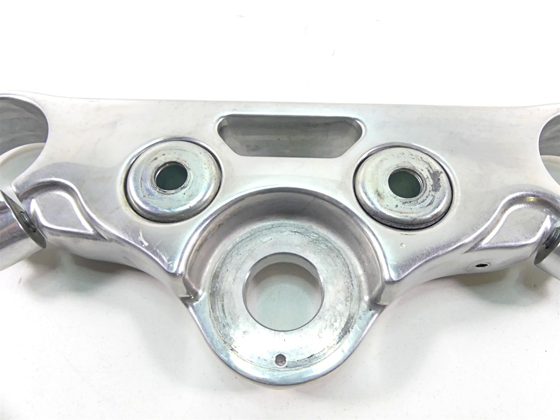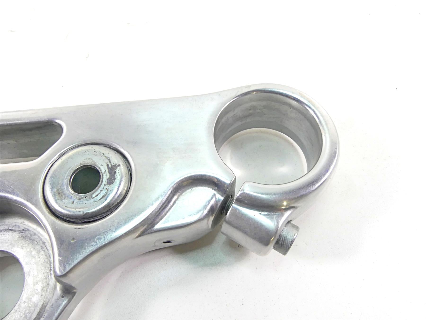This Upper Triple Tree Steering Clamp 49mm was parted off the described Bike that had 3663 original miles at the time of disassembly.