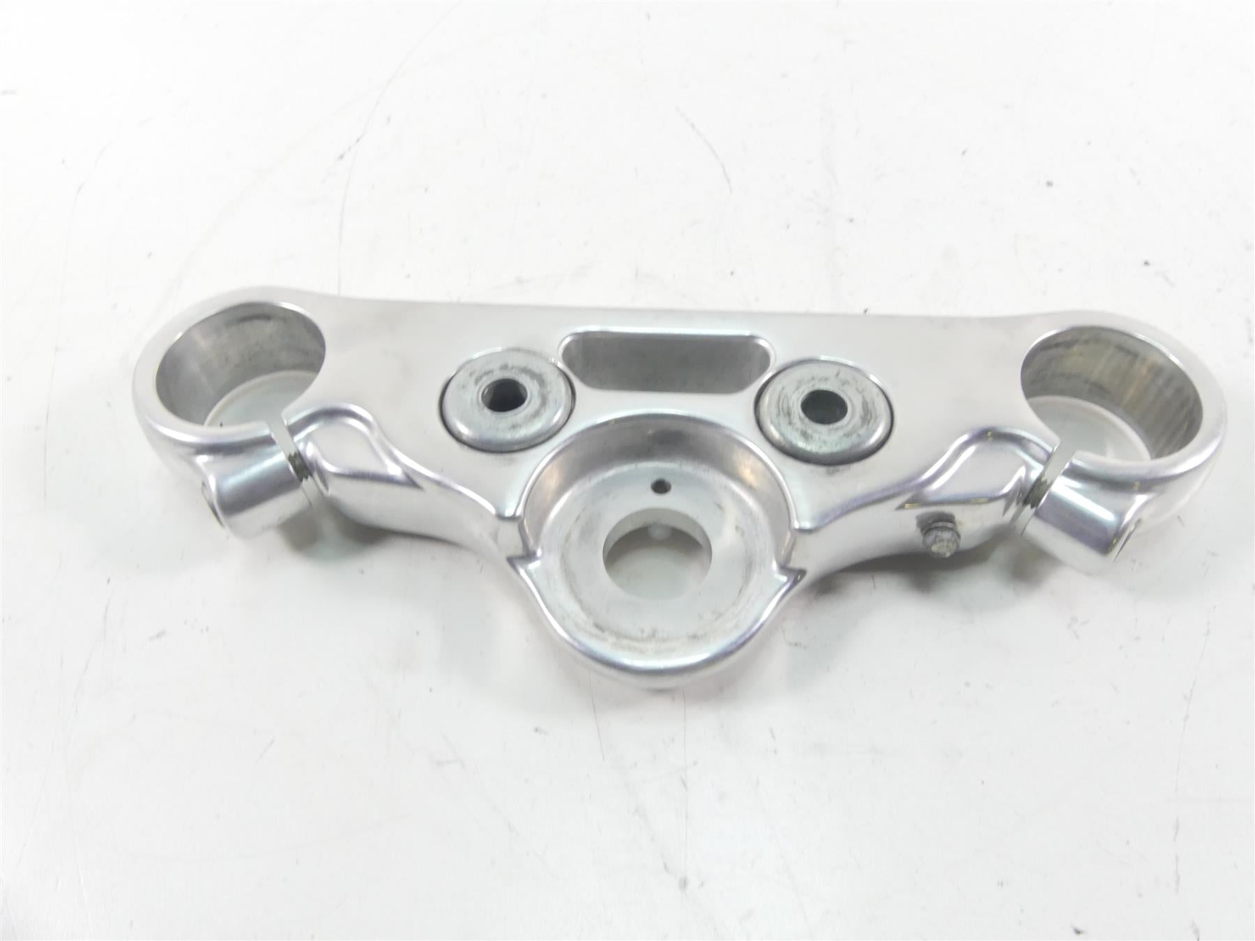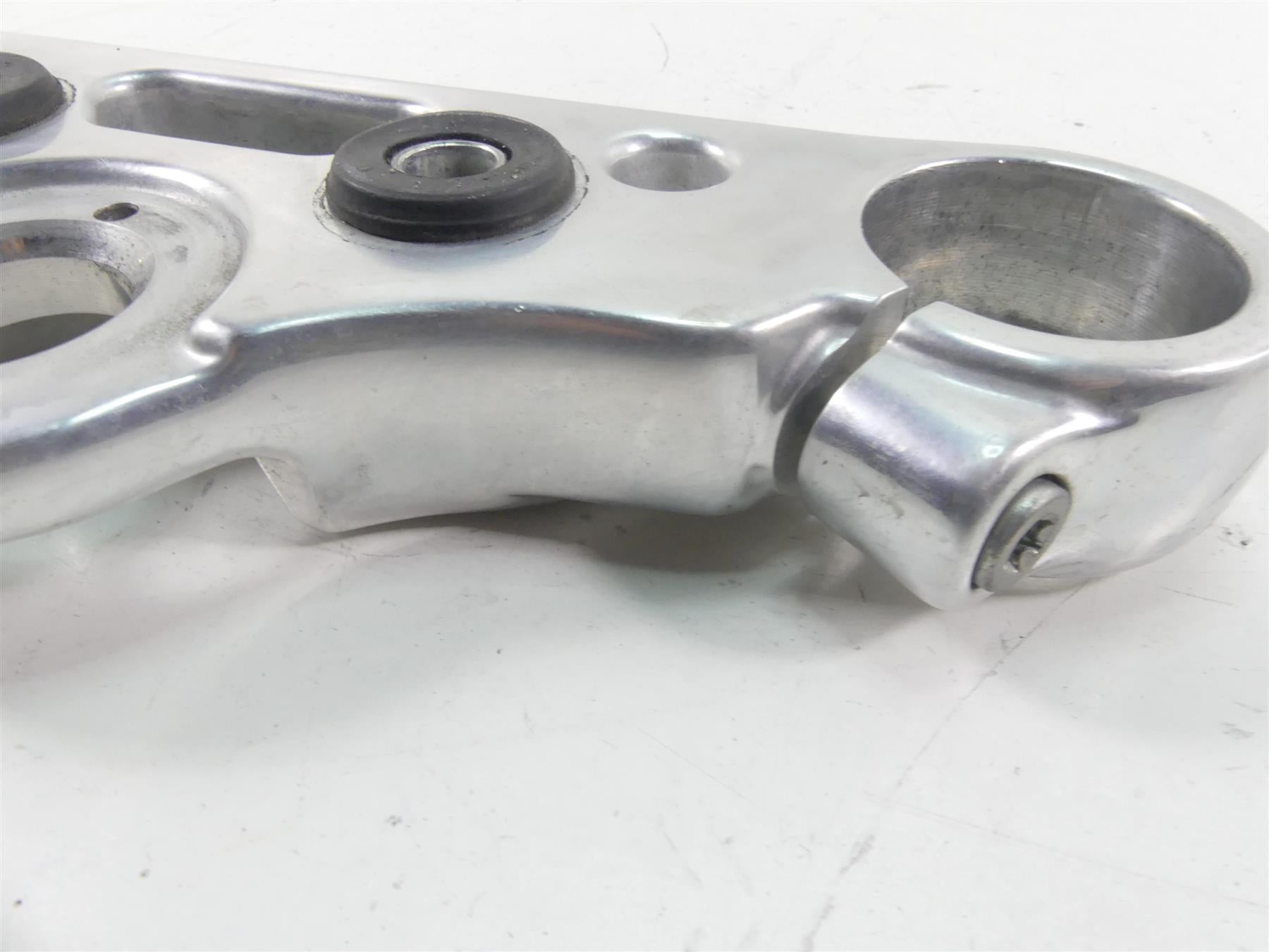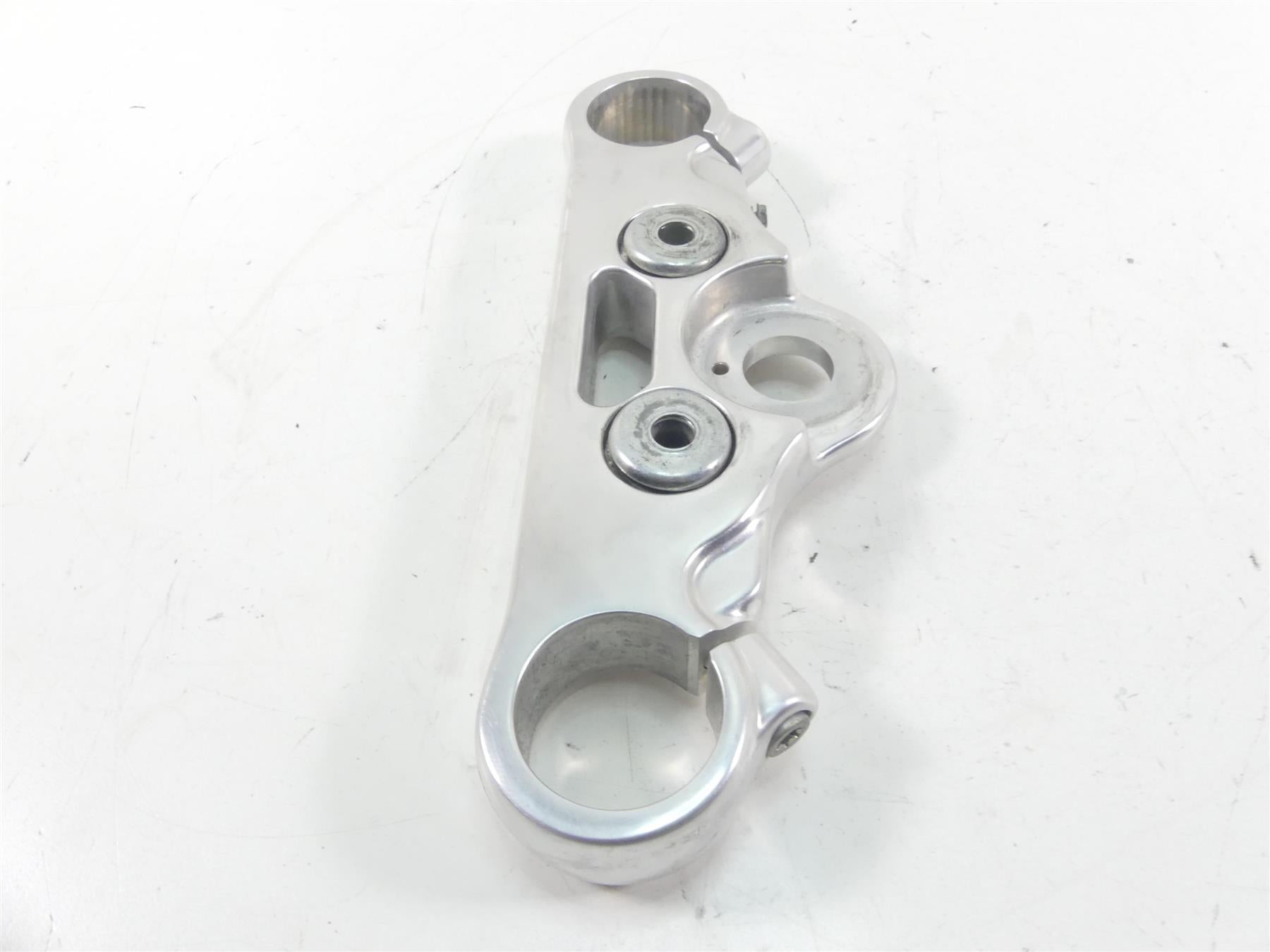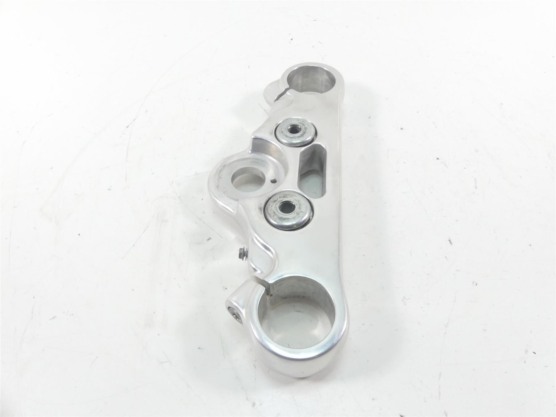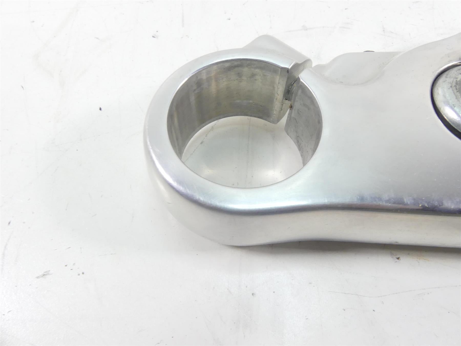 This Upper Triple Tree Steering Clamp 49mm was parted off the described Bike that had 2148 original miles at the time of disassembly.