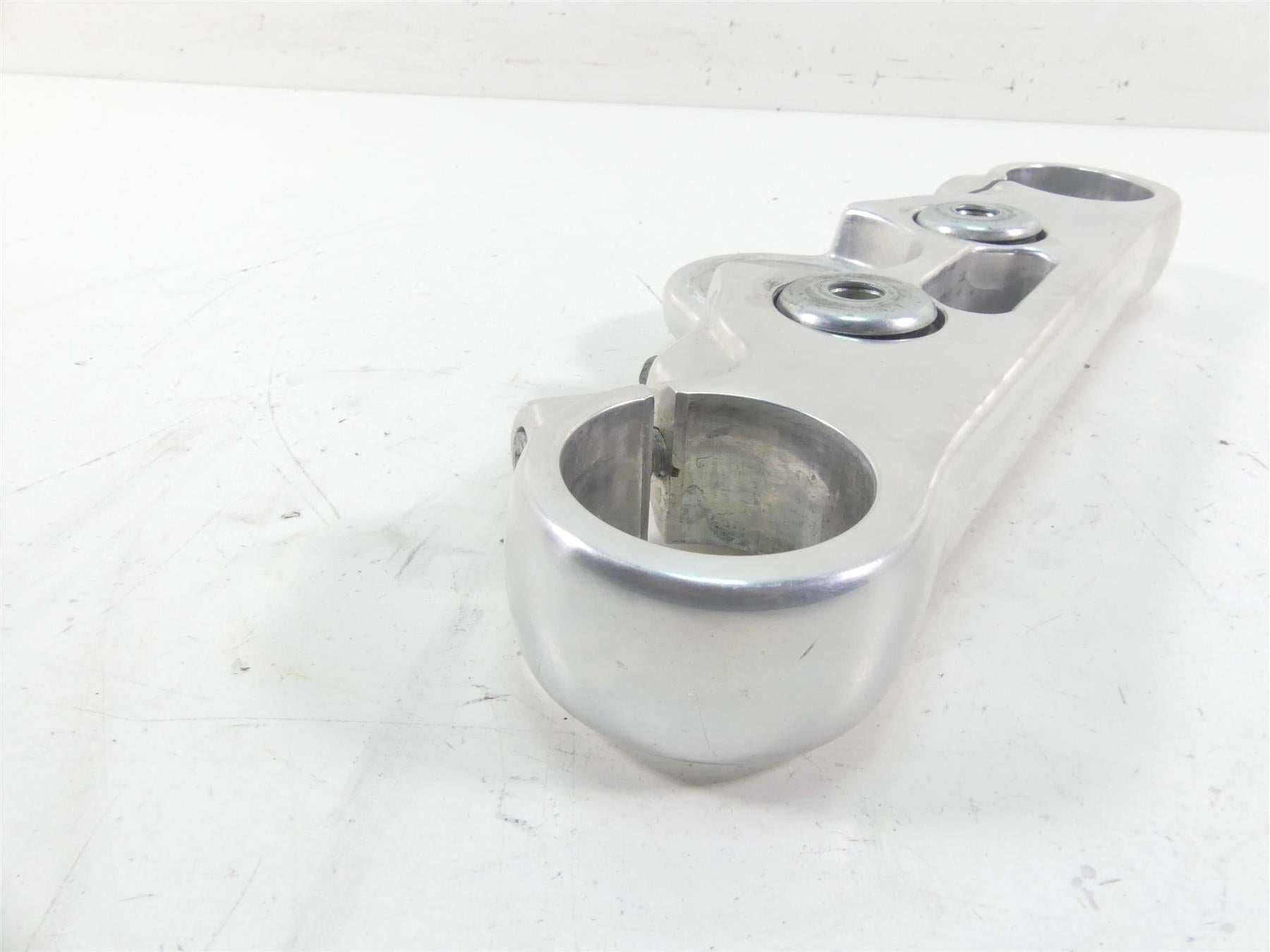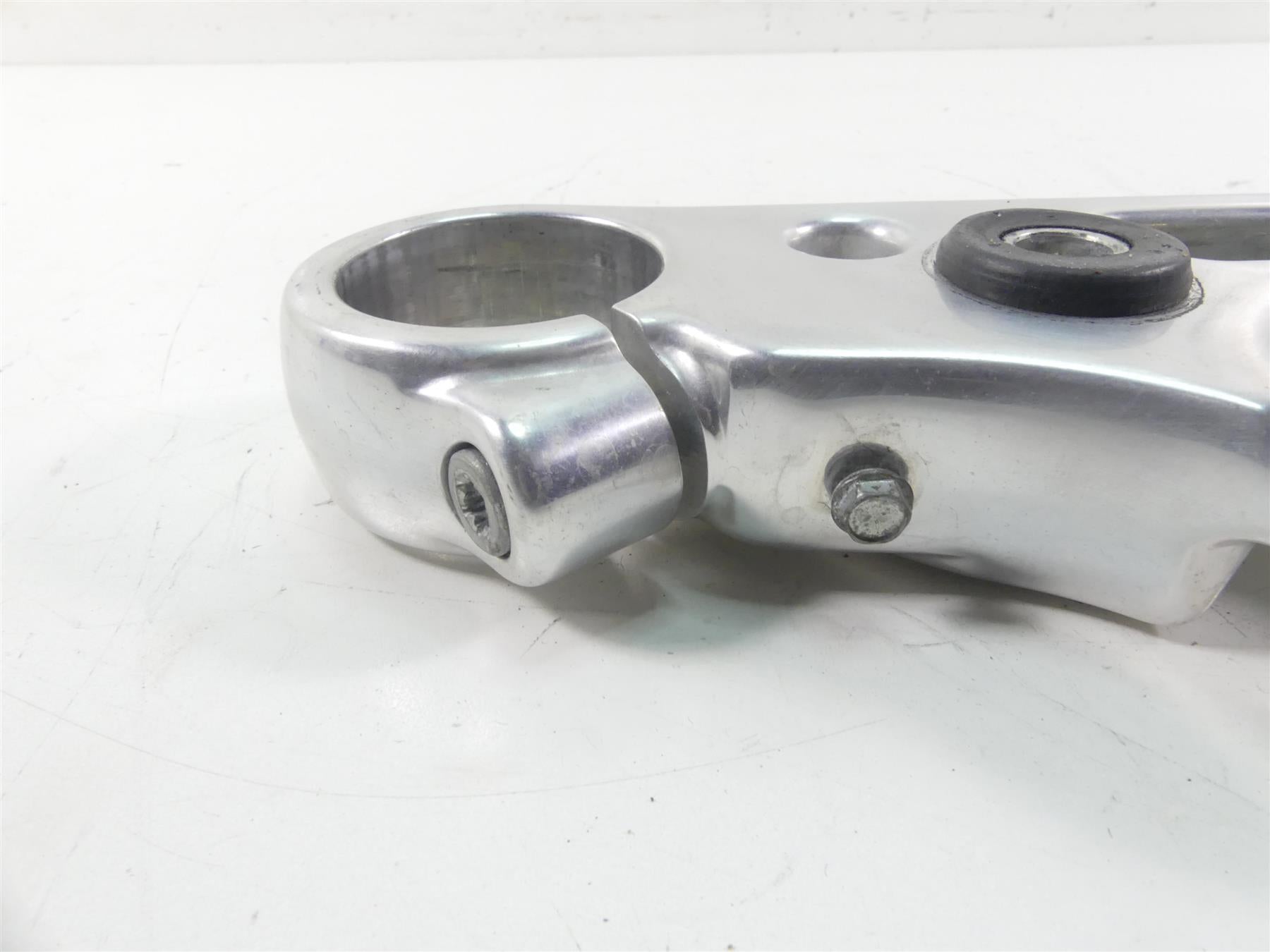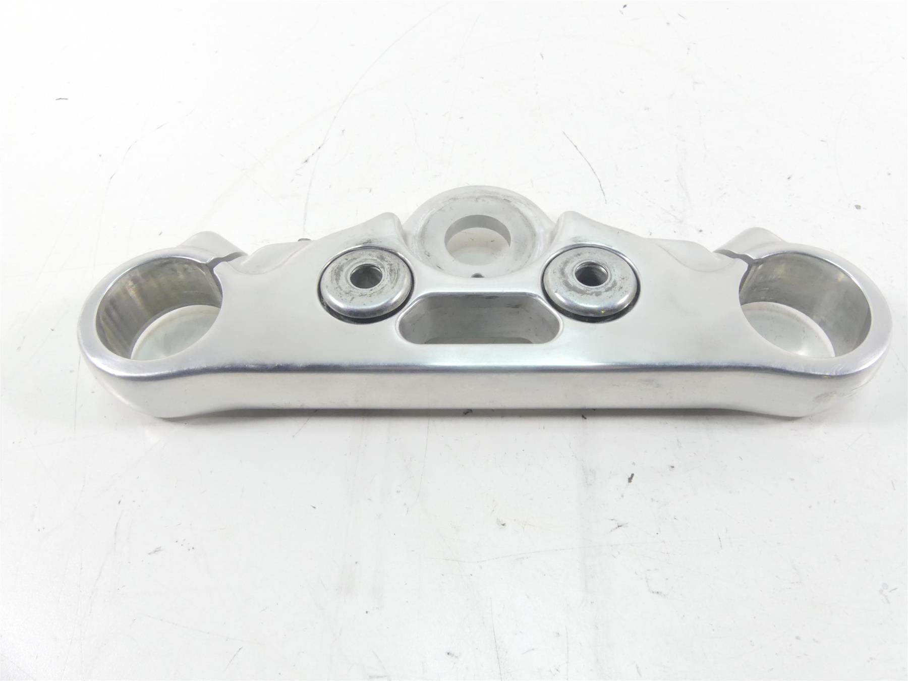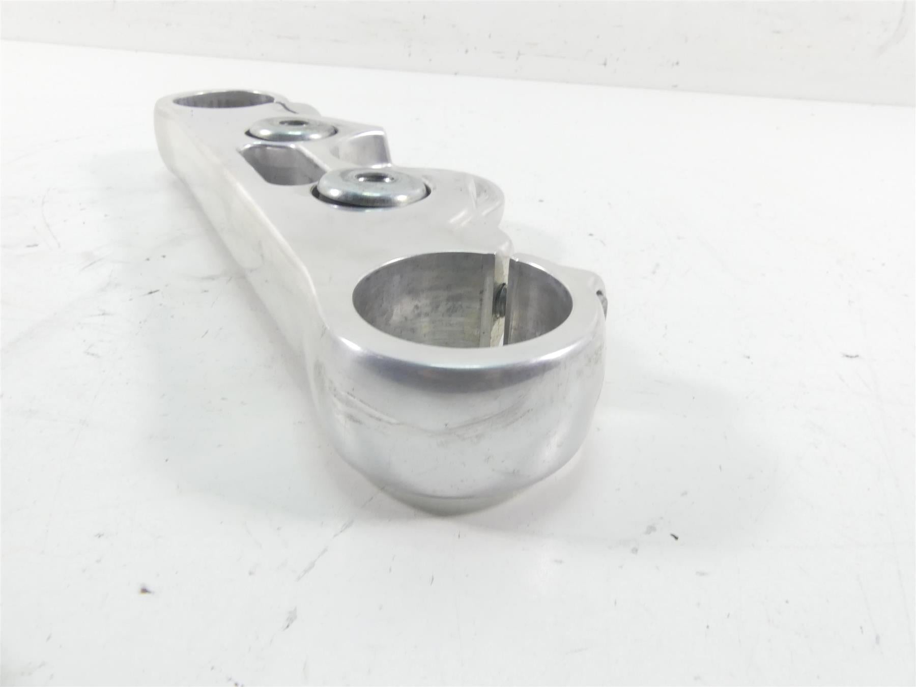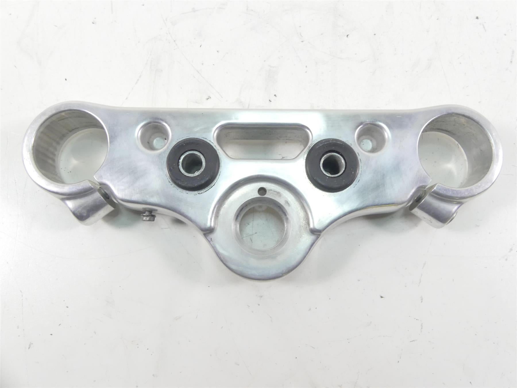 This Upper Triple Tree Steering Clamp 49mm was parted off the described Bike that had 2148 original miles at the time of disassembly.