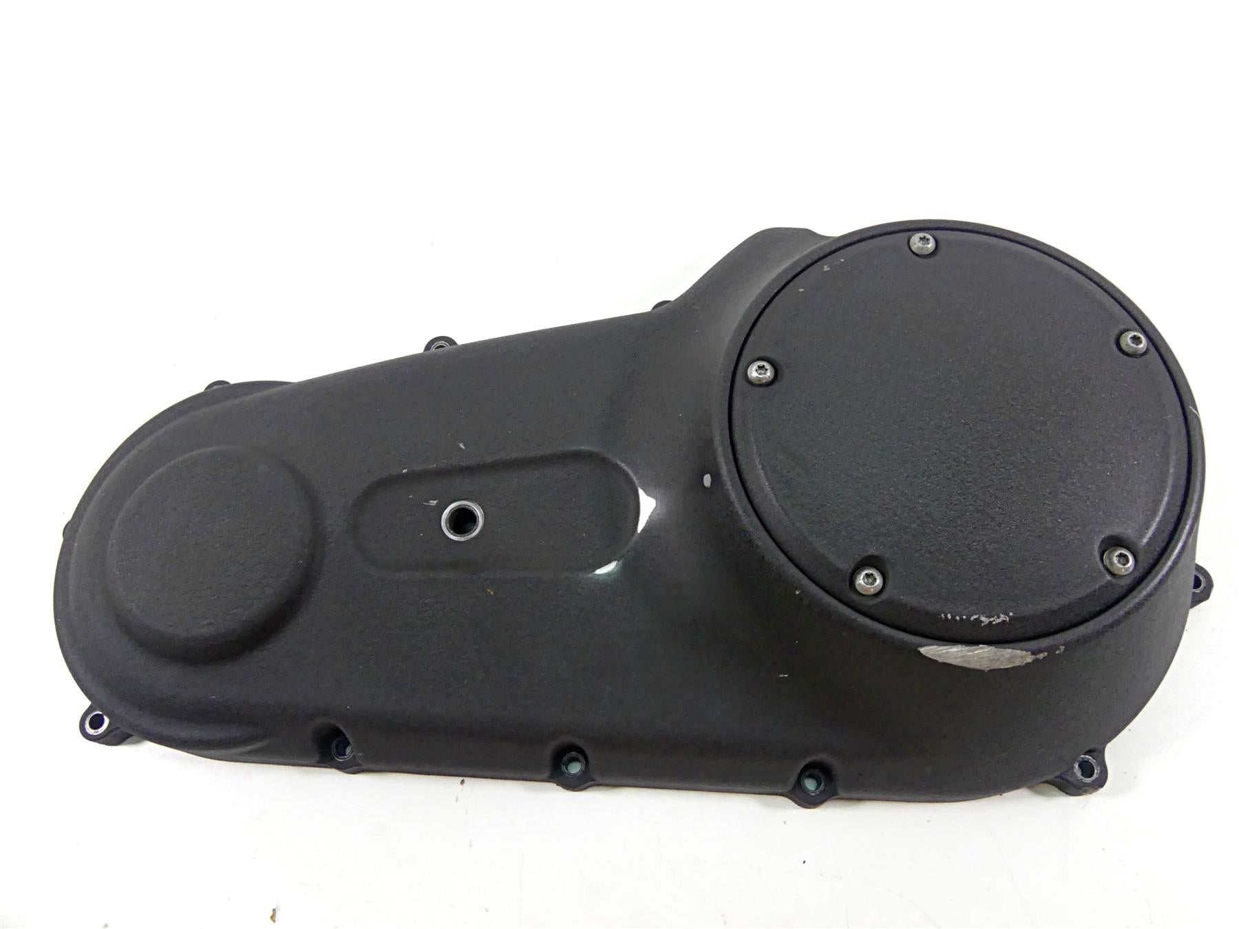 This Outer Primary Drive Cover Mid Ctrl was parted off the described Bike that had unknown original miles at the time of disassembly.