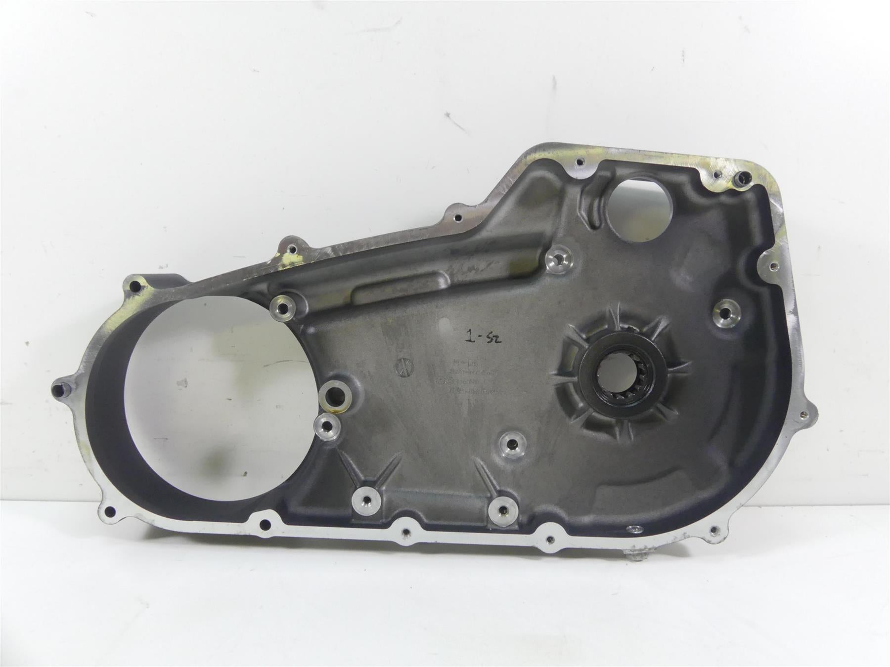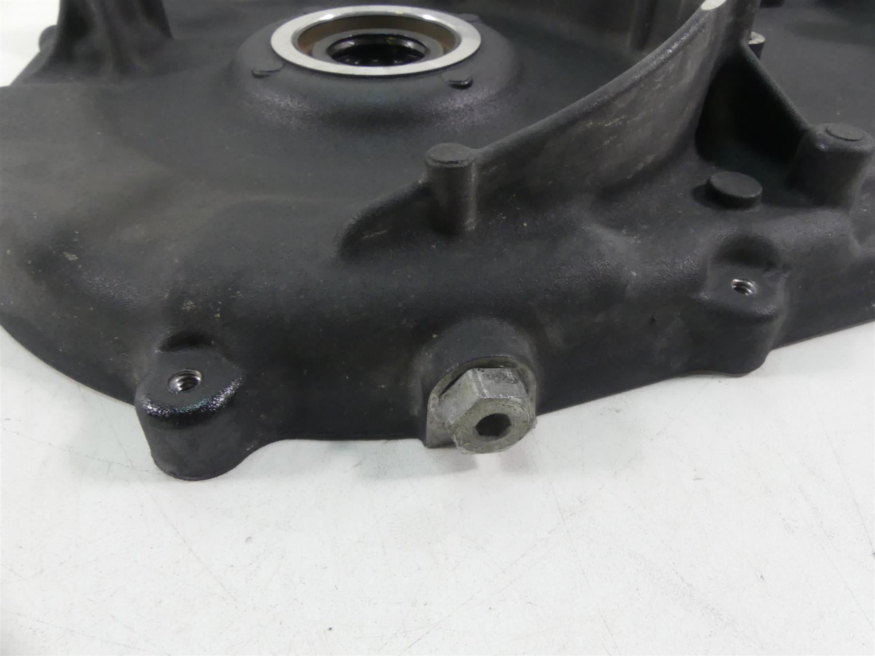This Inner Primary Drive Clutch Cover Fw was parted off the described Bike that had 8734 original miles at the time of disassembly.
