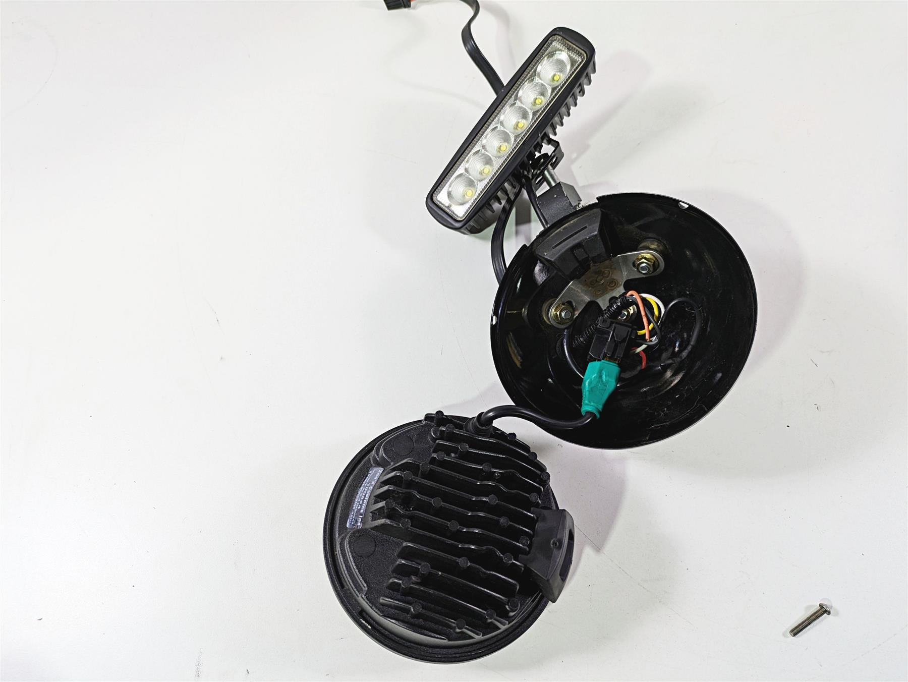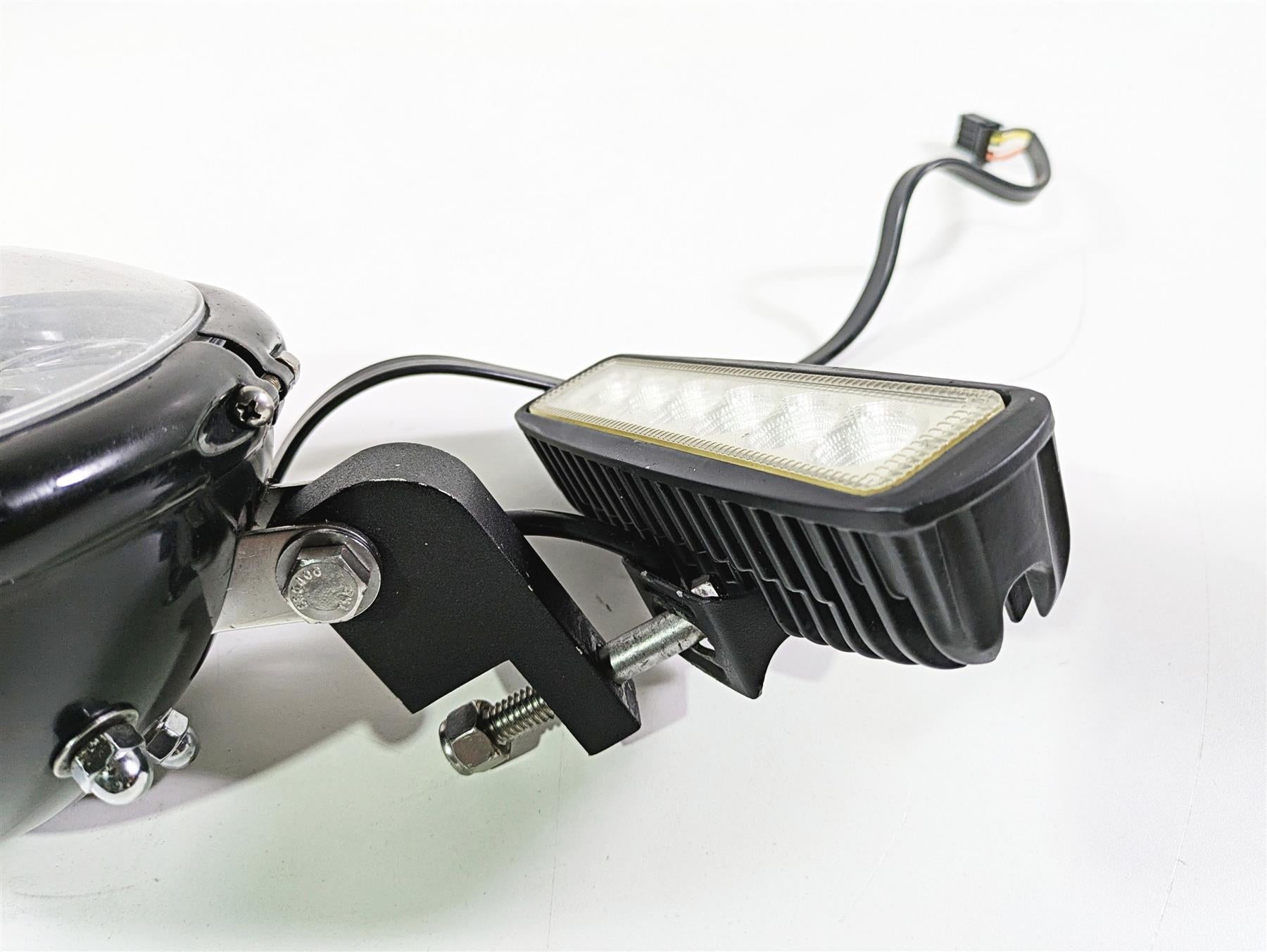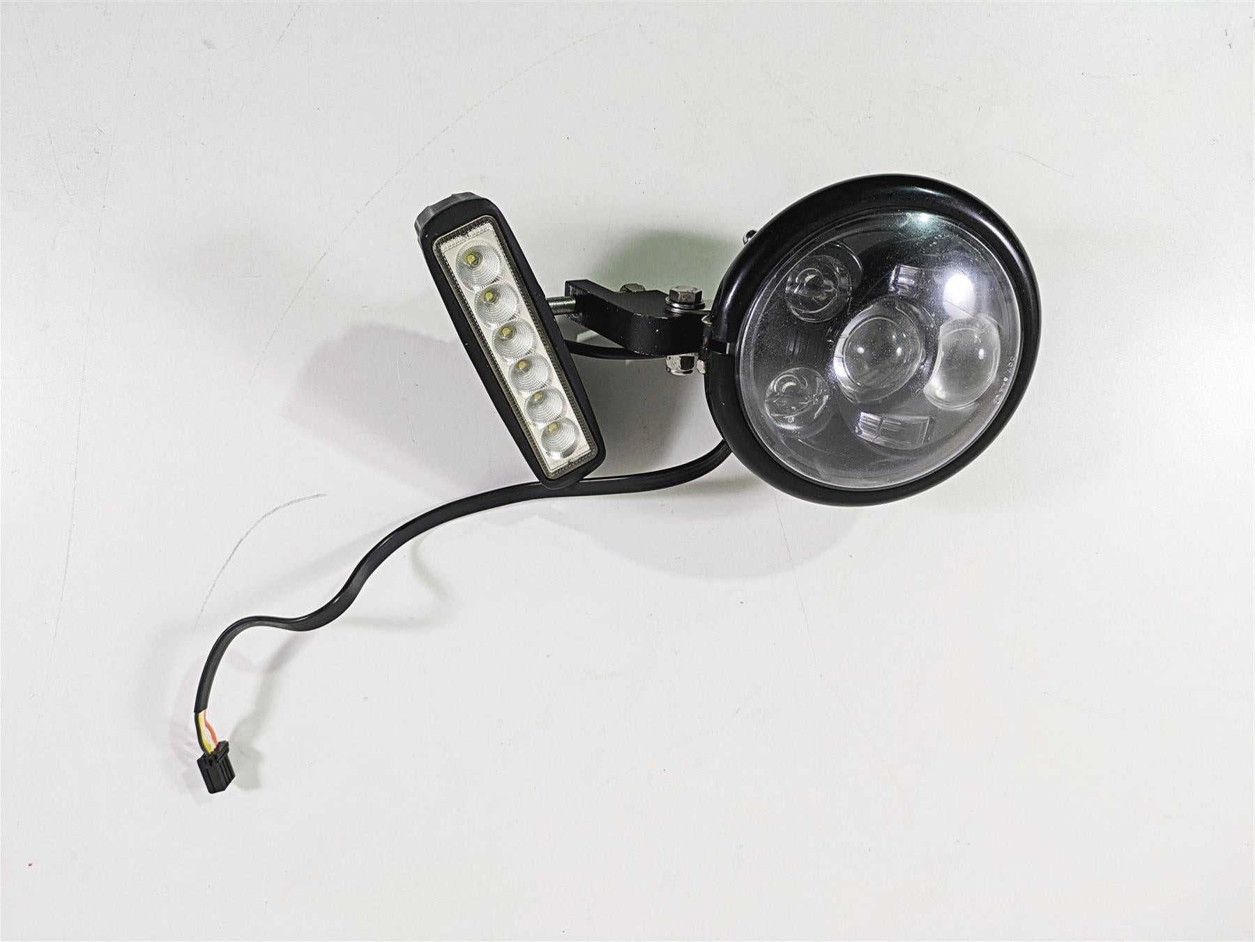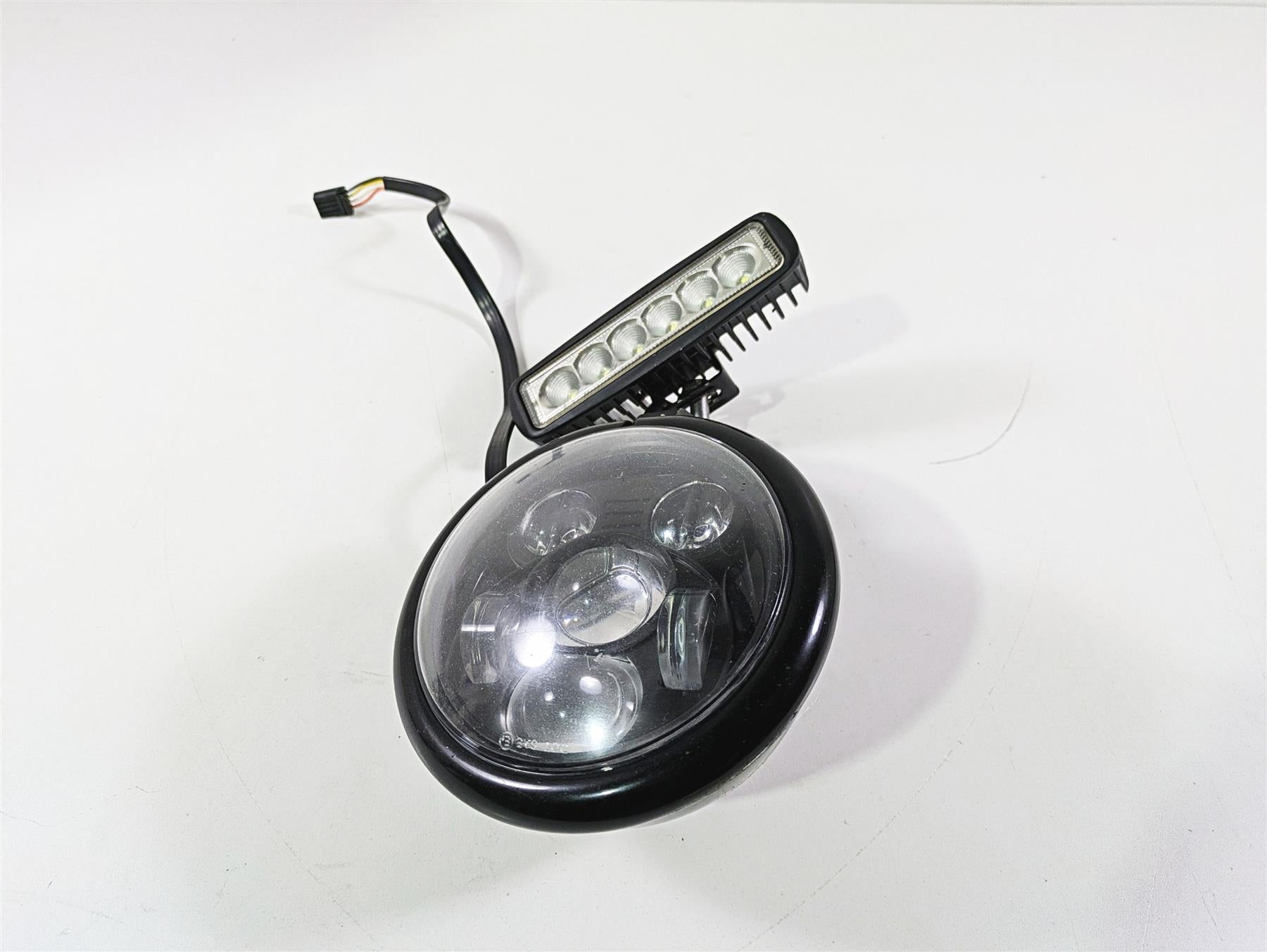 Comments: Zee Customs 5-3/4" Super Headlamp with aftermarket mount and led lightbar. The lens of headlight has a lot of wear