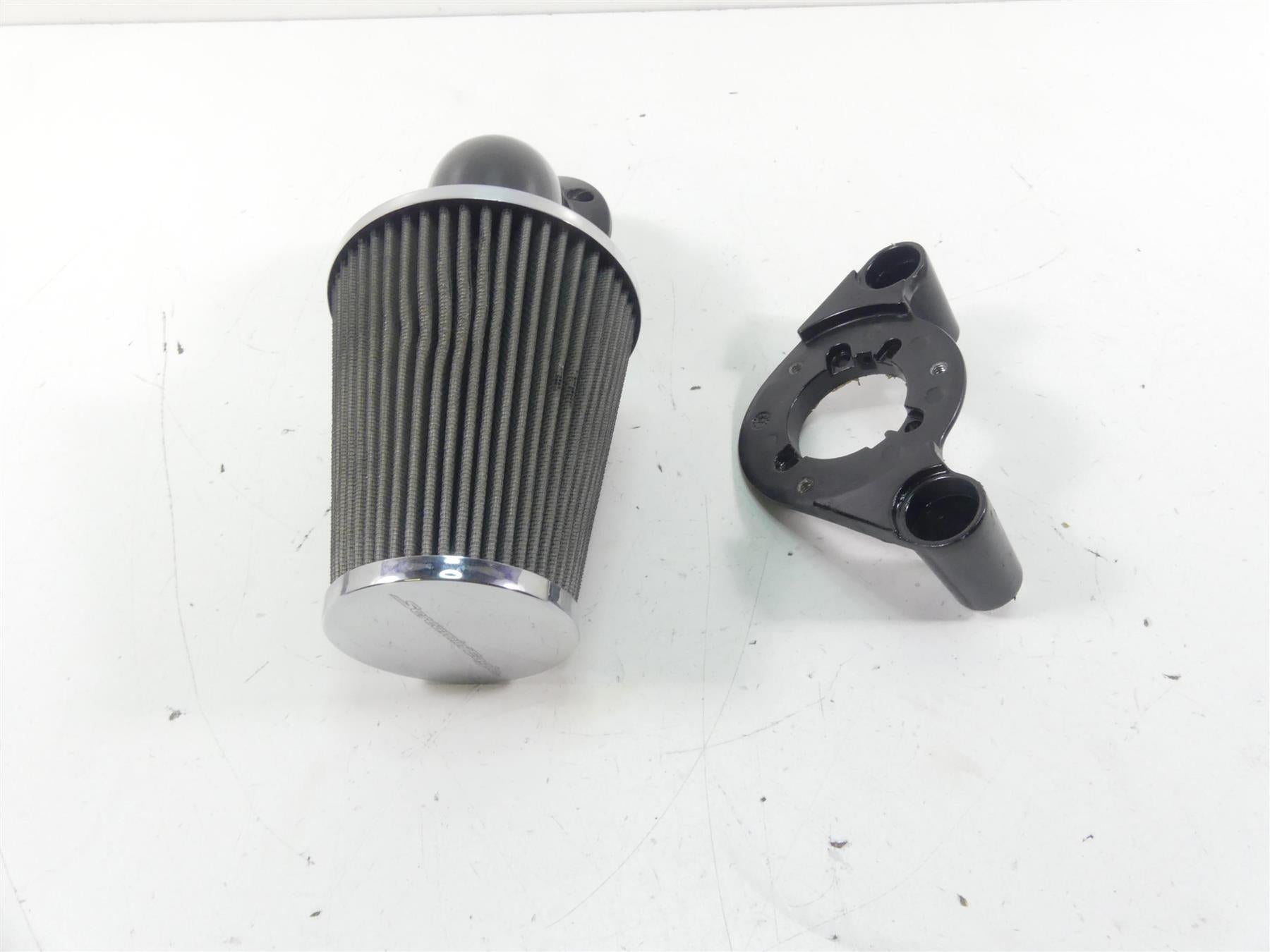 Comments: This is a Screamin Eagle Heavy Breather air filter kit. The mounting bracket shows some marks and a sealing may needs to be replaced. All in all in great shape.
