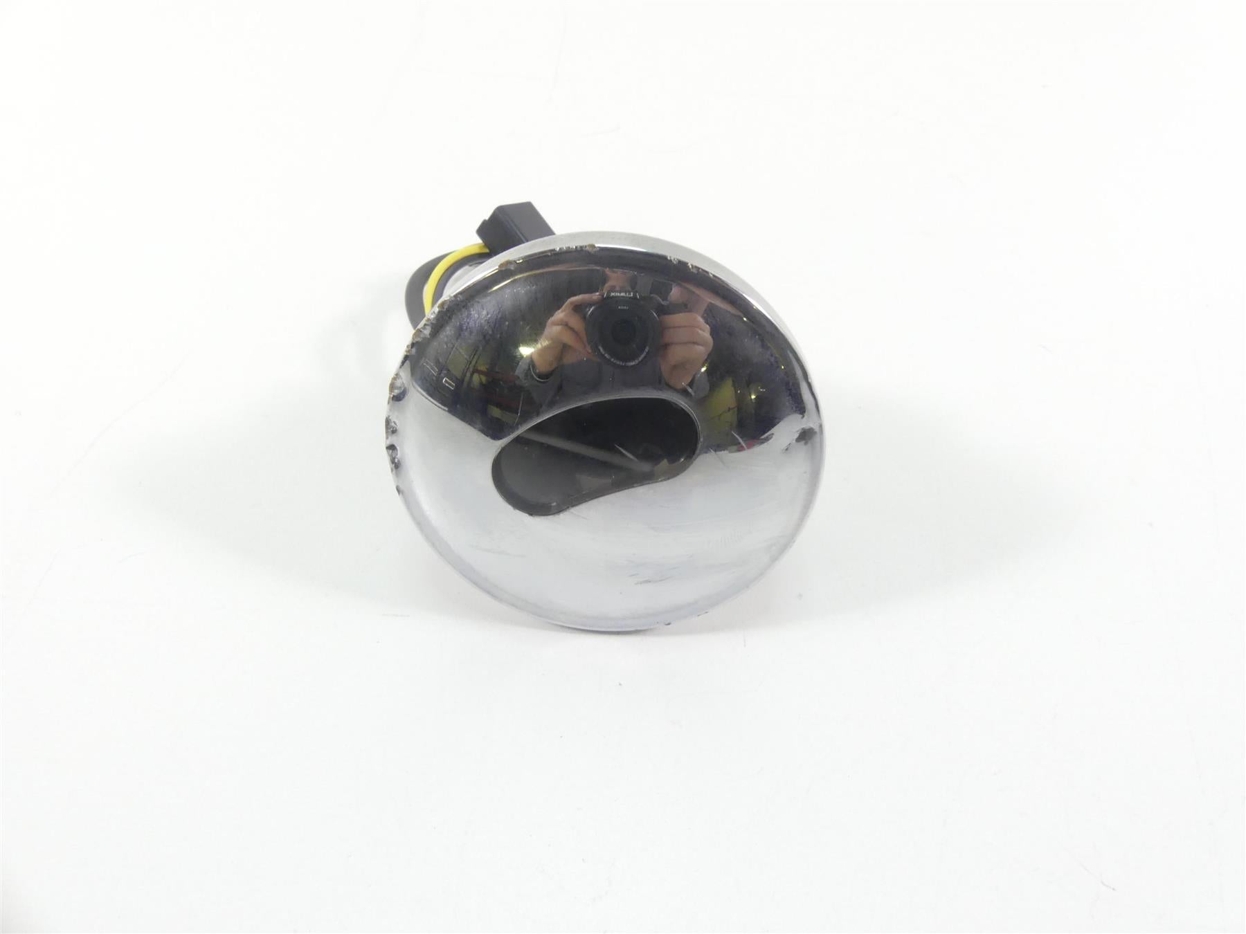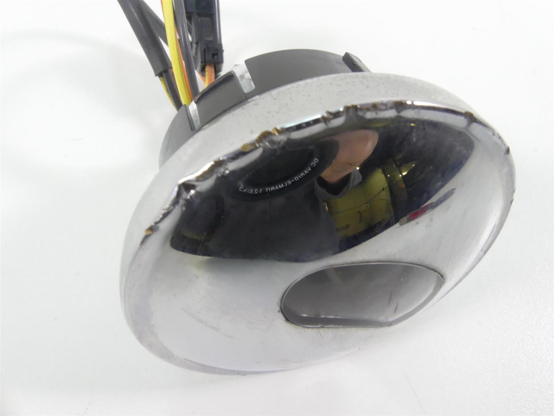 Comments: Shows pressure and rash marks in chrome. One of the plastic pins on backside is broken. Function is not affected.