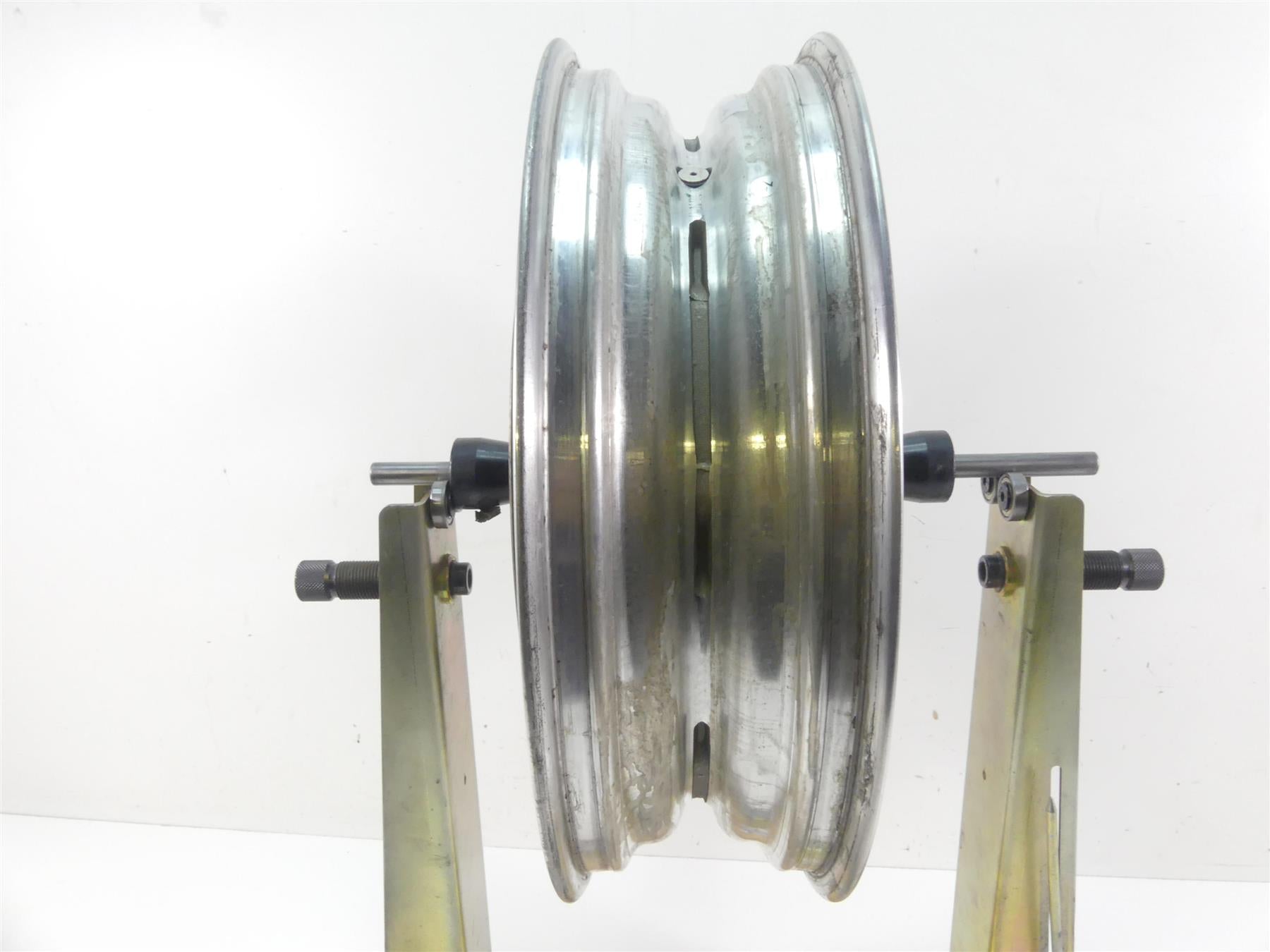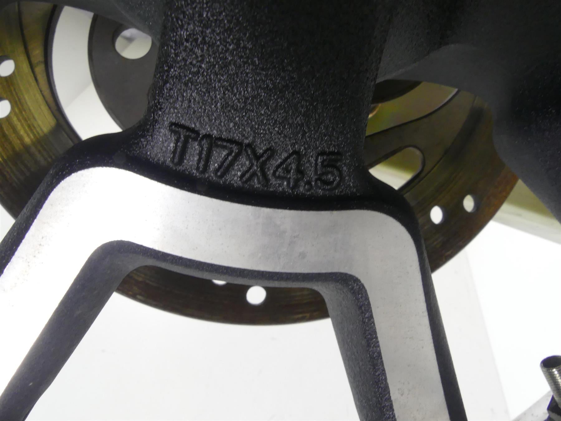 This Straight Rear Cast Wheel Rim 17x4.5 was parted off the described Bike that had 22476 original miles at the time of disassembly.