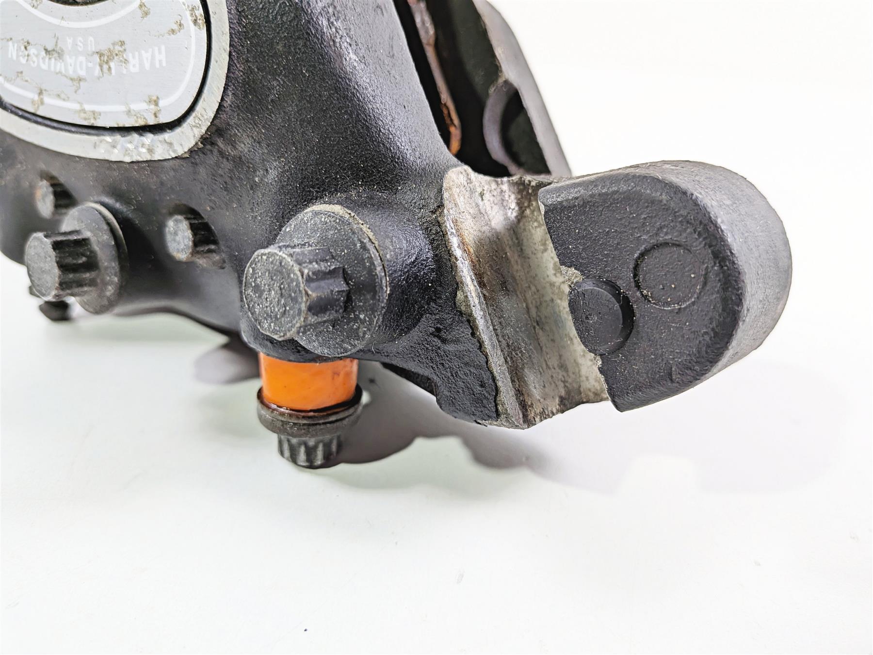 This Rear Brake Caliper- Read was parted off a 2002 Harley Davidson XLH883 Sportster that had unknown original miles at the time of disassembly.