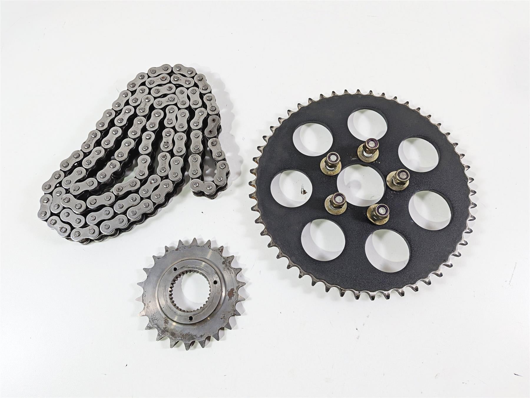This Conversion Kit 22T to 51T 530 Chain was parted off the described Bike that had 50865 original miles at the time of disassembly.