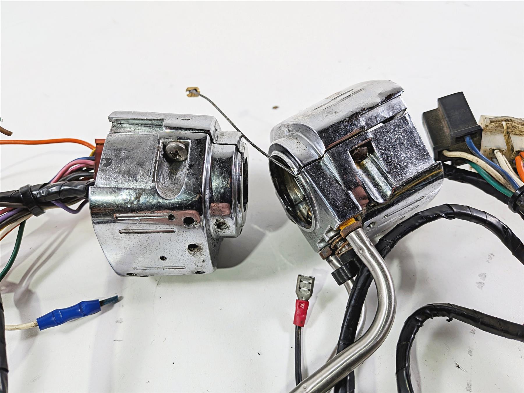 Comments: the chrome on housings are in bad shape. Housing bolts not oem. The wires cut and in bad shape as well. Knobs work. Those are good for parts only