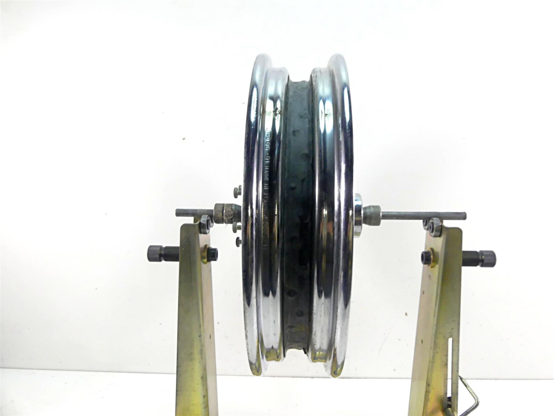 Comments: For 3/4" front axles. It has a very slight wobble that can be fixed with tighten the right spokes. Shows some normal wear and rust marks from use and age.