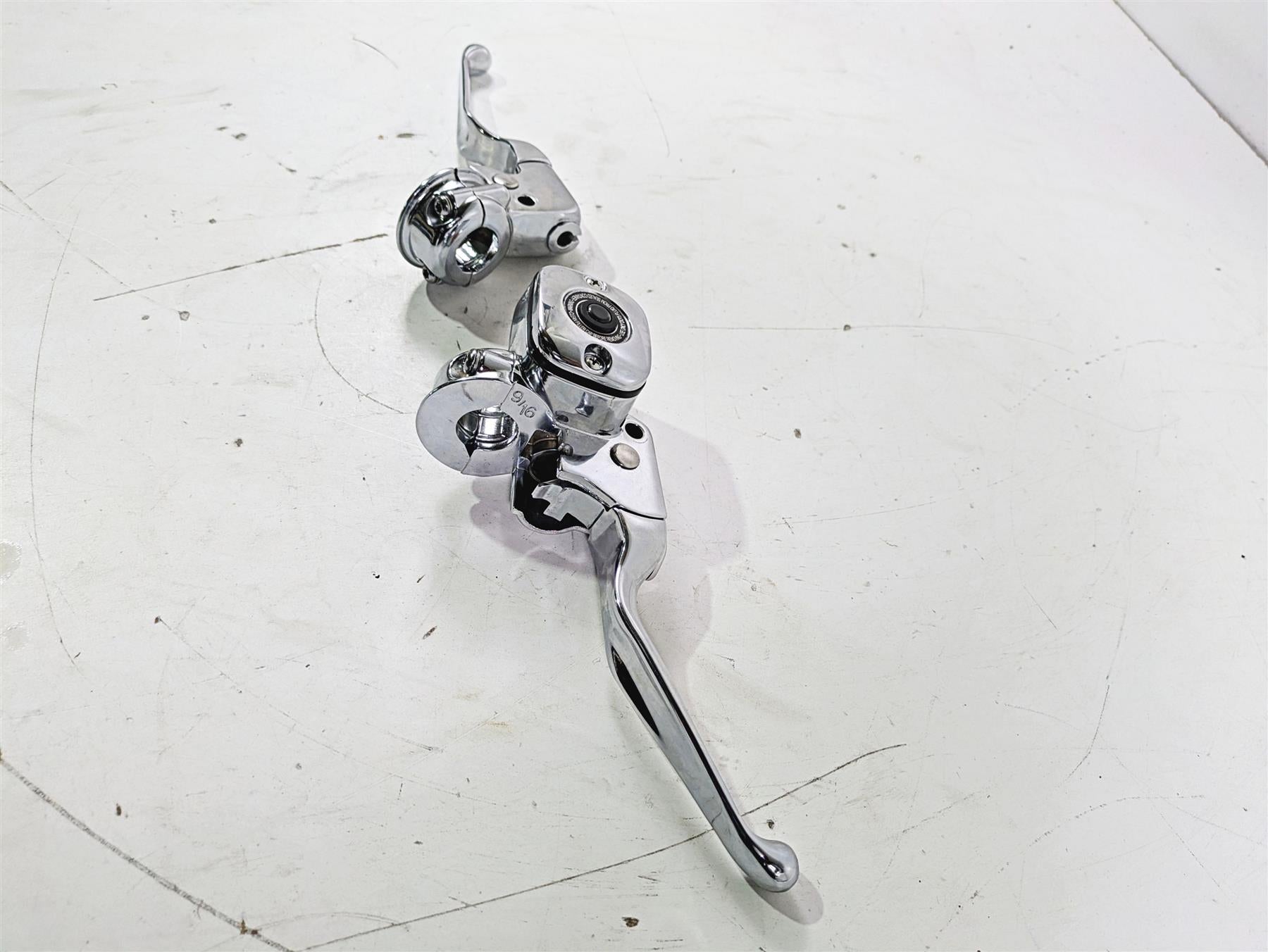 2004 Harley Softail FLSTF Fat Boy Chrome Brake Master Cylinder Set 9/16 45019-96