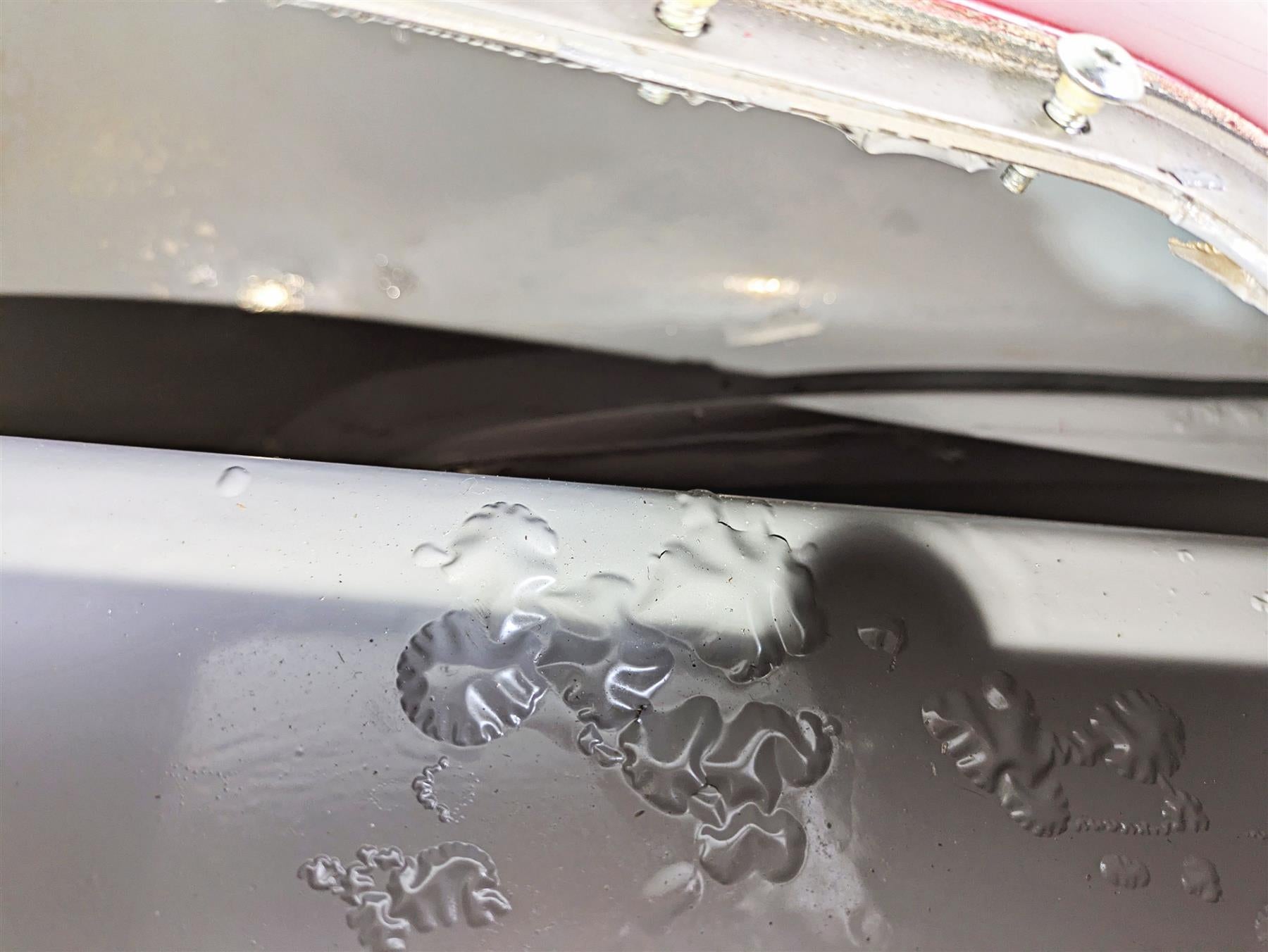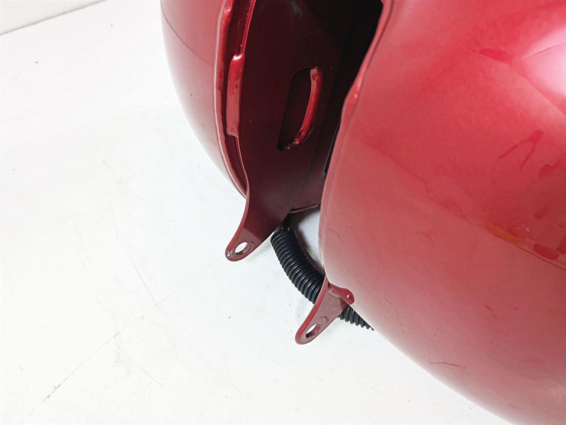 Comments: shows some paint damages. No dents. Clean inside but the inner coat is bubbling. Color: SIERRA RED & BRILLIANT SILVER W/ RED AND GOLD STRIPE