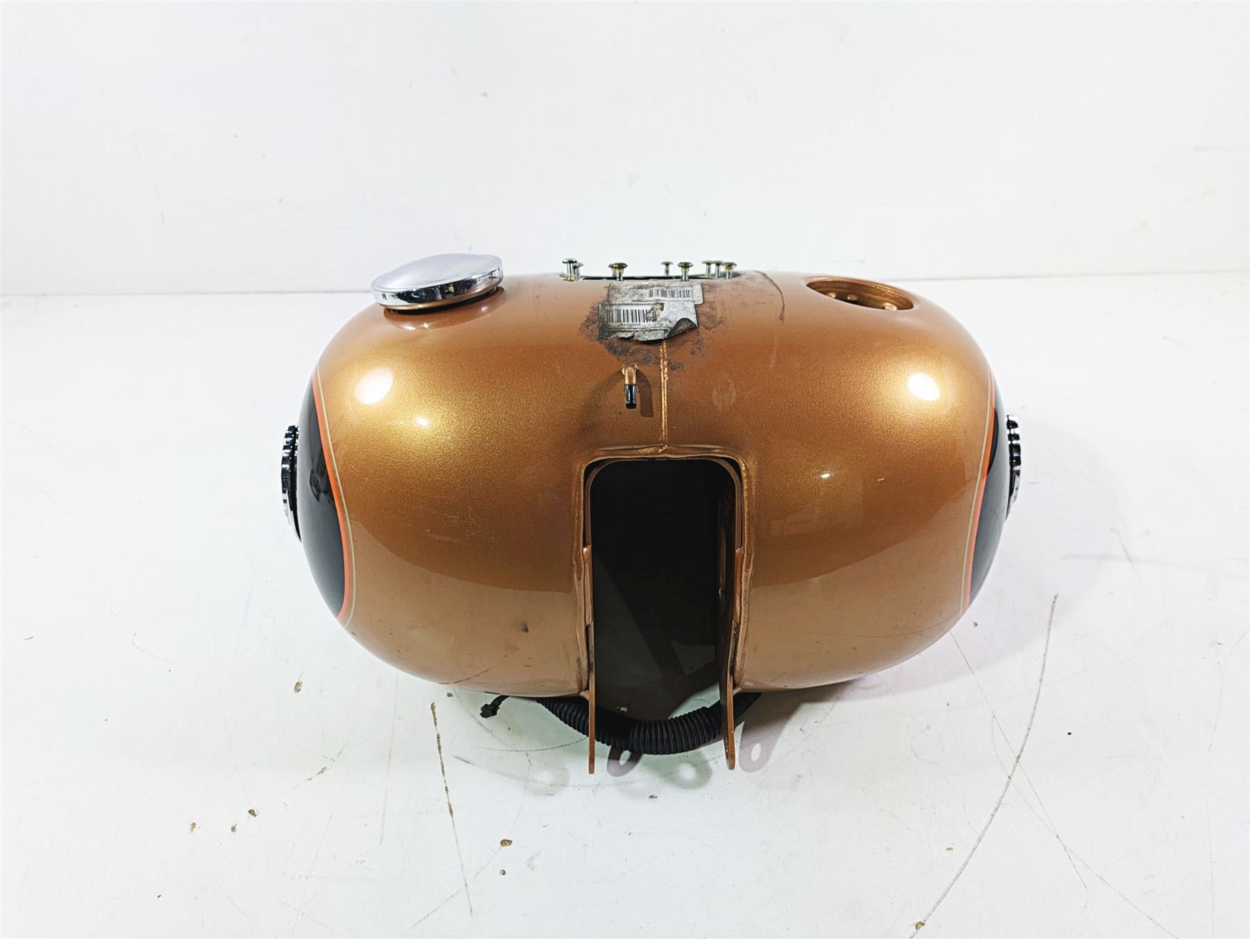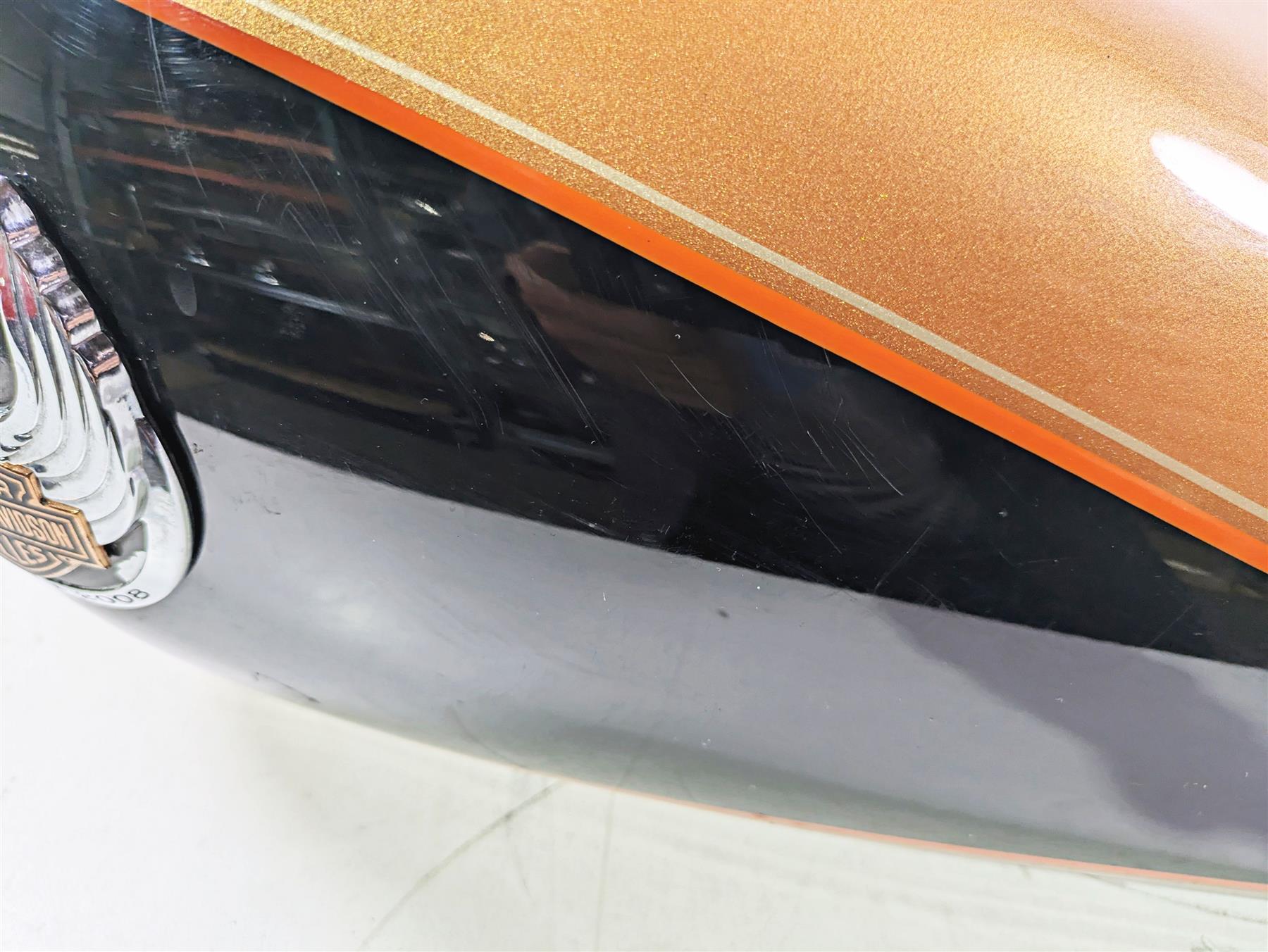 Comments: No dents. Scratches only. Clean inside. Color: ANNIVERSARY COPPER PEARL & VIVID BLACK W/ ORANGE AND GOLD STRIPE