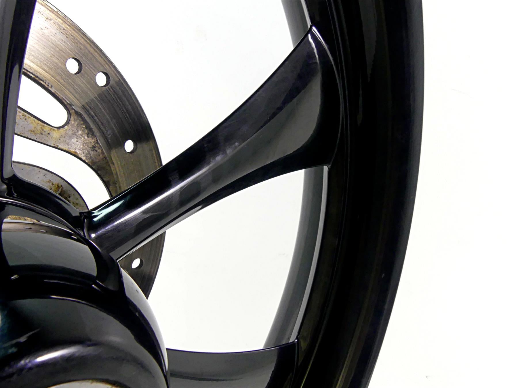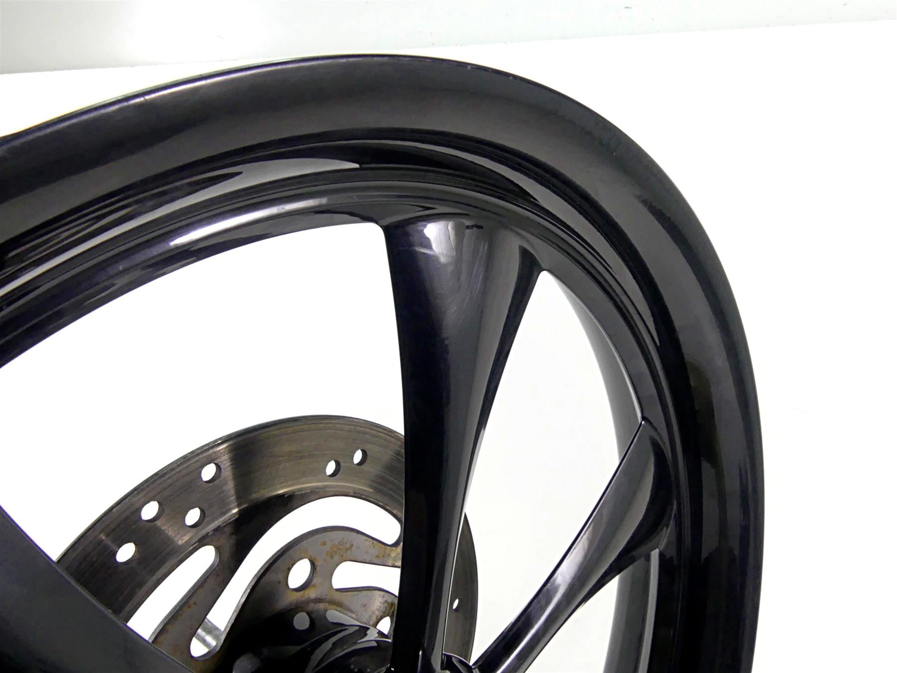 Comments: Has ding in lip as shown in pics. Spins straight and has good bearings. Bike used a 120/70 B21 tire