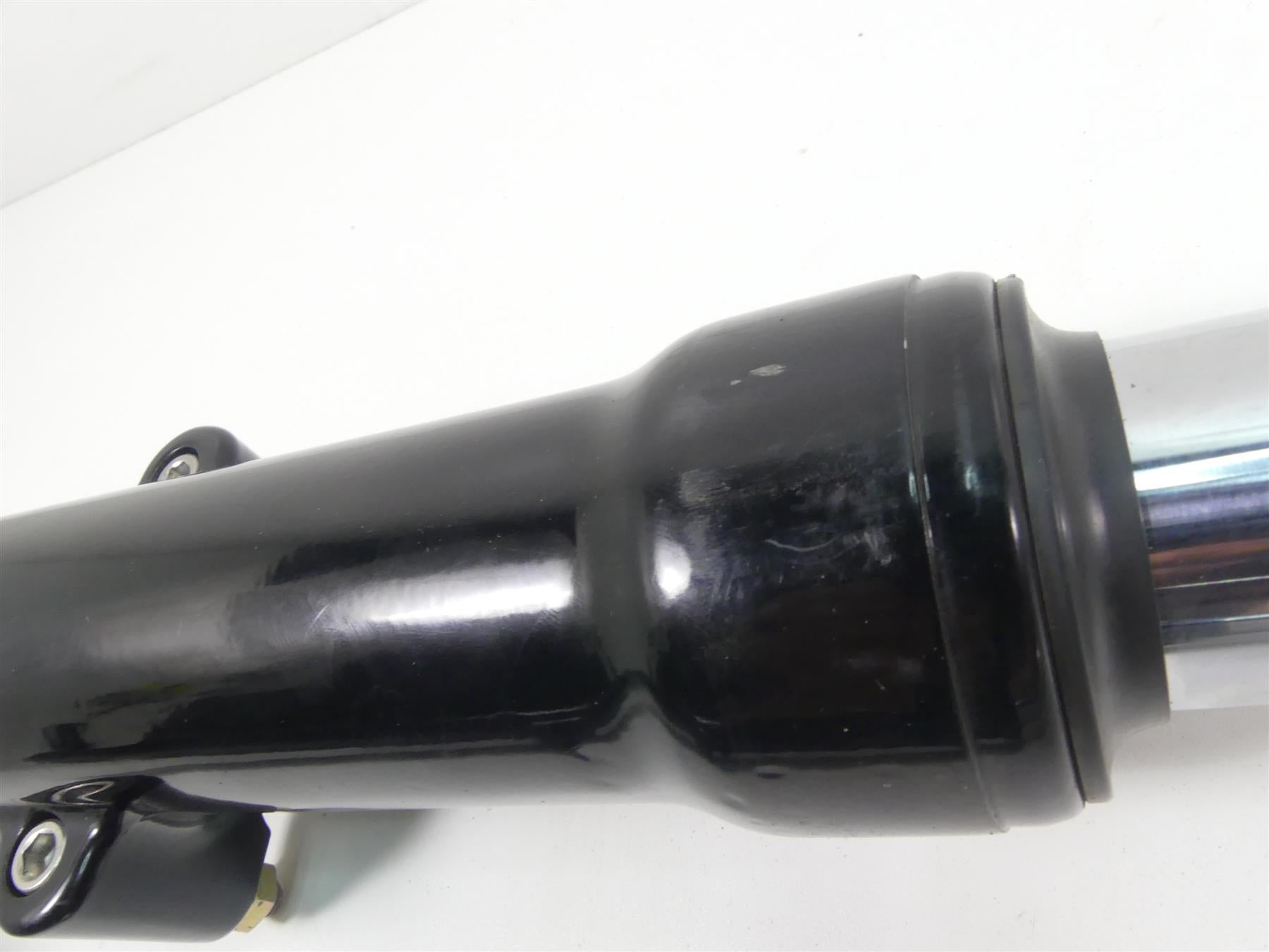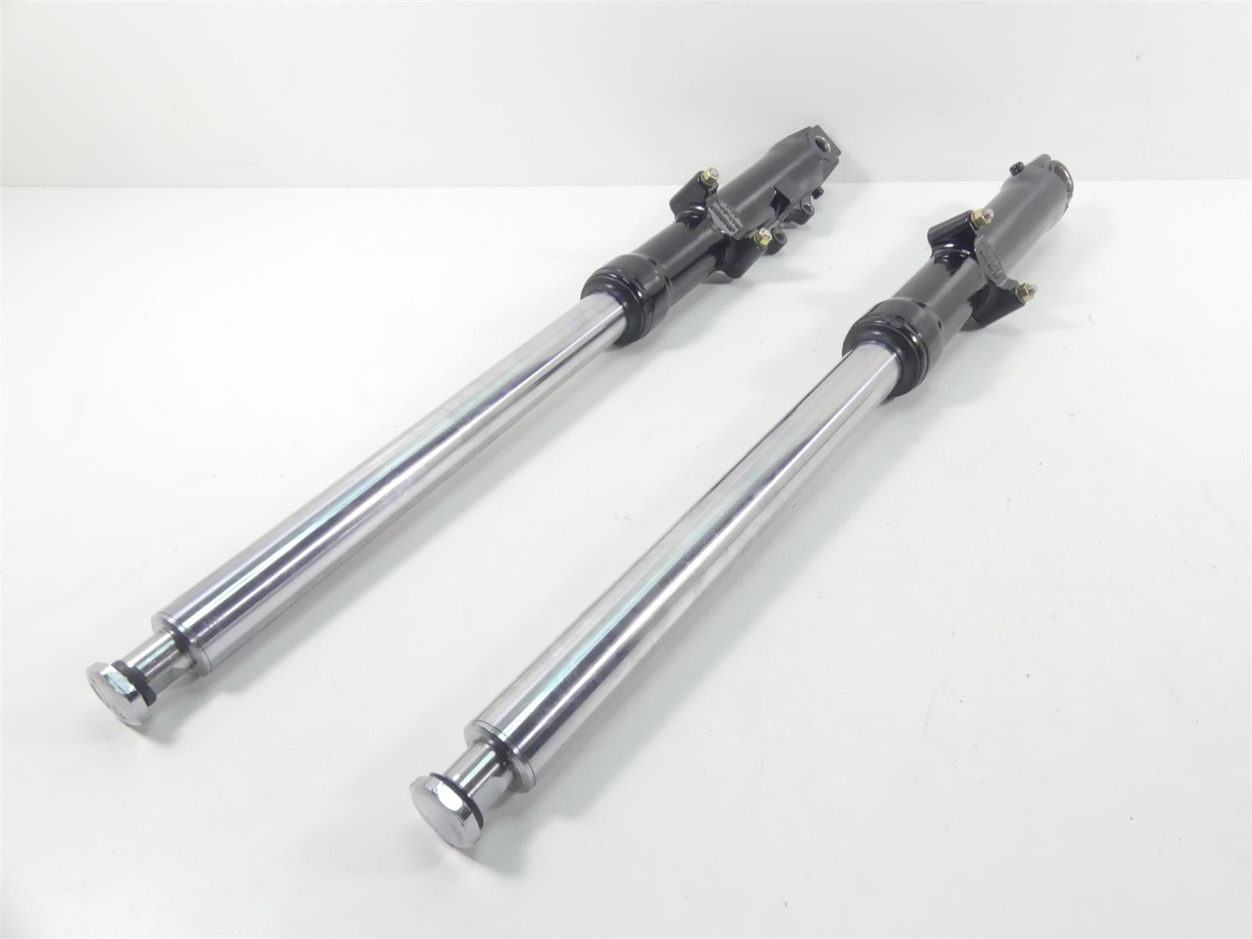 Comments: Those are the Blackline forks but they have the touring end caps mounted. The previous owner used touring triple trees on this bike. All you need is to change out the top caps from any HD 41mm forks and they are as they should be again. The upper part of the tubes where the triple trees mount show some marks and nicks as you can see in the pics. The travel area is fine without any marks or nicks. The forks dont leak either.