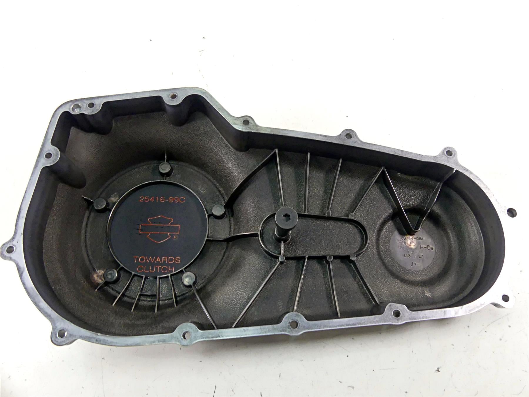 This Outer Primary Drive Clutch Cover was parted off the described Bike that had 33368 original miles at the time of disassembly.