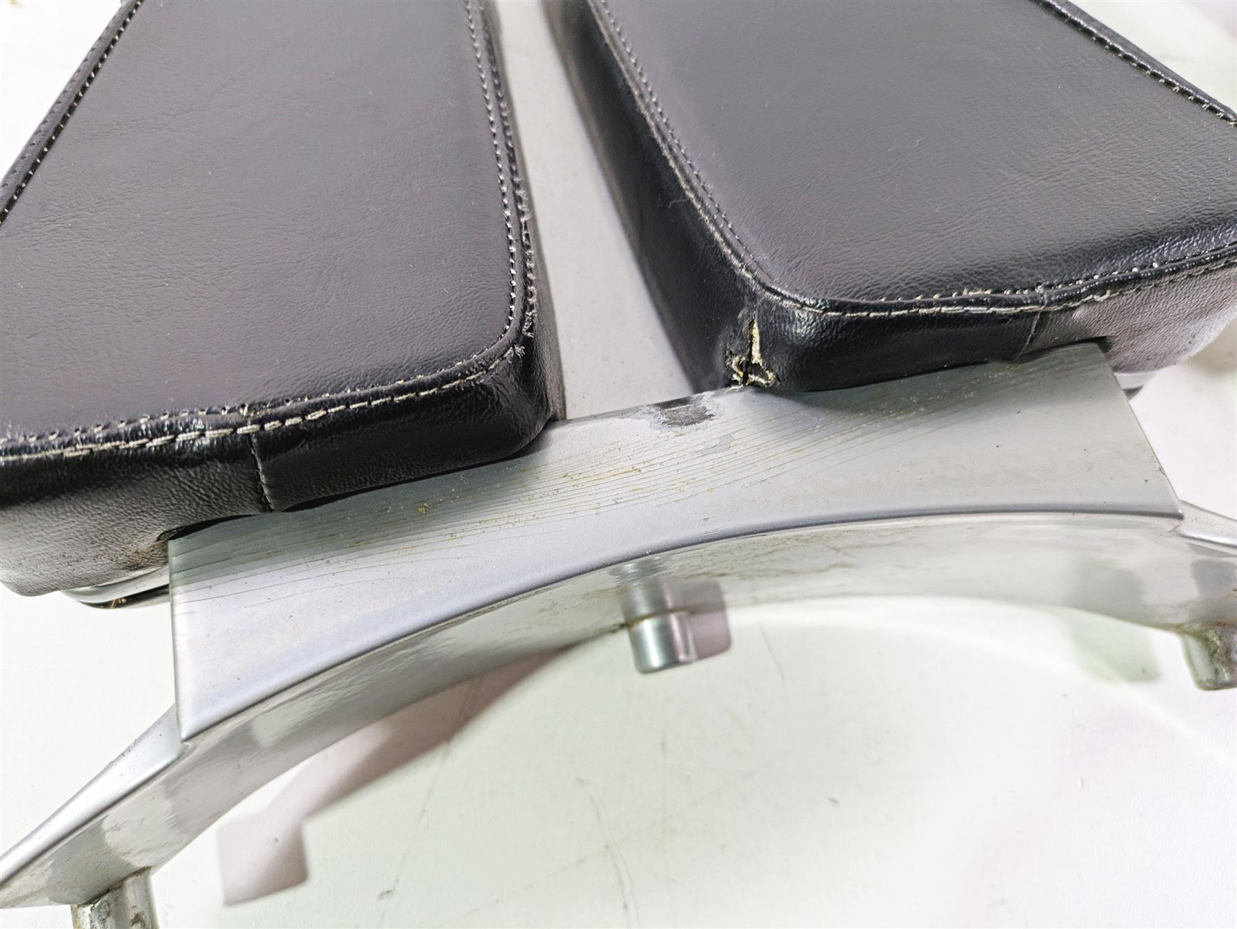 Comments: shows rub marks and paint stress marks. Fabric of backrest shows tears
