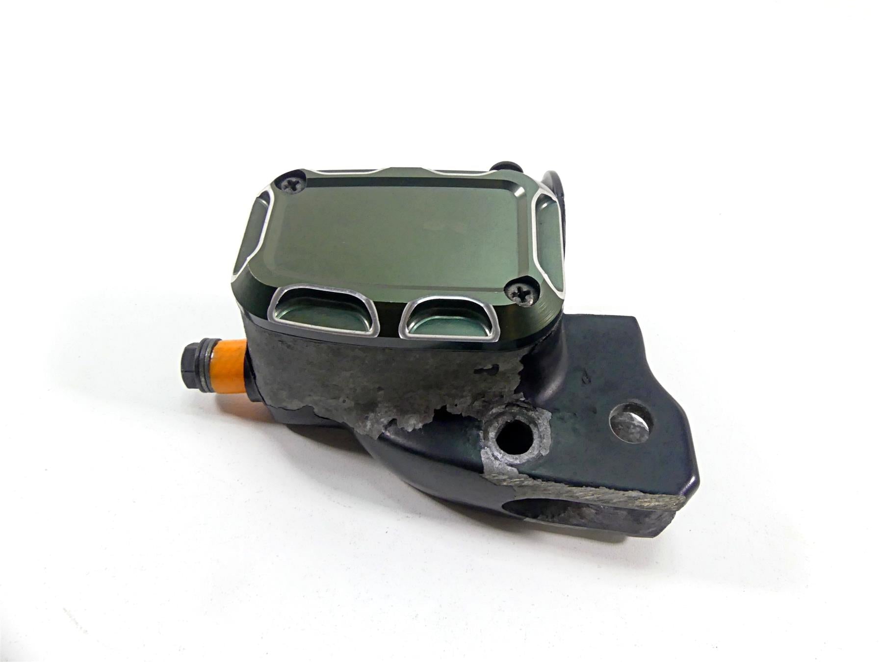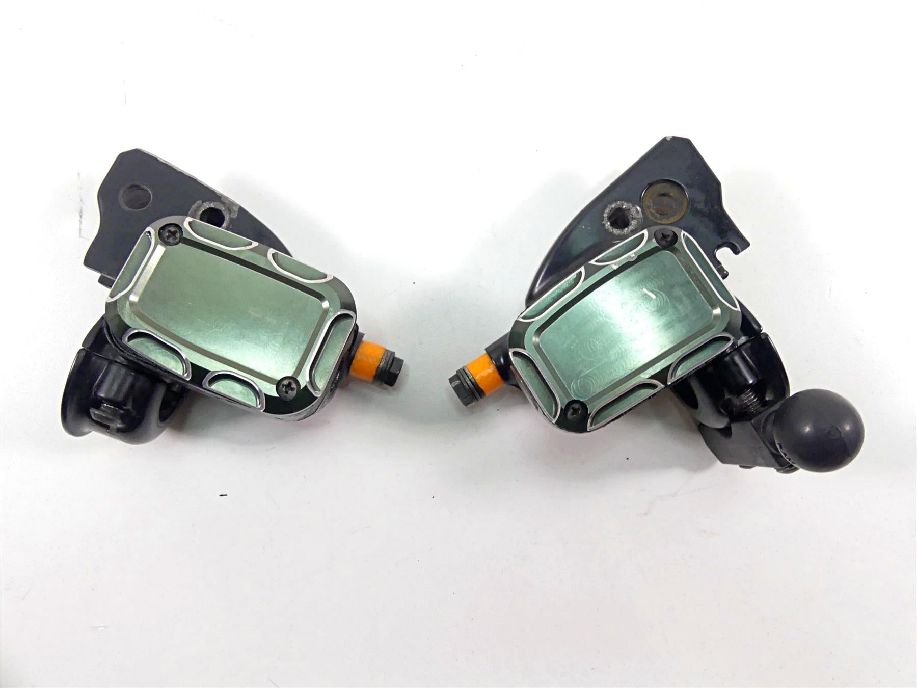 Comments: 11/16" bore. Both have some paint damage. Lids are aftermarket. Brake master comes with ball joint bracket for some accessories. Please notice that it comes with longer bolts due to this bracket. Both reservoirs are clean inside.