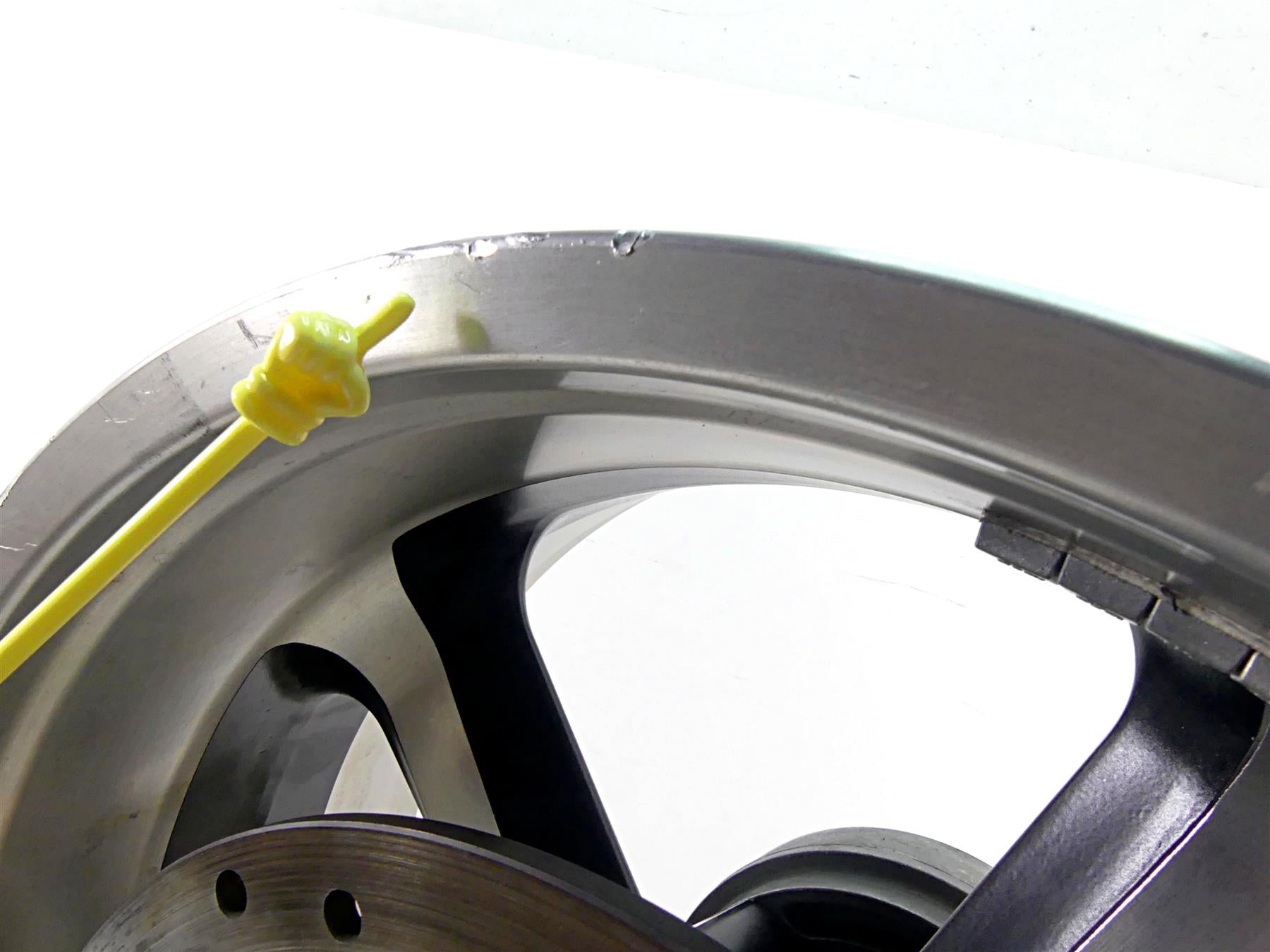 Comments: needs bearings, deep marks on both sides but wheel is straight