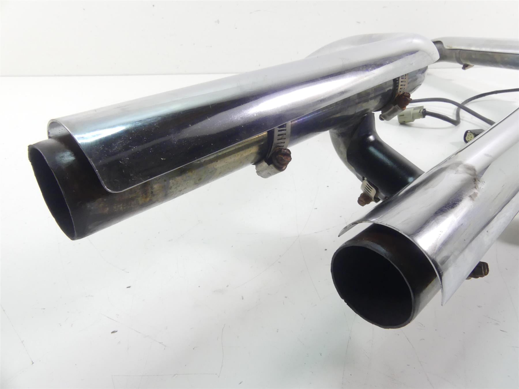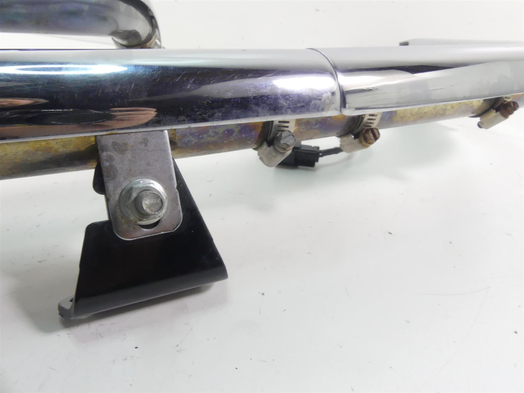 This Exhaust Manifold Header Chrome Pipes Set was parted off the described Bike that had 6328 original miles at the time of disassembly.