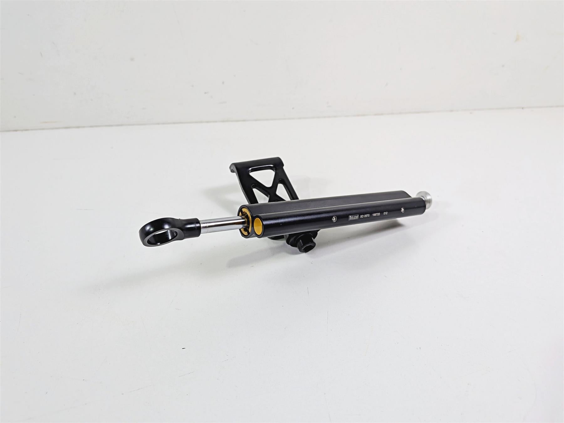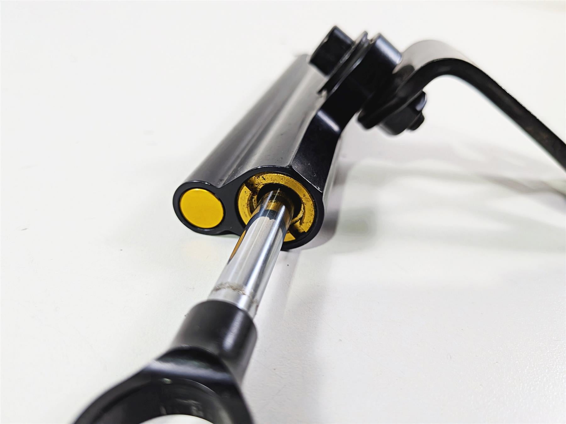 This Steering Damper Stabilizer Ohlins was parted off a 2023 Harley Davidson Adventure Touring RA1250 S Pan America Special that had unknown original miles at the time of disassembly.