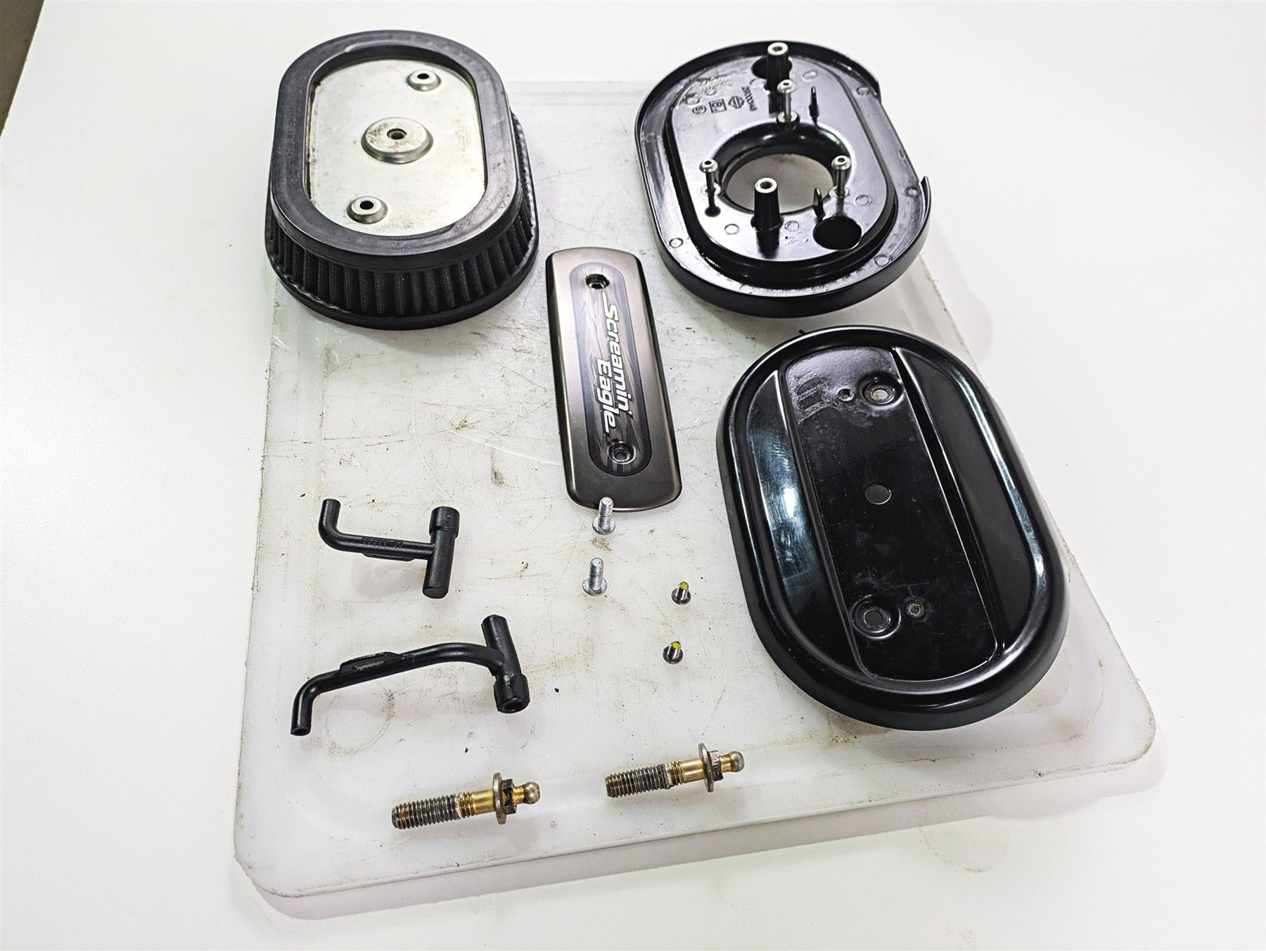 This Harley Touring M8 Screaming Eagle Air Filter Breather Cleaner Set was parted off the described Bike that had 17541 original miles at the time of disassembly.
