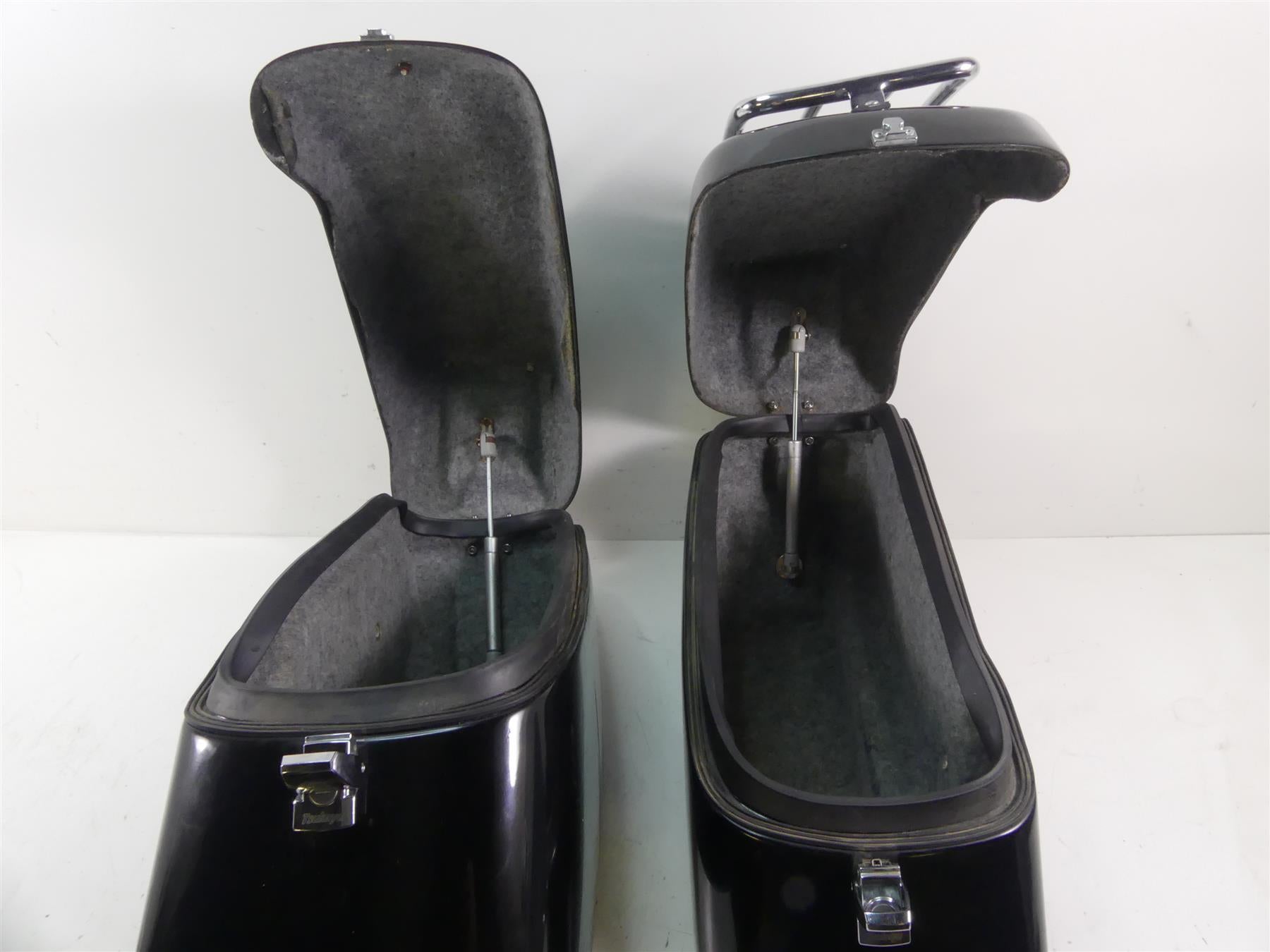 Comments: The coner hardbags are in good shape. No cracks or major damage. They show some scratches in the paint only. Set comes with the mounting hardware. Both bags have luggage six pack racks mounted on the lids.